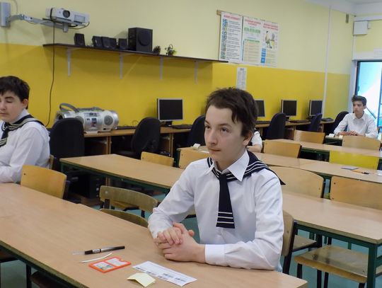 W Szkole Podstawowej nr 2 w Gryfinie na korytarzach nastrój lekko podniosły. Uczniowie w galowych strojach w różny sposób przeżywają sprawdzian zdobytej wiedzy. Było zamyślenie, ostatnie powtarzanie wiadomości. Chłopcy lekkie niepokoje pokrywali żartami. Wszystkich uczniów cechowała świadomość, że robią pierwszy krok w kierunku dorosłości.