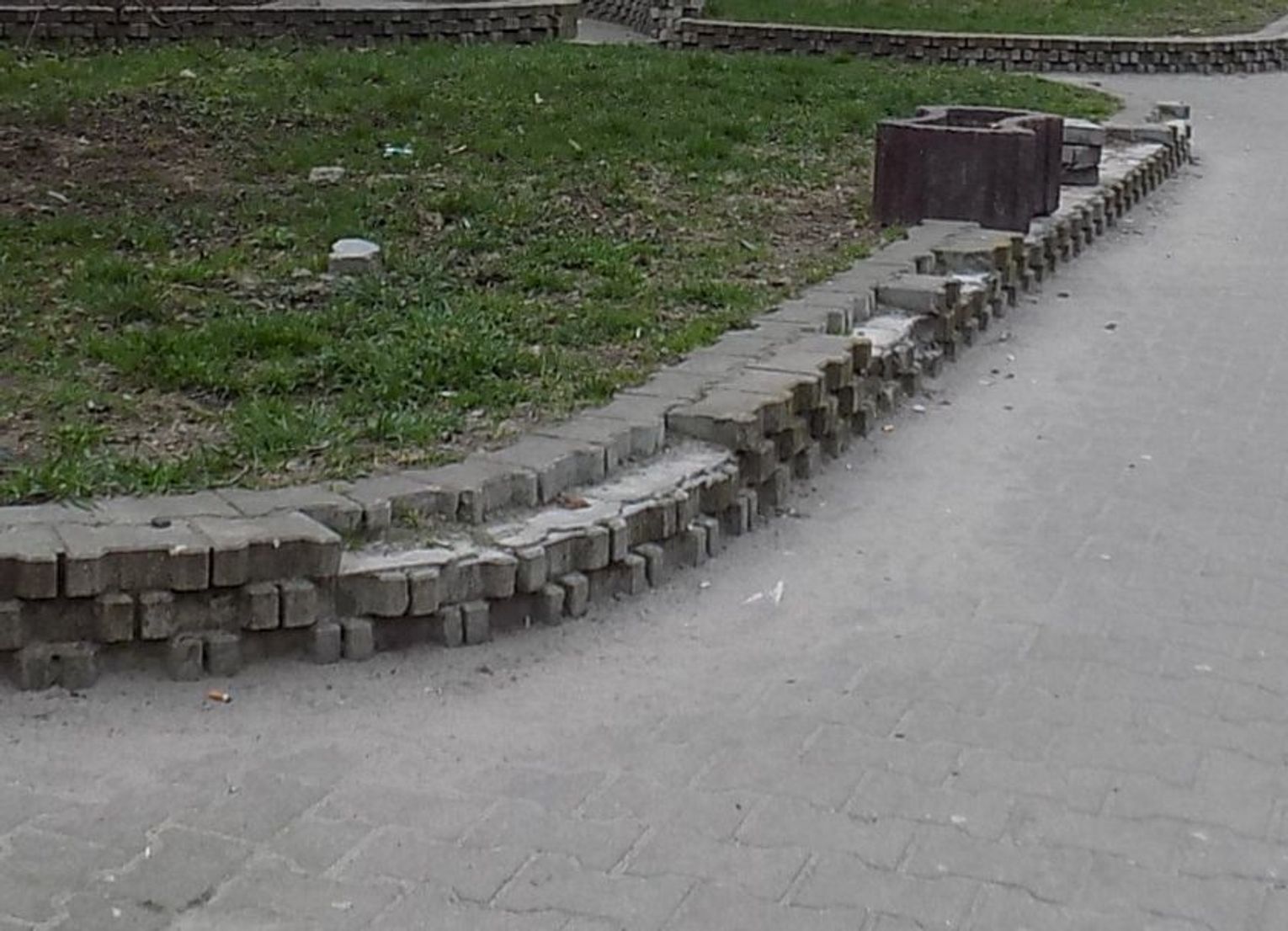 Może warto byłoby naprawić murki obok bloków przy ul. Piastów - Energetyków w Gryfinie? Z każdym dniem robi się coraz cieplej. A jak to bywa w letnie dni, na takich murkach na pogaduszki chętnie siadają mieszkańcy okolicznych bloków.