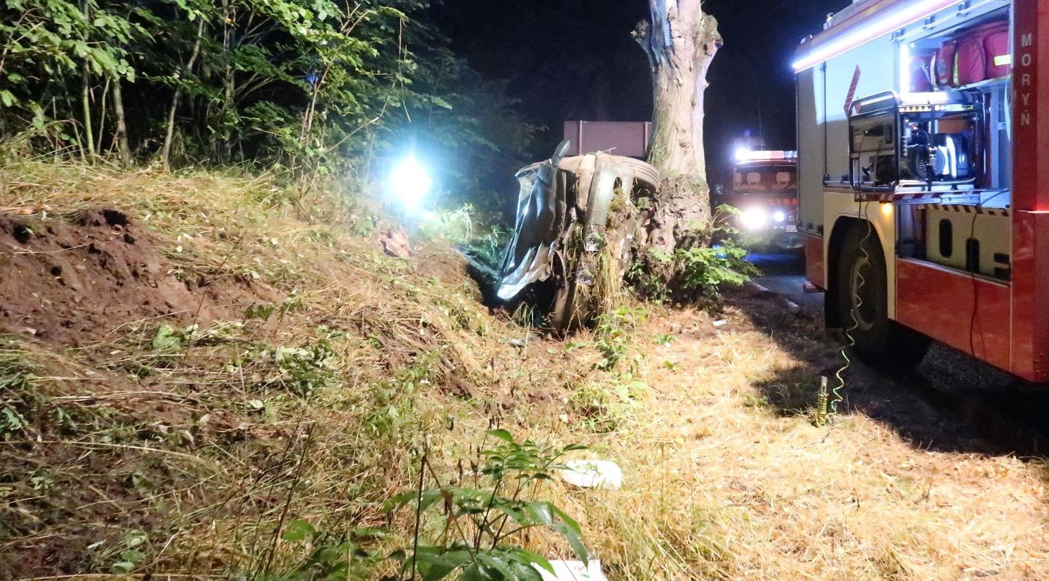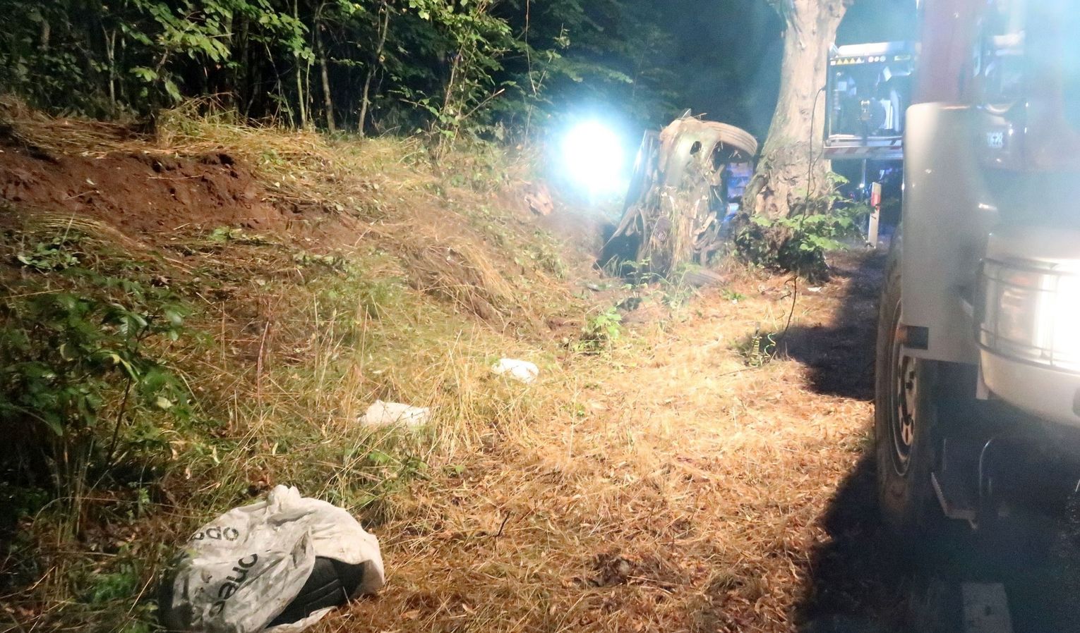 Po dotarciu na miejsce zdarzenia strażacy zastali samochód osobowy przewrócony na bok, który znajdował się poza jezdnią. Kierowca znajdował się poza pojazdem.