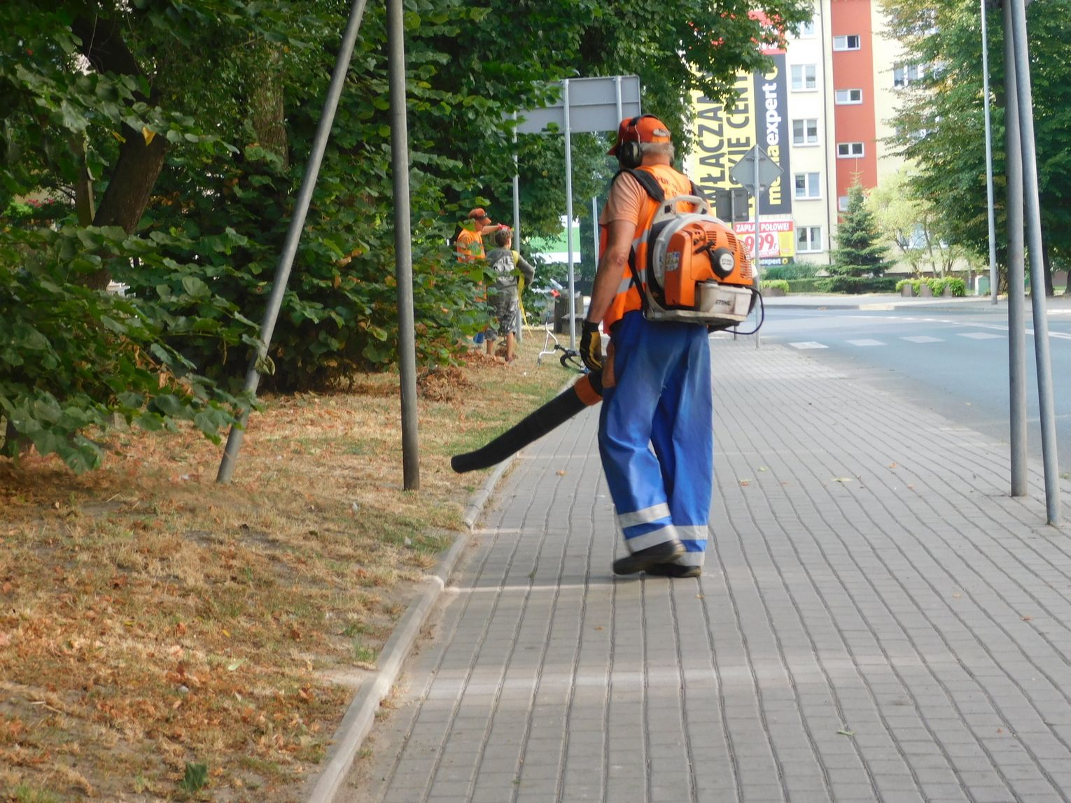 Czy trawa jest, czy jej nie ma, porządki trzeba robić! Więc pracownicy Przedsiębiorstwa usług Komunalnych w Gryfinie zabrali się dziś we wtorek (6 sierpnia 2019 r.) do roboty. Kosiarki pracują, worki pełne liści... chociaż do jesieni jeszcze trochę czasu/zostało.