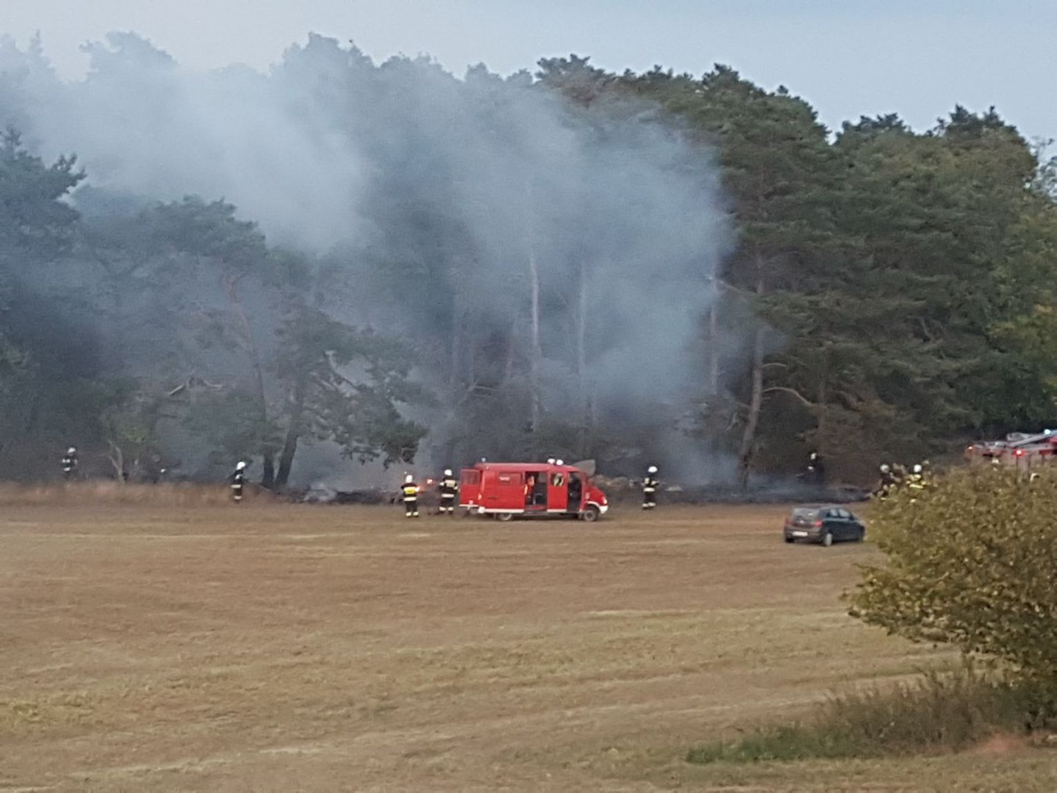 Kilka jednostek Ochotniczej Straży Pożarnej gasi pożar lasu. Akcja jest trudna, ponieważ jest bardzo sucho. Las znajduje się w Niesułowie niedaleko Cedyni.