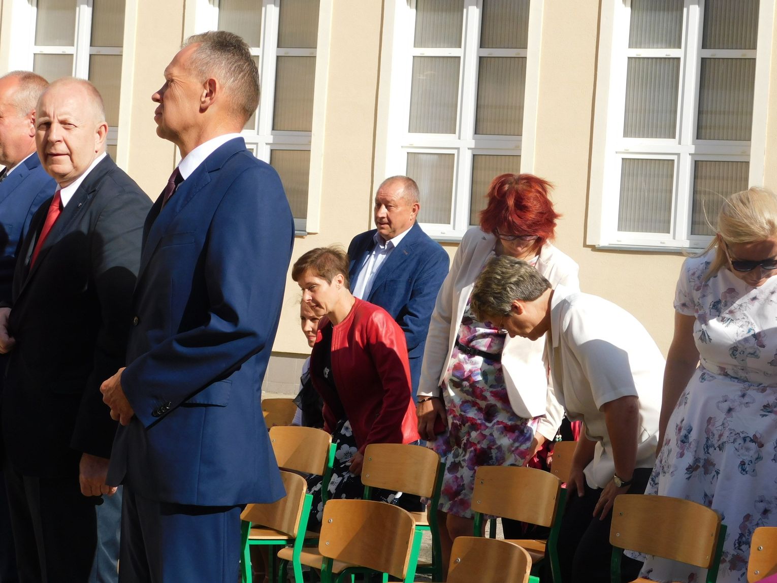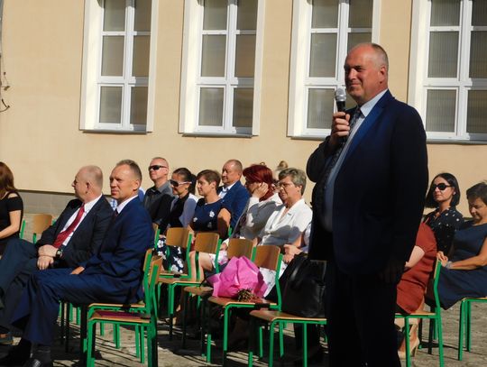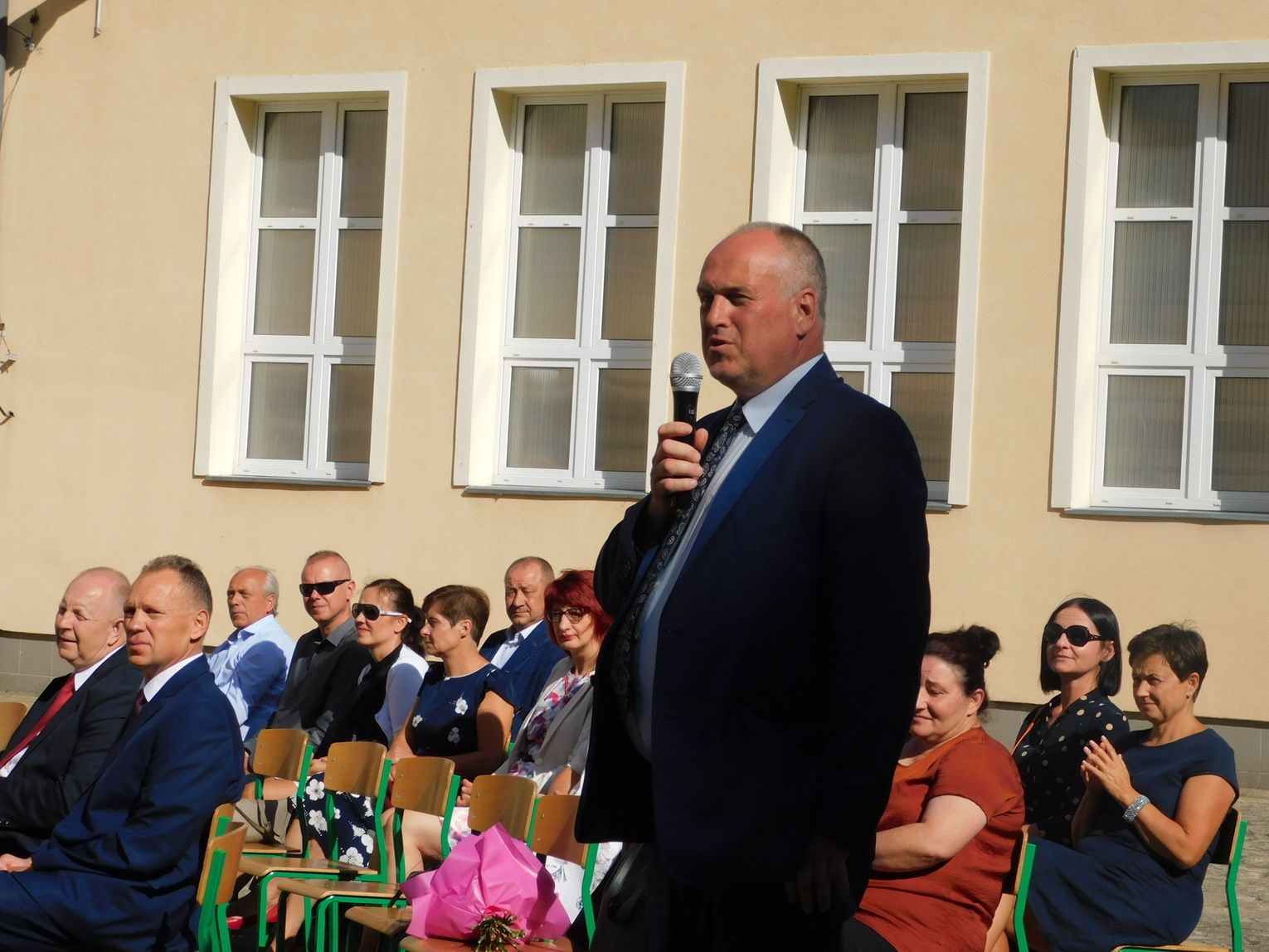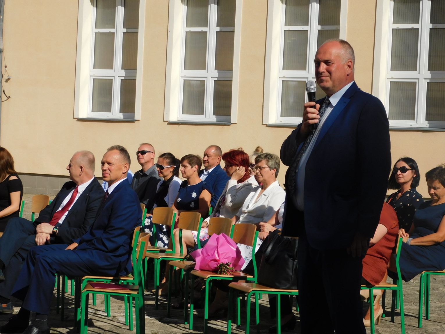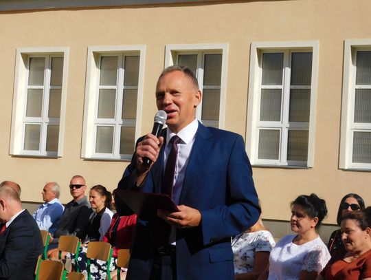 -Cieszę się, bo po roześmianych twarzach widzę, że wakacje były udane. Witam uczniów, gości i nauczycieli – powiedział dyr. Sławomir Głuszak. -My mamy obowiązek powiedzieć wam o najważniejszych wartościach, którymi należy się kierować w życiu. I oczywiście przekazać wam wiedzę Chcielibyśmy, żebyście zawsze pamiętali czym człowiek powinien się w życiu kierować – powiedział dyrektor. Wspomniał również o zmianach , które pojawiły się w szkolnictwie.