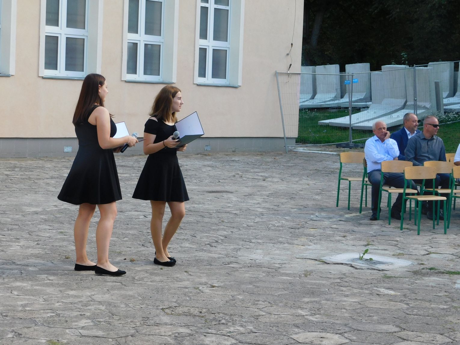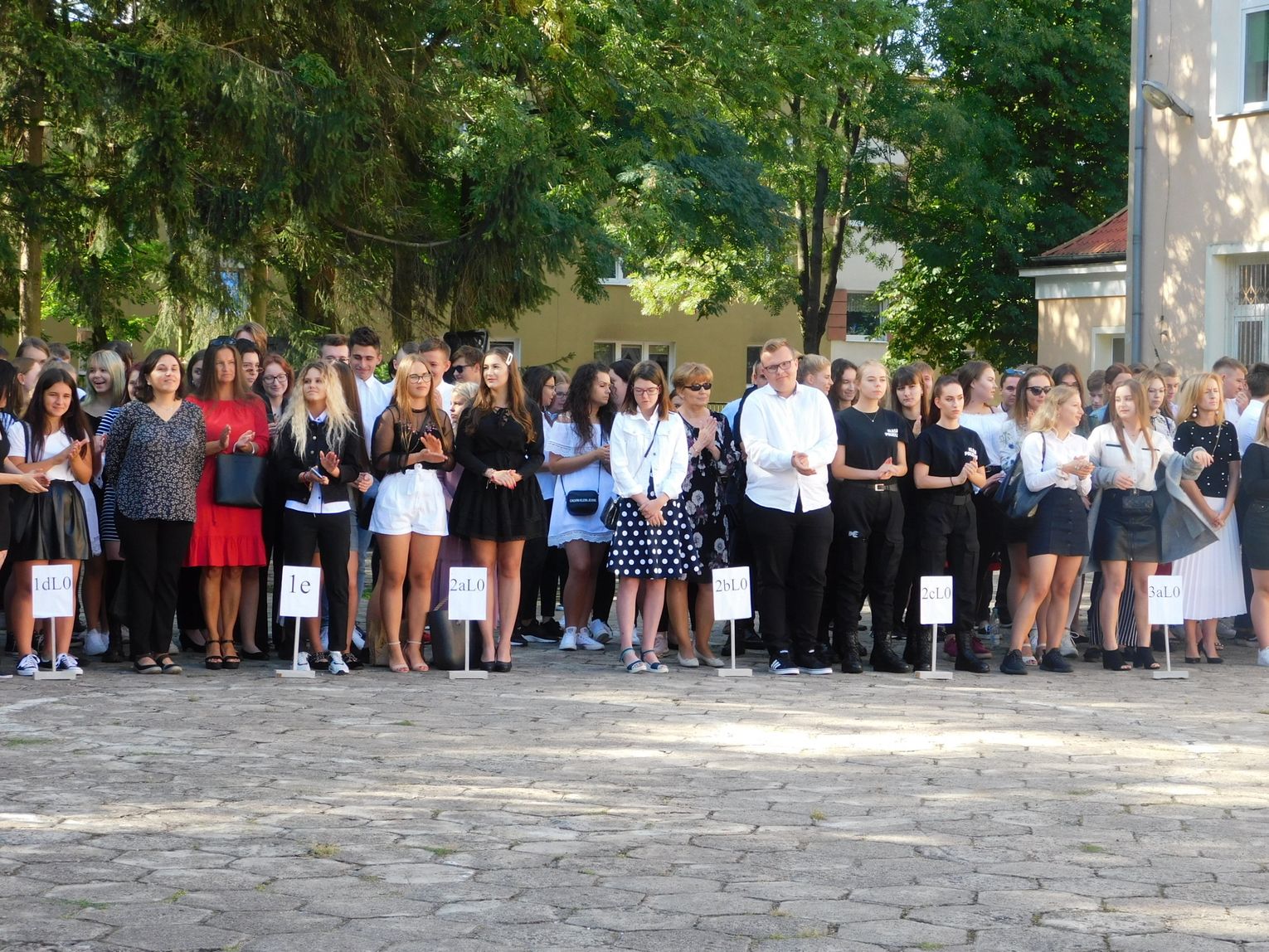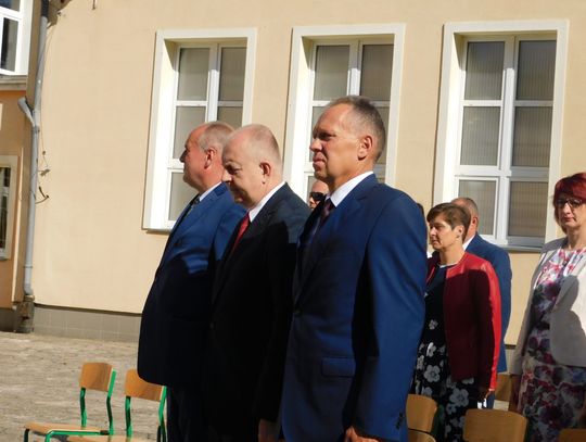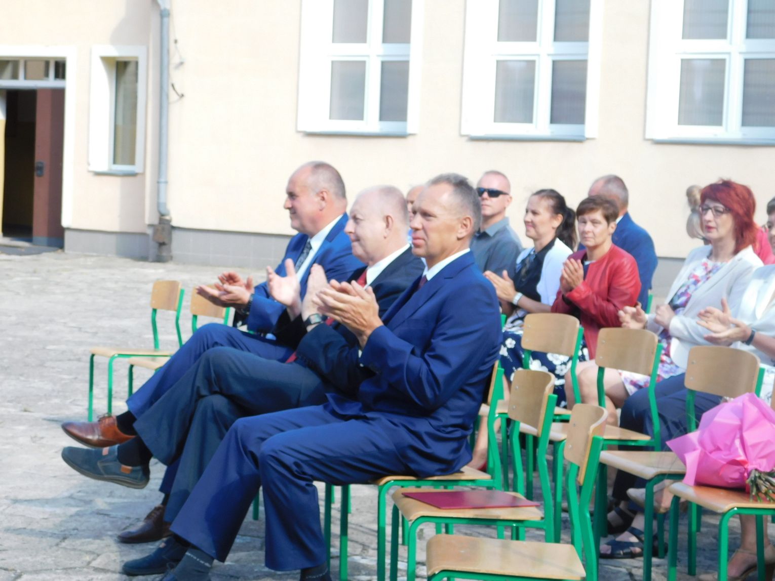 -Cieszę się, bo po roześmianych twarzach widzę, że wakacje były udane. Witam uczniów, gości i nauczycieli – powiedział dyr. Sławomir Głuszak. -My mamy obowiązek powiedzieć wam o najważniejszych wartościach, którymi należy się kierować w życiu. I oczywiście przekazać wam wiedzę Chcielibyśmy, żebyście zawsze pamiętali czym człowiek powinien się w życiu kierować – powiedział dyrektor. Wspomniał również o zmianach , które pojawiły się w szkolnictwie.
