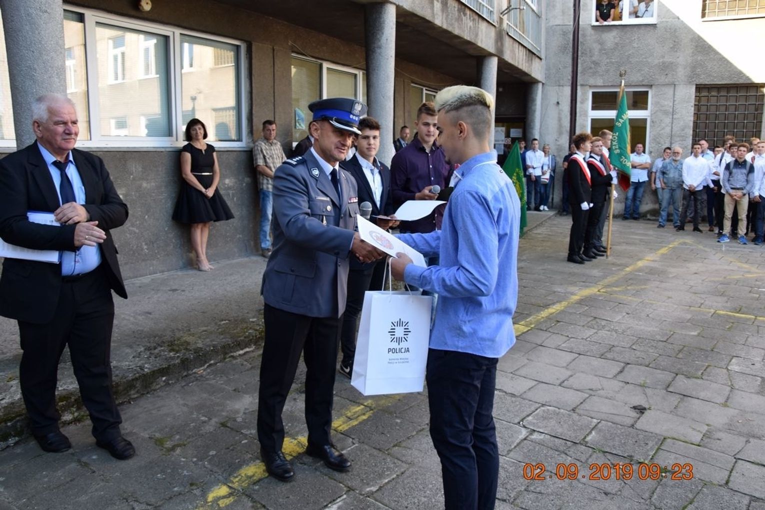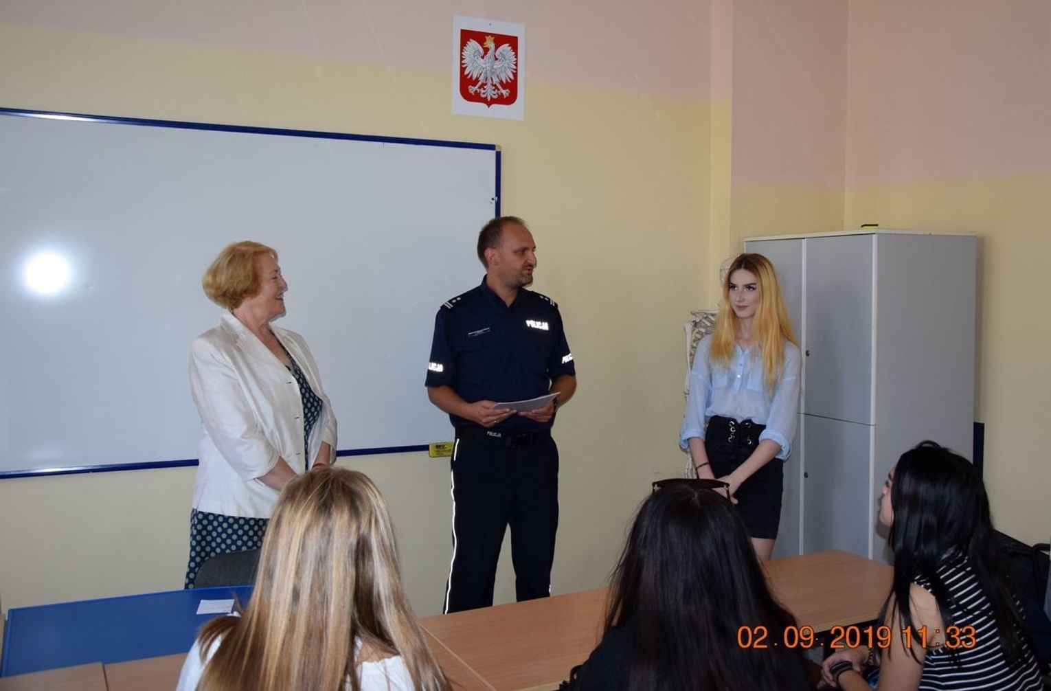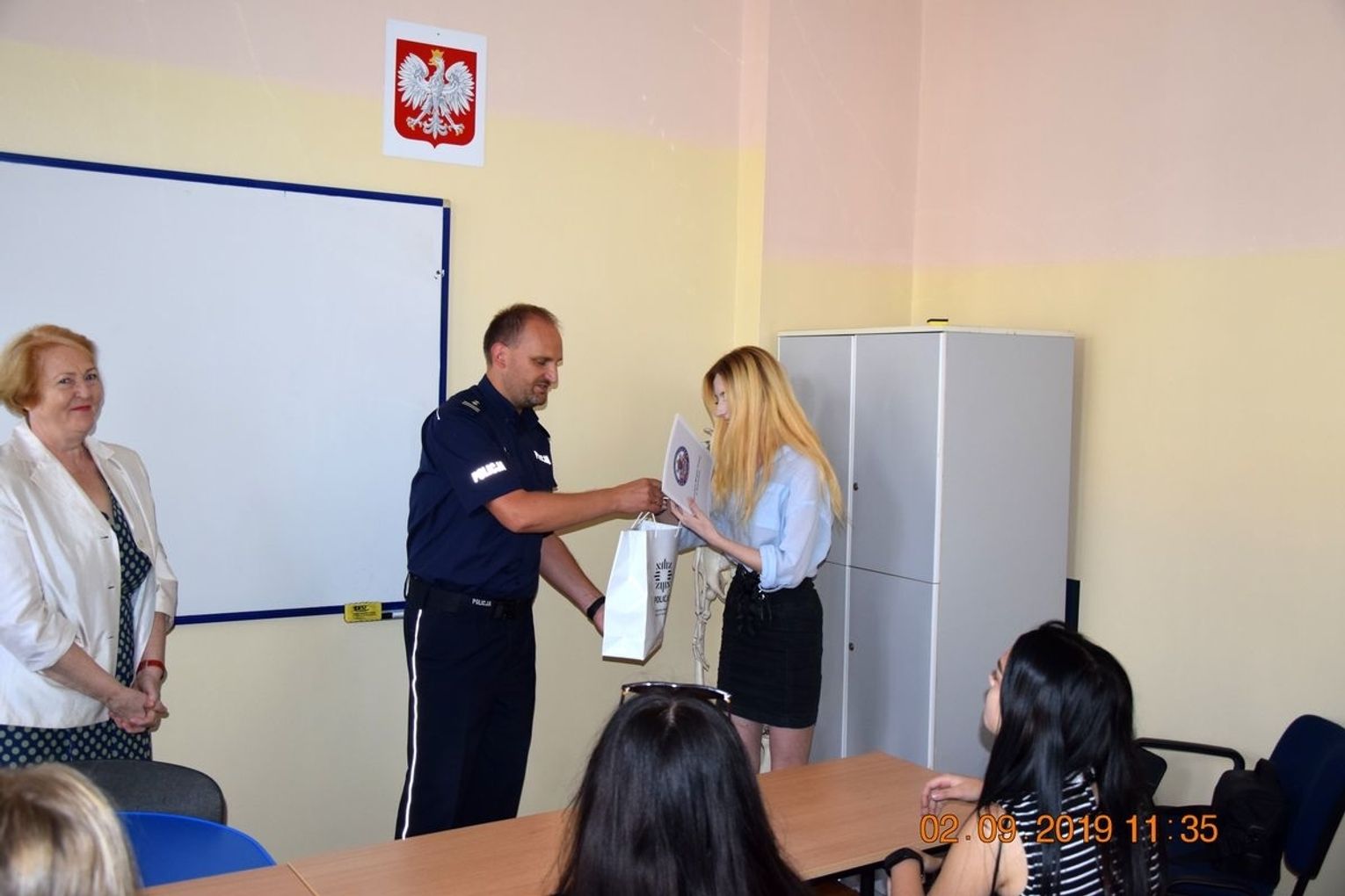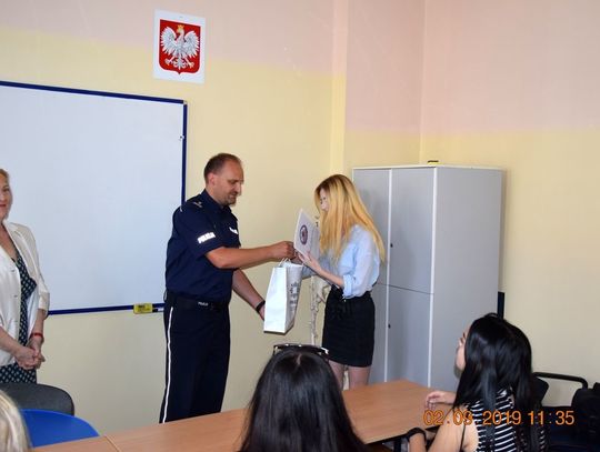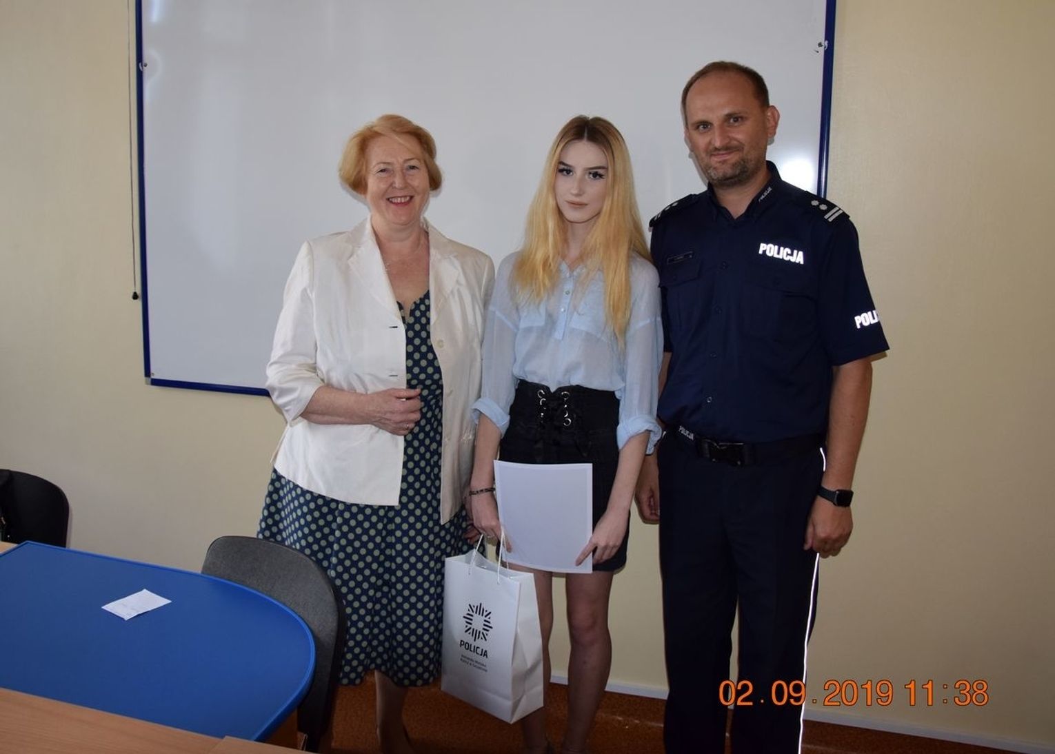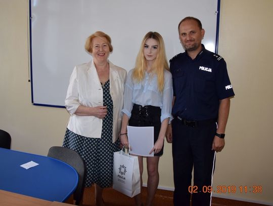 Panowie komendanci podziękowali nastolatkom za wzorową, obywatelską postawę oraz dojrzałe zachowanie, które przyczyniło się do wyeliminowania nietrzeźwego kierowcy stanowiącego poważne zagrożenie na drodze. Insp. Piotr Makuch oraz mł. insp. Andrzej Biernat wręczyli bohaterom podziękowania wraz z drobnymi upominkami, życząc sukcesów w życiu osobistym oraz na nowej drodze obowiązków szkolnych.