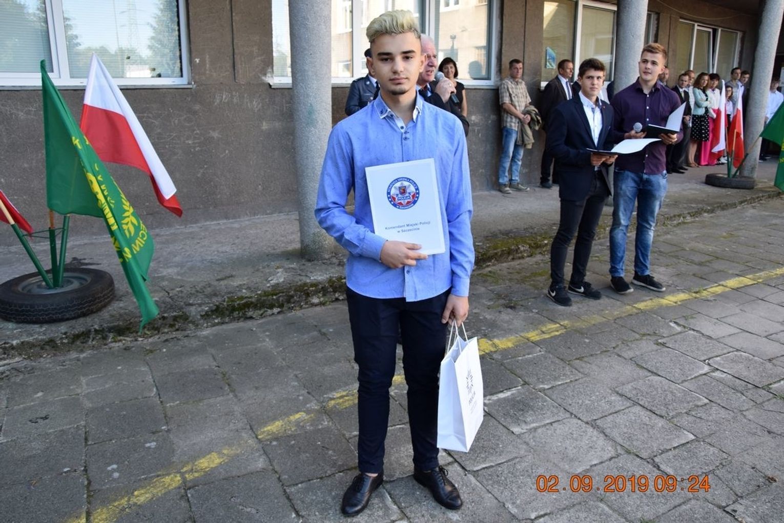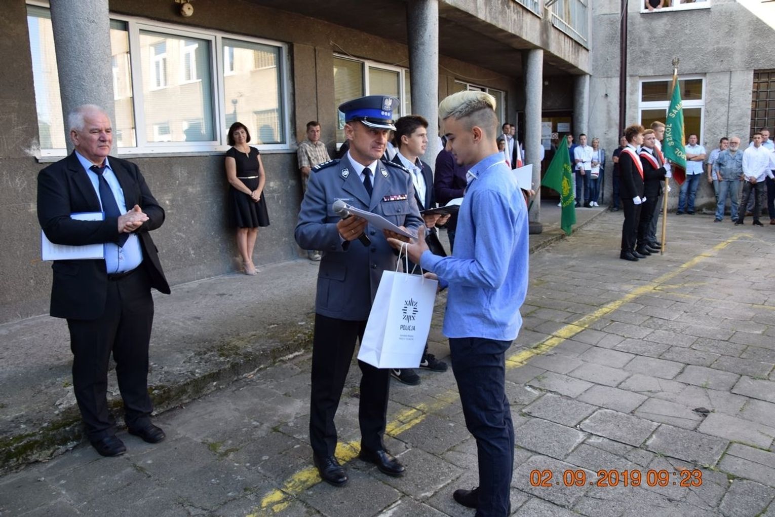 Podczas uroczystych apeli rozpoczynających nowy rok szkolny, szef szczecińskiej policji insp. Piotr Makuch wraz z Zastępcą mł. insp. Andrzejem Biernatem w imieniu swoim oraz podległych im funkcjonariuszy z KMP w Szczecinie, podziękowali dzisiaj Kornelii i Kamilowi za postawę godną naśladowania.