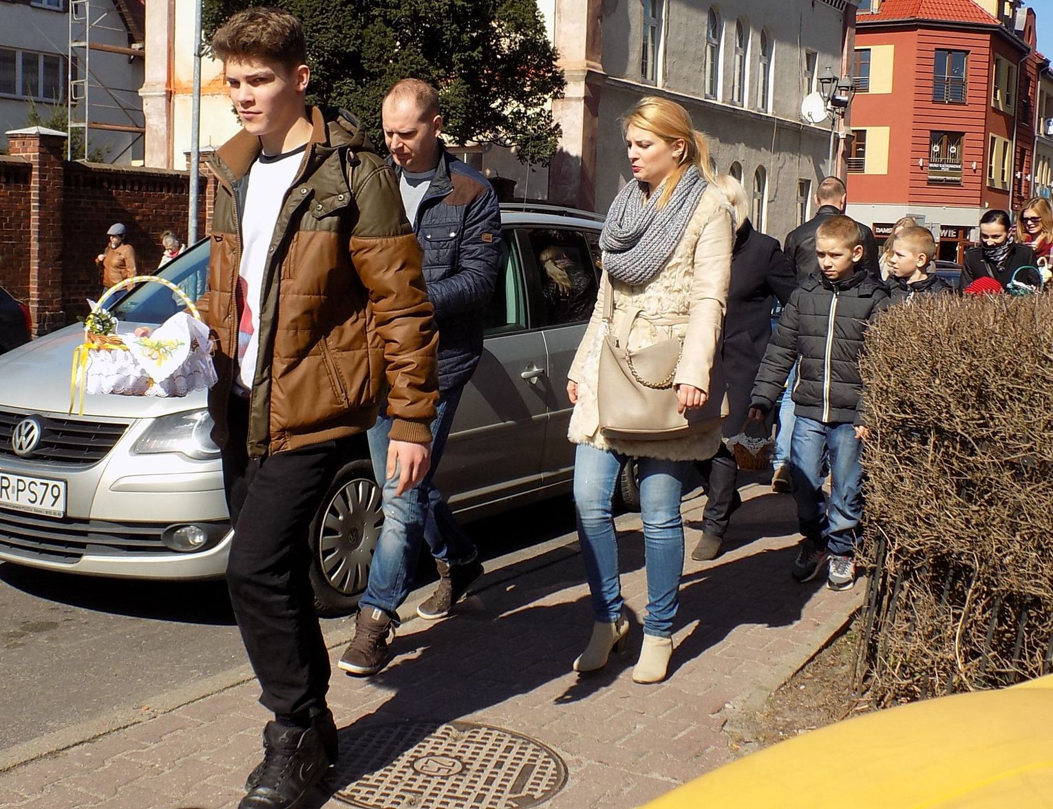 Tradycją Wielkiej Soboty jest święcenie pokarmów. Do wielkanocnego koszyczka wkłada się więc chleb na pamiątkę nakarmienia przez Jezusa tłumów na pustyni, wędlinę na pamiątkę baranka paschalnego, którego spożywał Jezus podczas uczty paschalnej z uczniami w Wieczerniku oraz jajka symbolizujące nowe życie. Należy także pamiętać o baranku np. z cukru oraz o soli, która ma chronić przed złem i zepsuciem. Nasza dziennikarka uwieczniła ludzi przechodzących z wielkanocnymi koszyczkami przez plac Barnima w Gryfinie. Zapraszamy do fotogalerii.