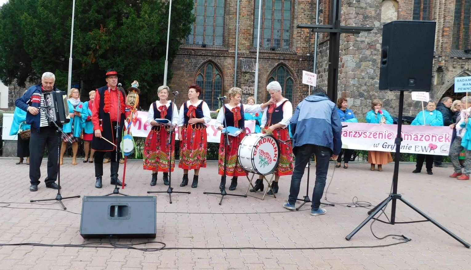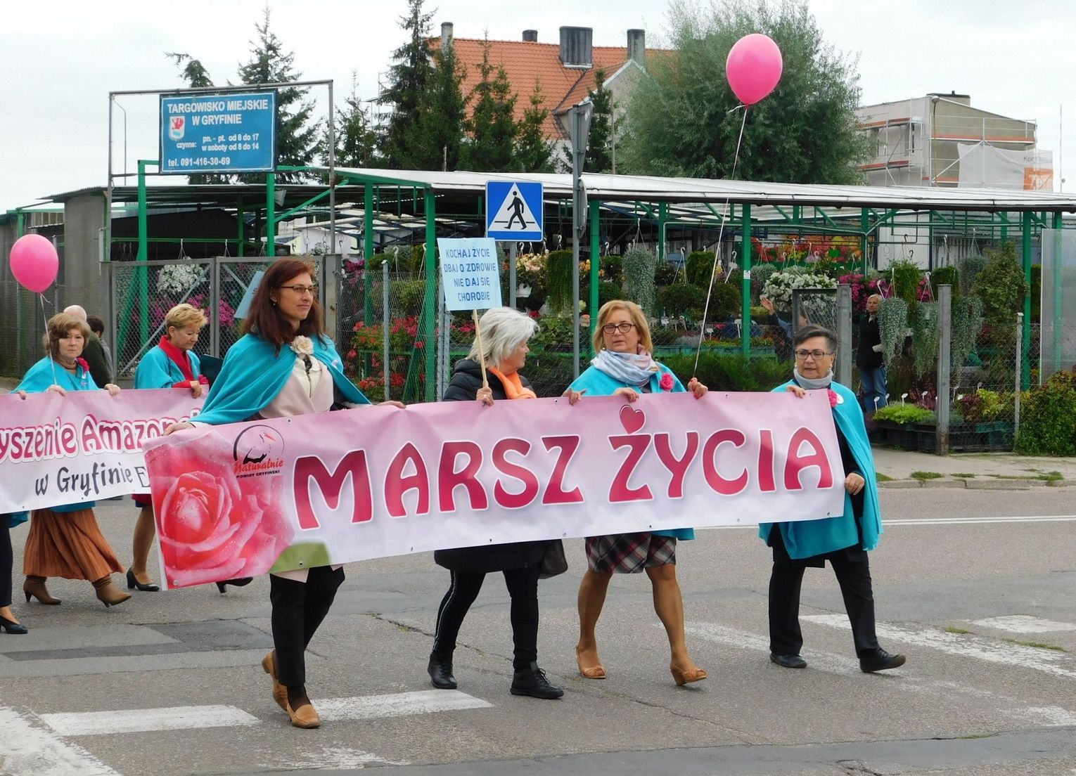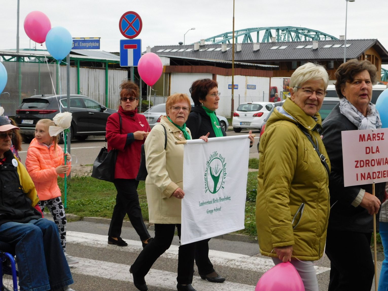 Po mszy świętej przed Klubem Nauczyciela na ul. Kościelnej uformował się kokardkowy różowo- niebieski pochód, od kilku już lat organizowany przez Stowarzyszenie Amazonek „Ewa” w Gryfinie. Jedenaście lat walki kobiet i siedem lat walki mężczyzn o zdrowie. Walki trudnej, ale możliwej do wygrania, czego dowodem są te wspólne spotkania.