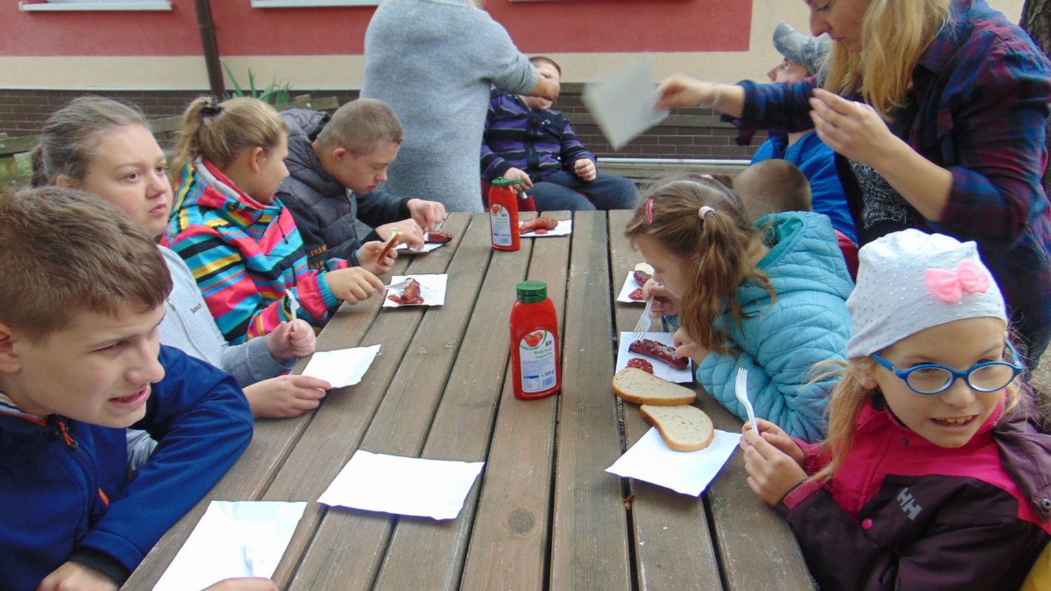 Niestety, nie trzeba było długo czekać, aby znaleźć papierki, butelki i inne nieczystości. Wszyscy mieli dużo radości z tego, że teren dookoła szkoły pięknieje i staje się czysty. Po uporządkowaniu terenu, przyszedł czas na konkursy plastyczne o tematyce ekologicznej. Nagrodą za ciężką pracę były pieczone kiełbaski i wspólne muzykowanie. Miło jest cieszyć się porządkiem i otaczającą nas przyrodą bogatą w jesienne barwy. Pamiętajmy jednak, że akcja „Sprzątanie Świata” jest tylko raz w roku a dbać o czystość naszego środowiska powinniśmy codziennie.