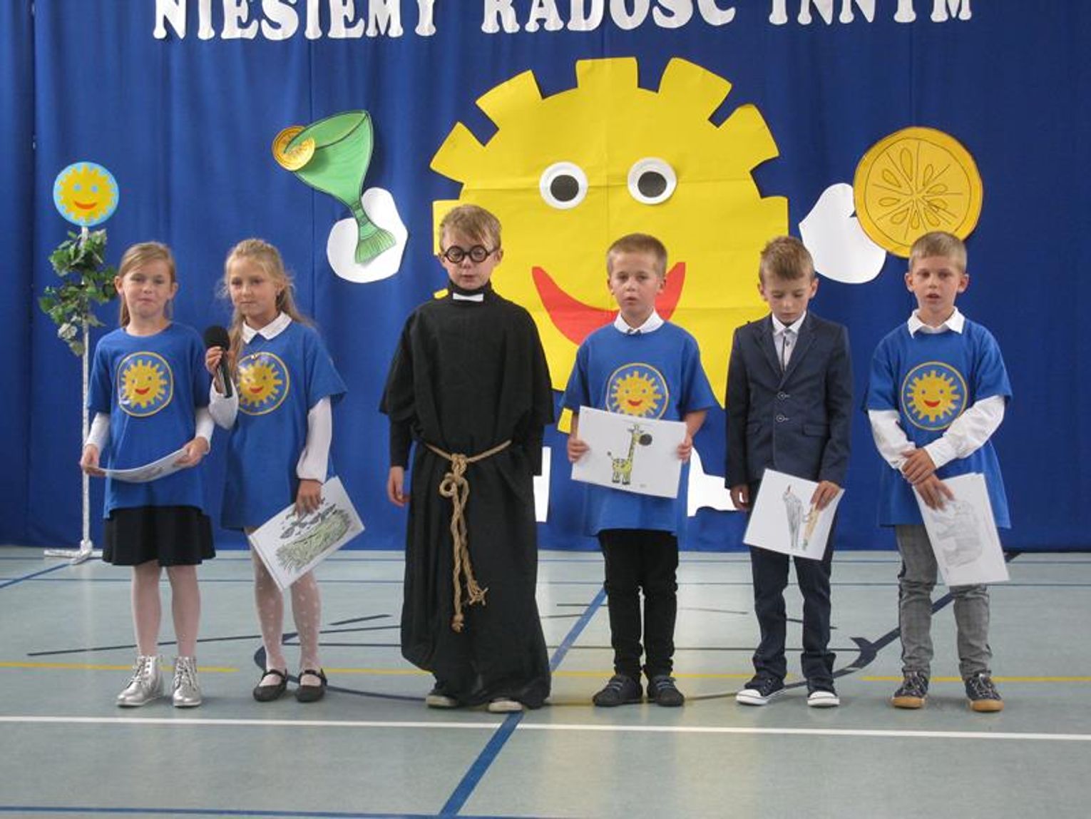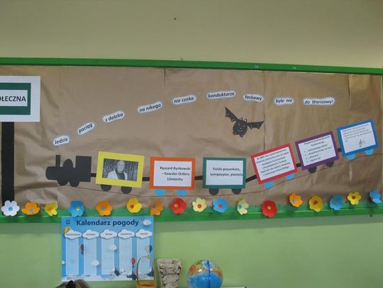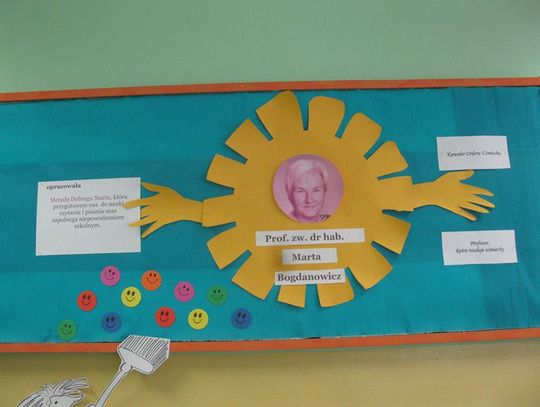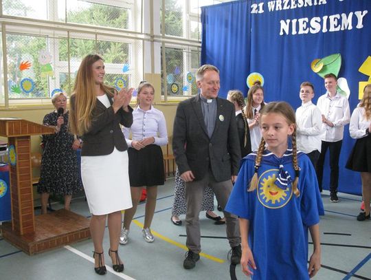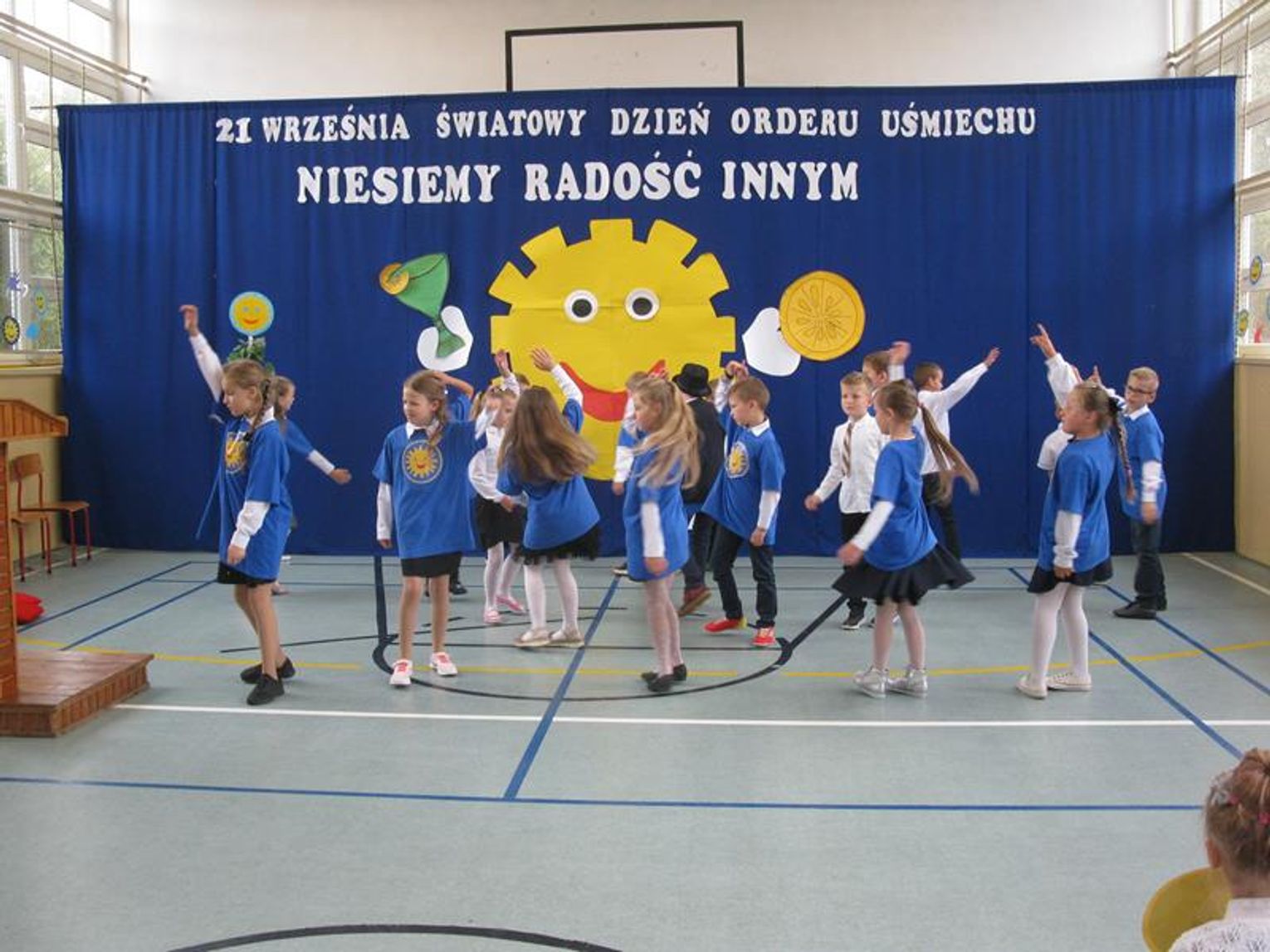 Niezwykle widowiskowe było spotkanie z tańcem i piosenką na cześć naszego patrona, dzięki przygotowanym strojom, rekwizytom oraz scenografii. Prezentacje poszczególnych klas, zespołu taneczno-wokalnego przybliżyły kilka nieprzeciętnych osobowości. Wśród nich z pewnością jest Majka Jeżowska - utalentowana piosenkarka, która oddała swoje serce dzieciom. Jej piosenkę z akcentem międzynarodowym zaprezentowali szóstoklasiści.