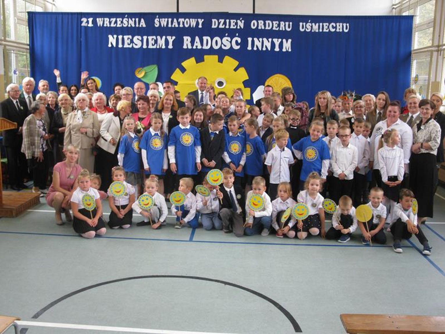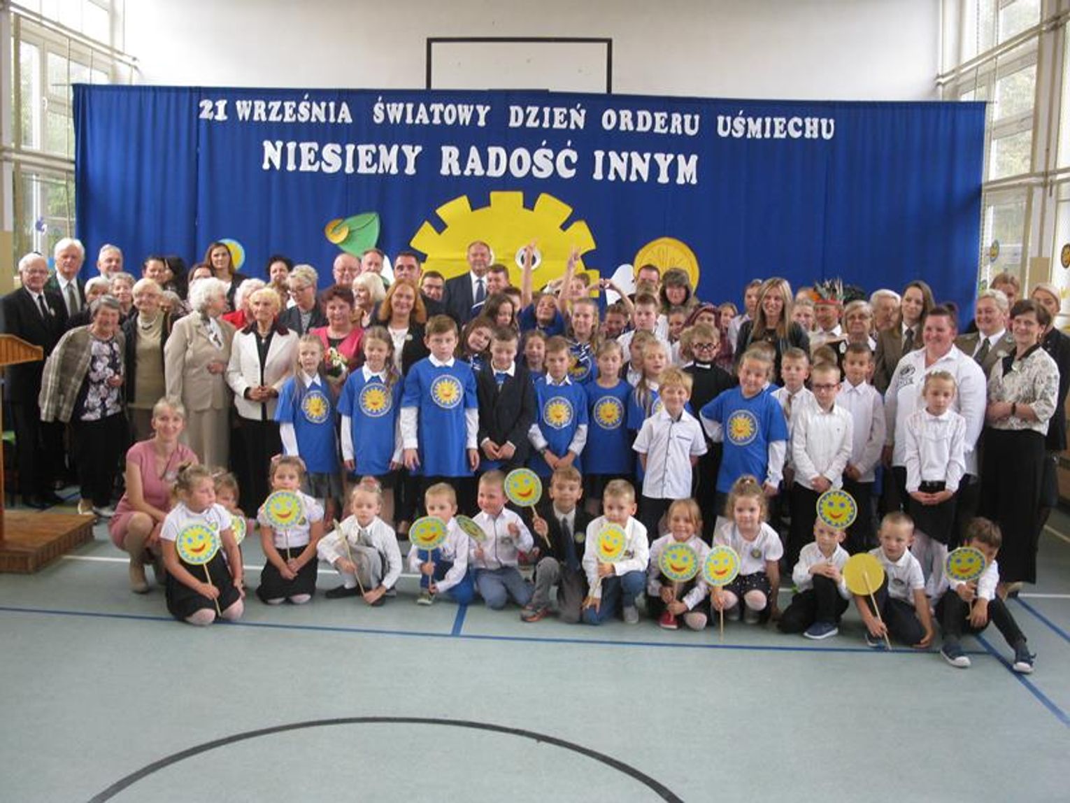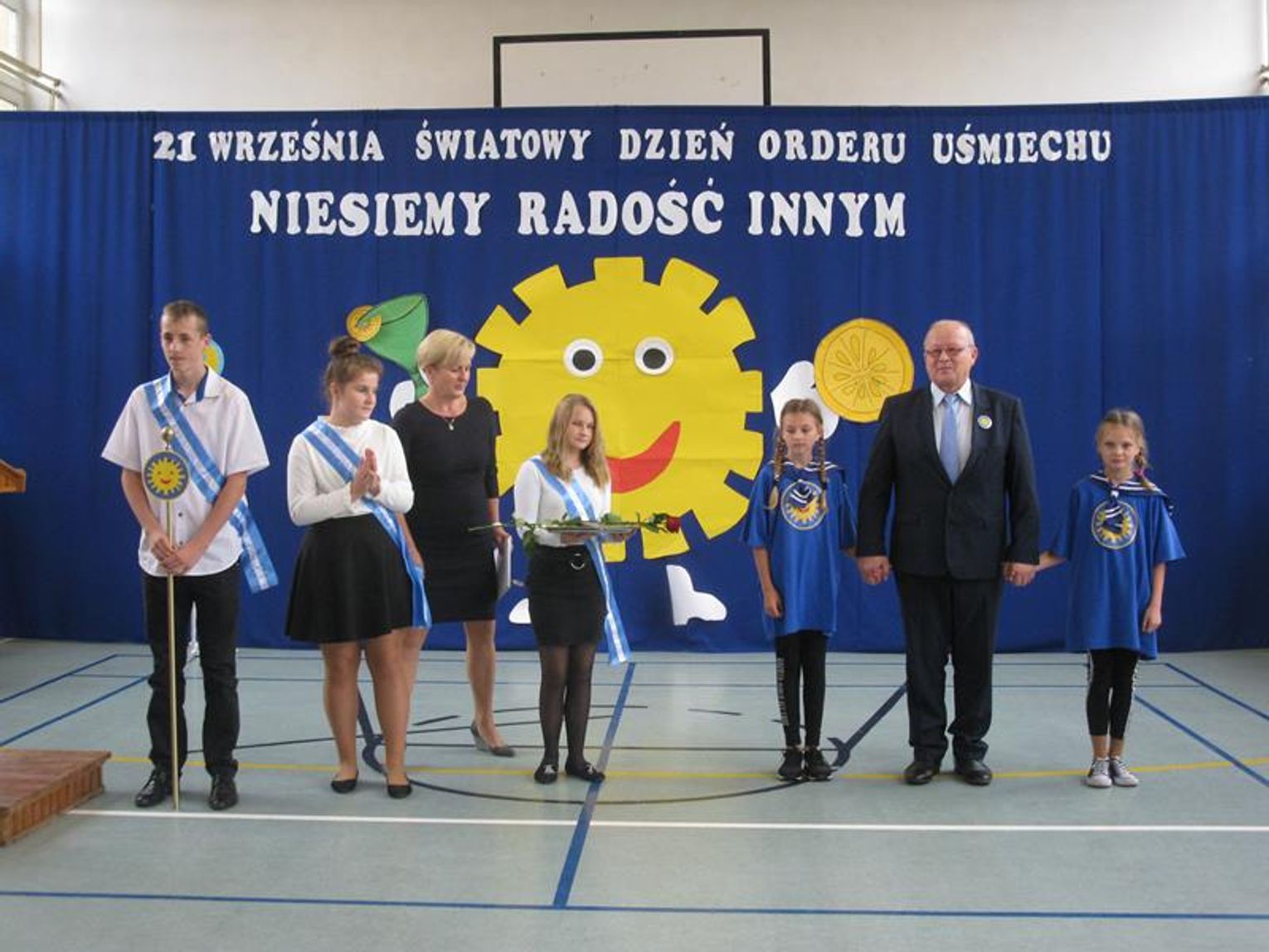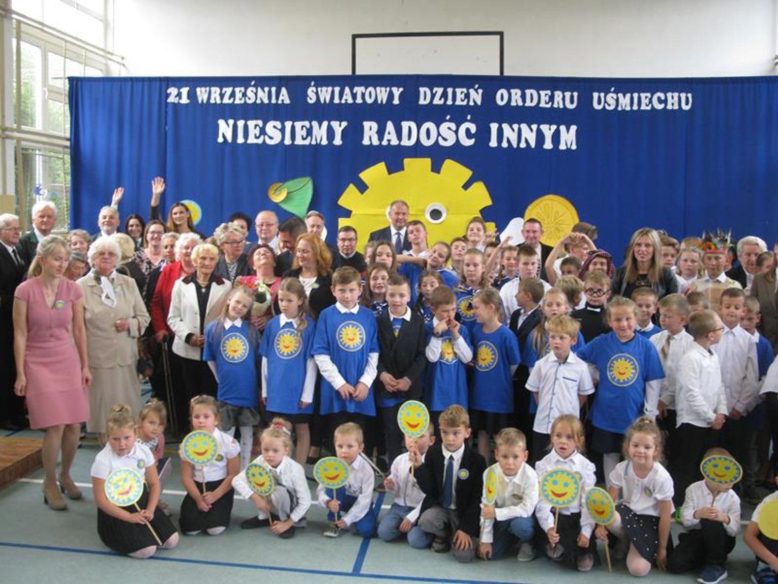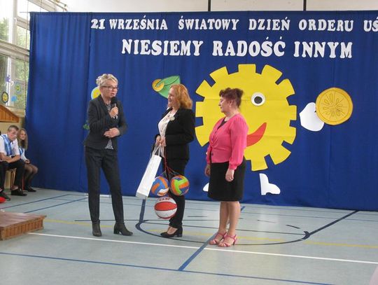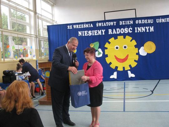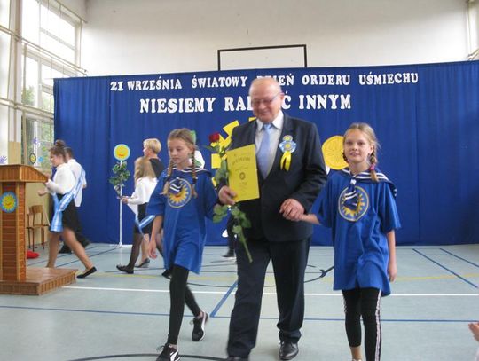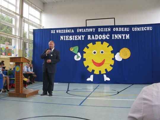 Już po raz trzeci uczestniczyliśmy w tak niezwykłym wydarzeniu wyrażając wdzięczność za współpracę, wspieranie naszych działań, okazaną nam pomoc i życzliwość. Pierwszym Przyjacielem Szkoły wyróżnionym tym orderem jest Pani Teresa Lewandowska, drugim Pan Janusz Purgal. Wspólne odśpiewanie piosenki ,,Order Uśmiechu” rozpoczęło to niecodzienne spotkanie, podczas którego zaszczyciło nas swoją obecnością wielu znakomitych gości.