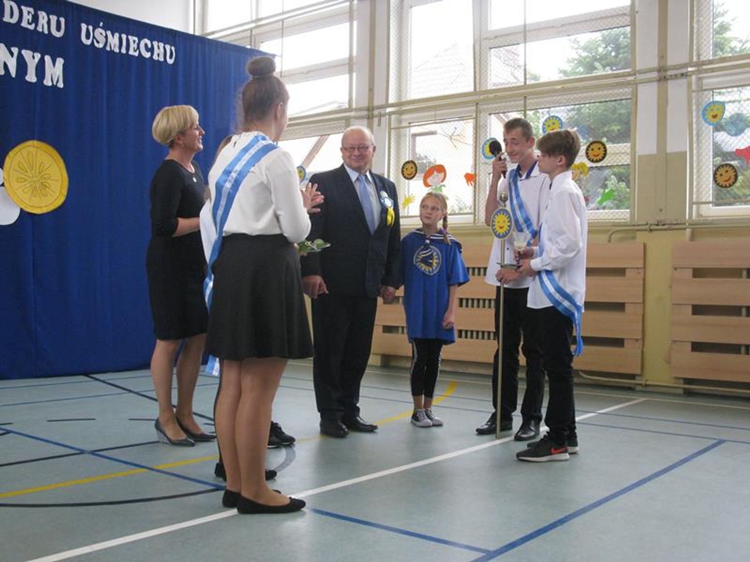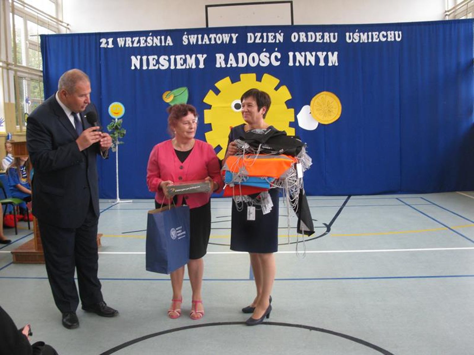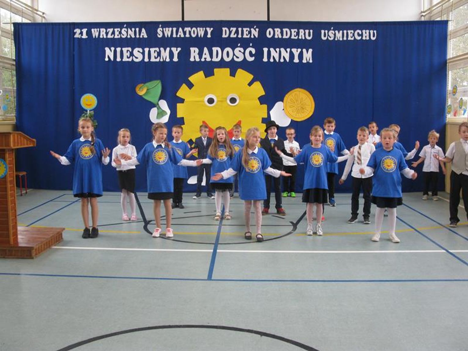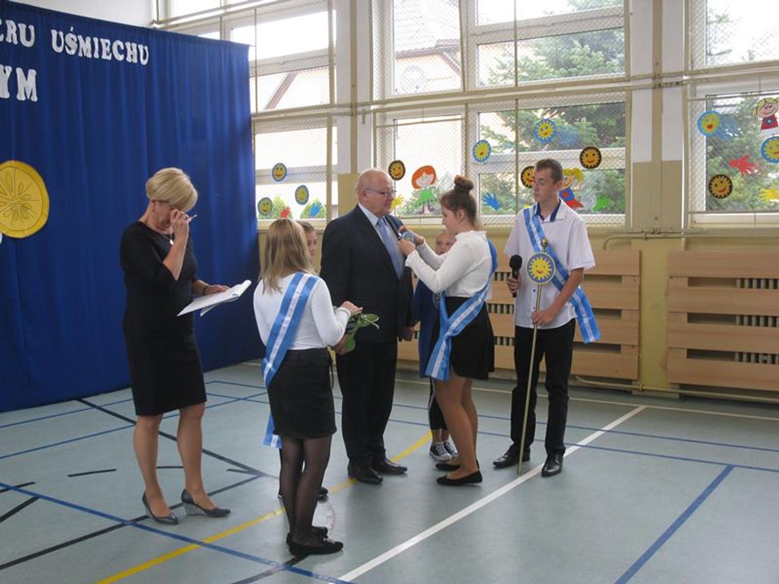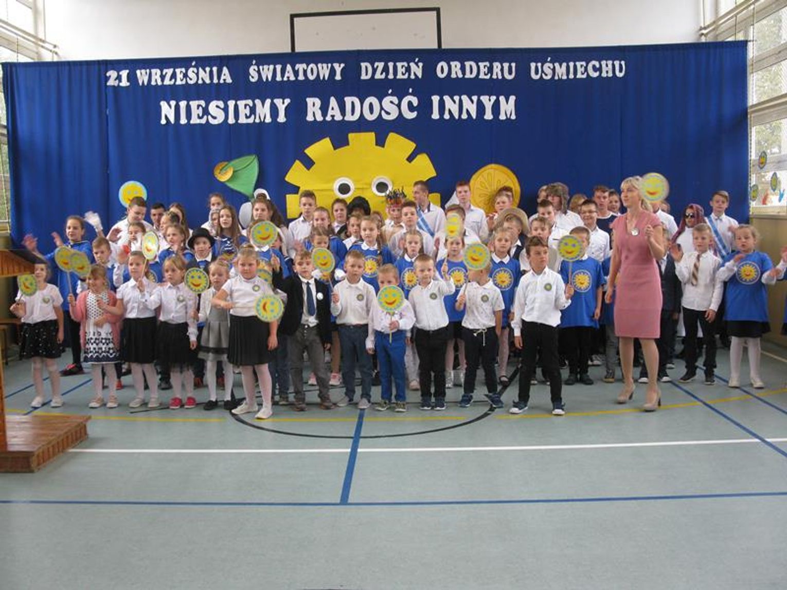 Już po raz trzeci uczestniczyliśmy w tak niezwykłym wydarzeniu wyrażając wdzięczność za współpracę, wspieranie naszych działań, okazaną nam pomoc i życzliwość. Pierwszym Przyjacielem Szkoły wyróżnionym tym orderem jest Pani Teresa Lewandowska, drugim Pan Janusz Purgal. Wspólne odśpiewanie piosenki ,,Order Uśmiechu” rozpoczęło to niecodzienne spotkanie, podczas którego zaszczyciło nas swoją obecnością wielu znakomitych gości.