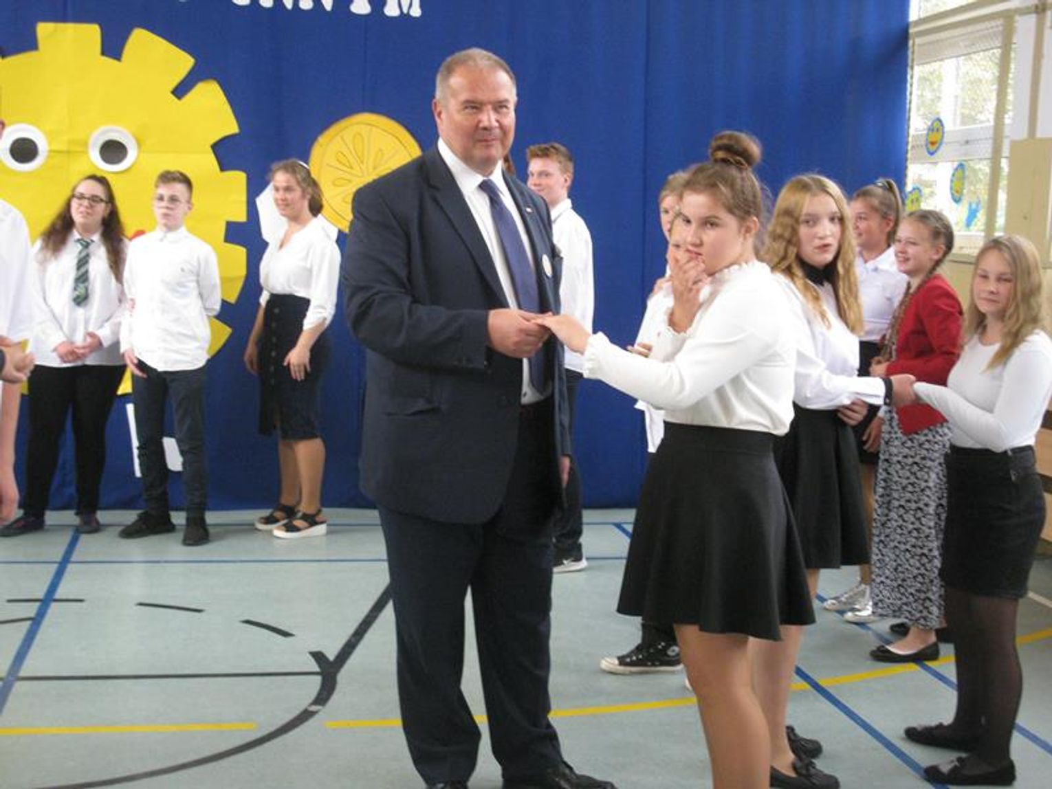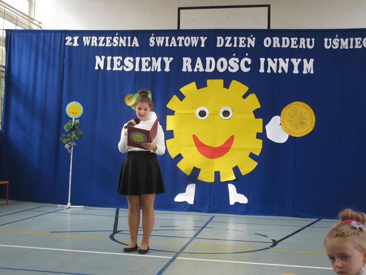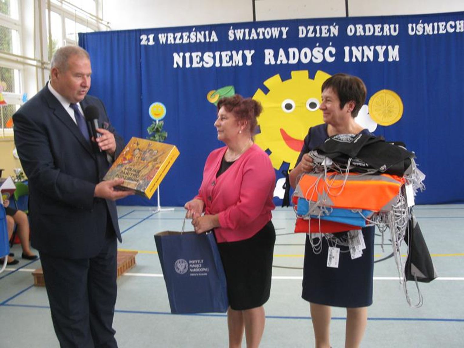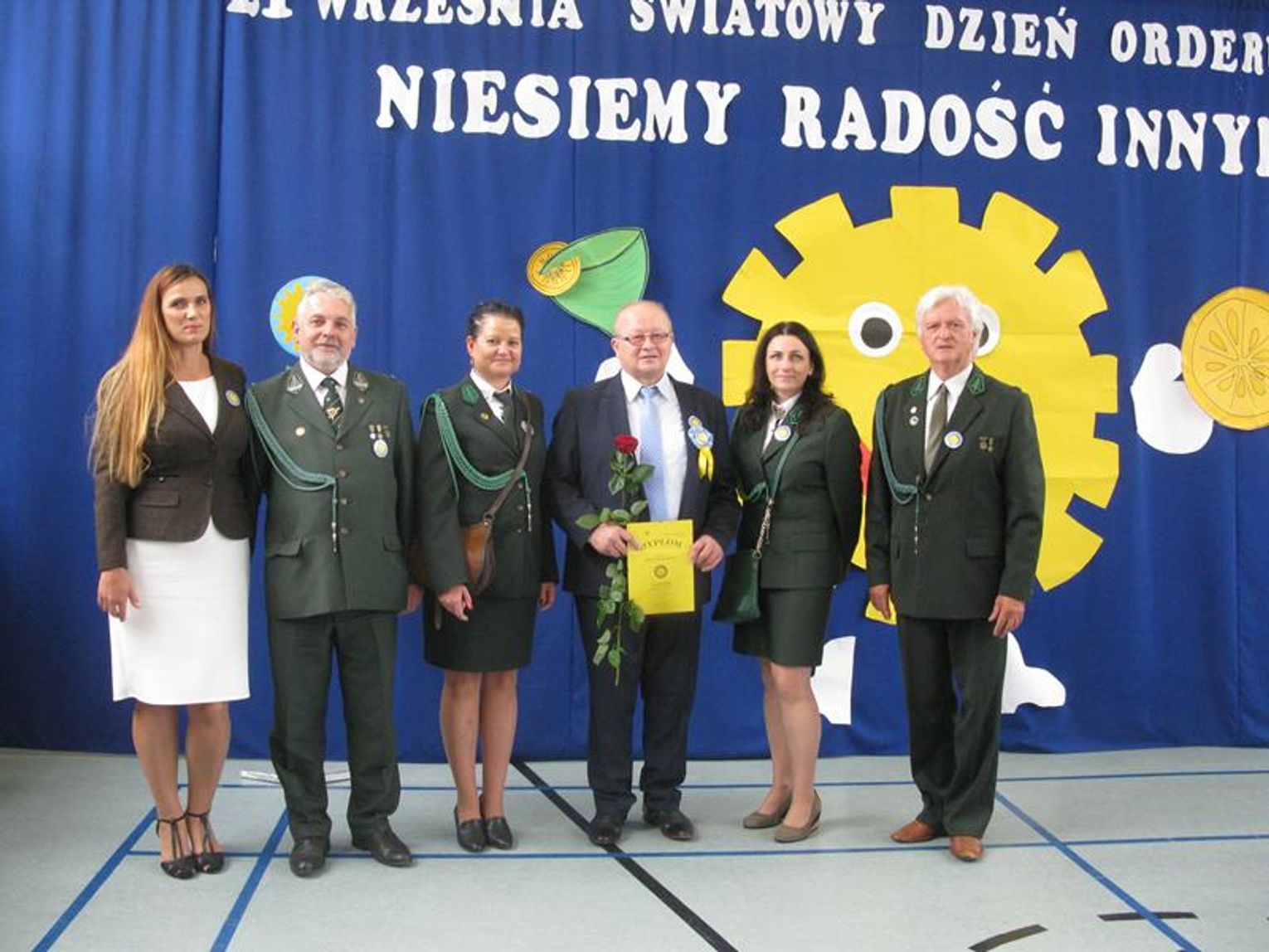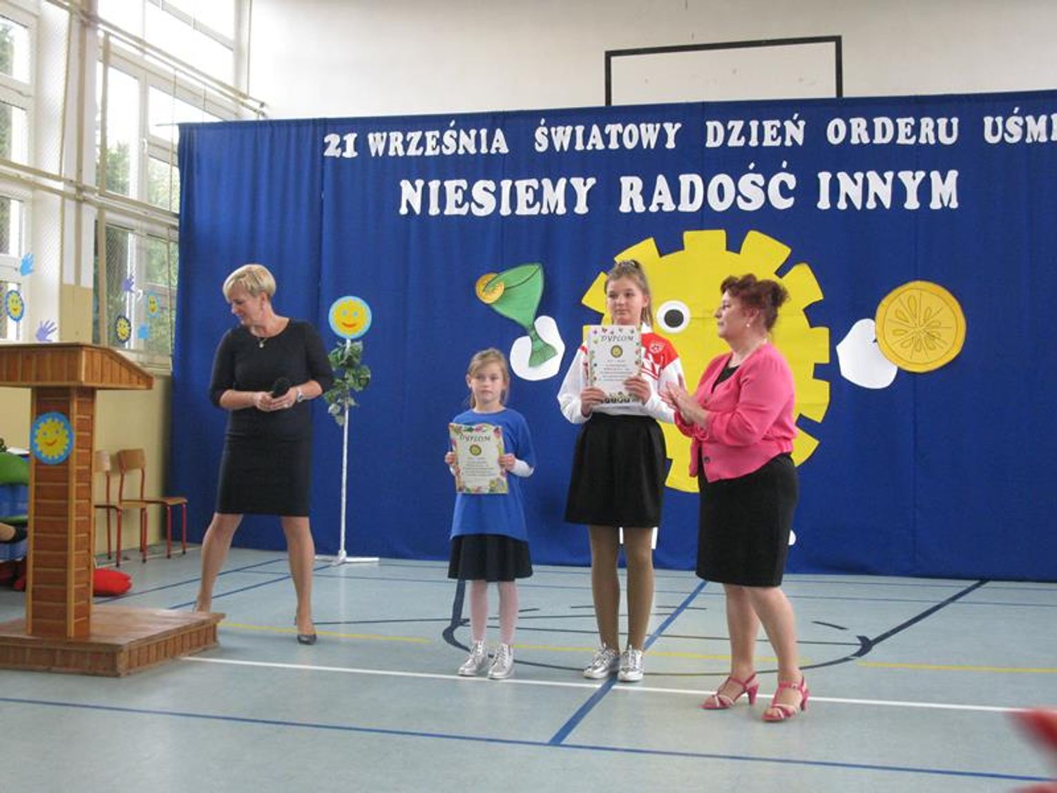 Już po raz trzeci uczestniczyliśmy w tak niezwykłym wydarzeniu wyrażając wdzięczność za współpracę, wspieranie naszych działań, okazaną nam pomoc i życzliwość. Pierwszym Przyjacielem Szkoły wyróżnionym tym orderem jest Pani Teresa Lewandowska, drugim Pan Janusz Purgal. Wspólne odśpiewanie piosenki ,,Order Uśmiechu” rozpoczęło to niecodzienne spotkanie, podczas którego zaszczyciło nas swoją obecnością wielu znakomitych gości.