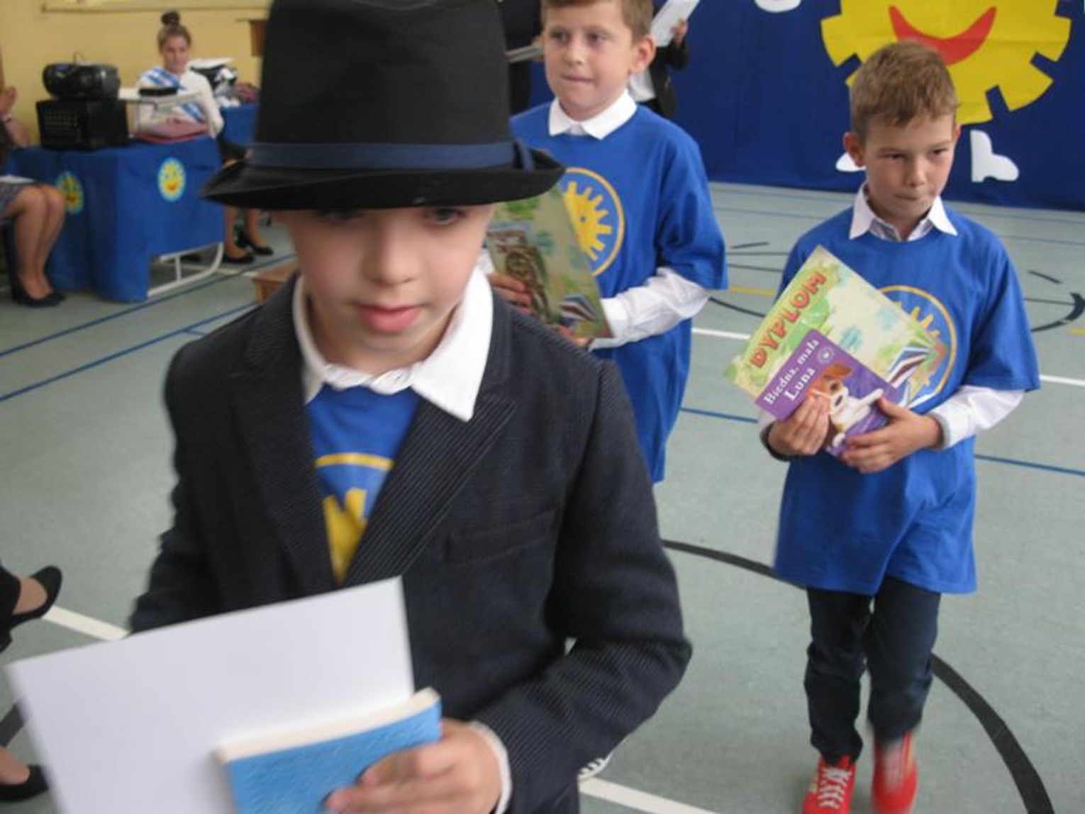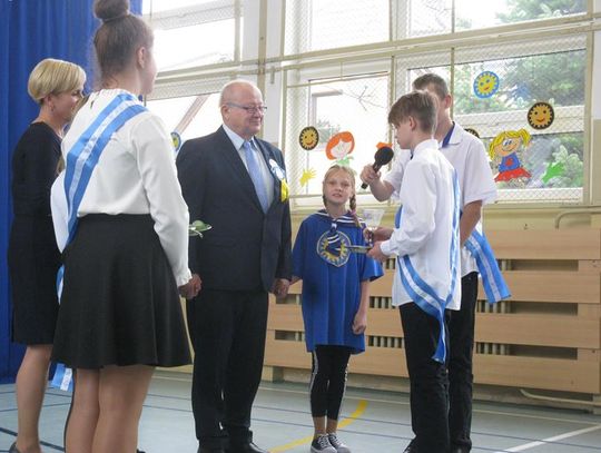 to szóstoklasiści. Wszyscy otrzymali nagrody książkowe oraz pamiątkowe dyplomy, które wręczyła Pani Dyrektor Wanda Angowska. Najpiękniejsze gazetki wykonali uczniowie klasy II oraz klasy VII.