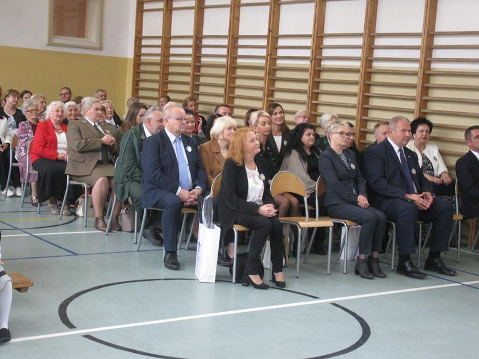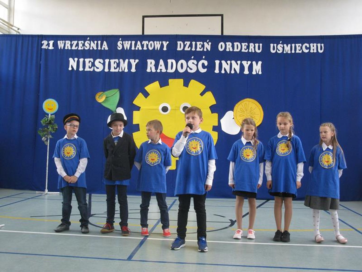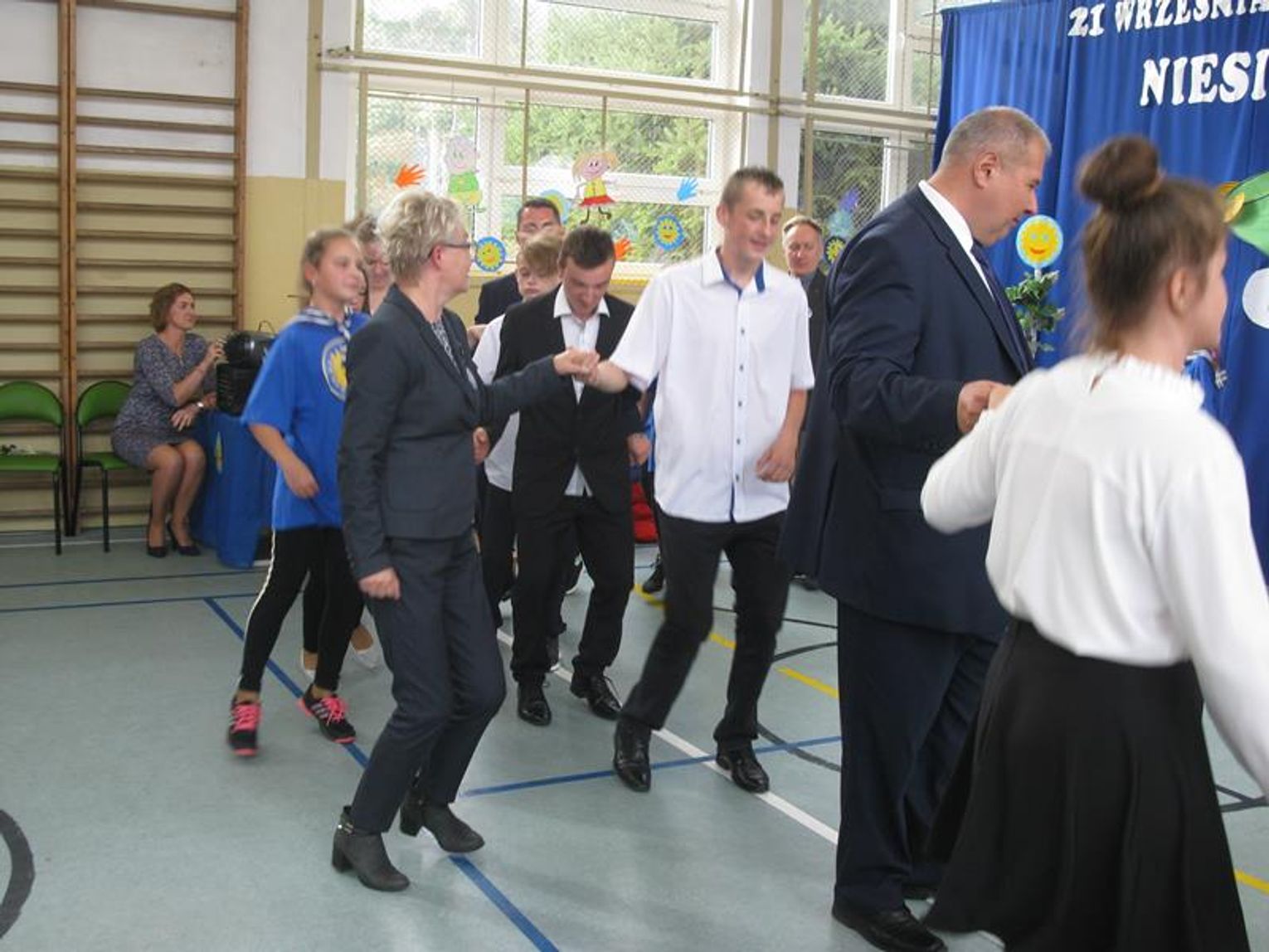 Na uroczystość przybyli Przyjaciele Szkoły, od lat współpracujący z naszą placówką. Do tego grona należą: Pani Krystyna Zioła, Pani Alicja Saja, Pani Alfreda Karmelita, Pani Emilia Więcławska, Pan Jan Bosek. Zaszczyceni zostaliśmy obecnością pokolenia Dzieci Wojny. Gościliśmy: Panią Ludwikę Powiadę, Panią Franciszkę Krakowską, Panią Irenę Fedczyszyn, Panią Antoninę Wodzińską, Panią Leokadię Lewandowską, Panią Danutę Nowak, Panią Helenę Krysztoforską oraz emerytowanych nauczycieli i pracowników szkoły, sponsorów, rodziców, dziadków, mieszkańców Stołecznej, Piaseczna, Babina i Wesołej. Wiele ciepłych słów z życzeniami i podziękowaniem za zaproszenie skierowała do nas Pani Halina Szymańska- Szefowa Kancelarii Prezydenta Rzeczypospolitej Polskiej, od której list odczytała Pani Wanda Angowska. Głos zabrała Pani Kurator podkreślając bardzo dobrą współpracę oraz obdarowała nas prezentami. Również Pan Leszek Dobrzyński przygotował dla wszystkich uczniów upominki. Społeczność szkolna zaśpiewała hymn szkoły w obecności pocztów sztandarowych - naszej szkoły oraz Klubu Kolekcjonera i Kultury Łowieckiej im. Włodzimierza Korsaka z Gorzowa. Następnie wysłuchaliśmy historii Orderu Uśmiechu o randze międzynarodowej.