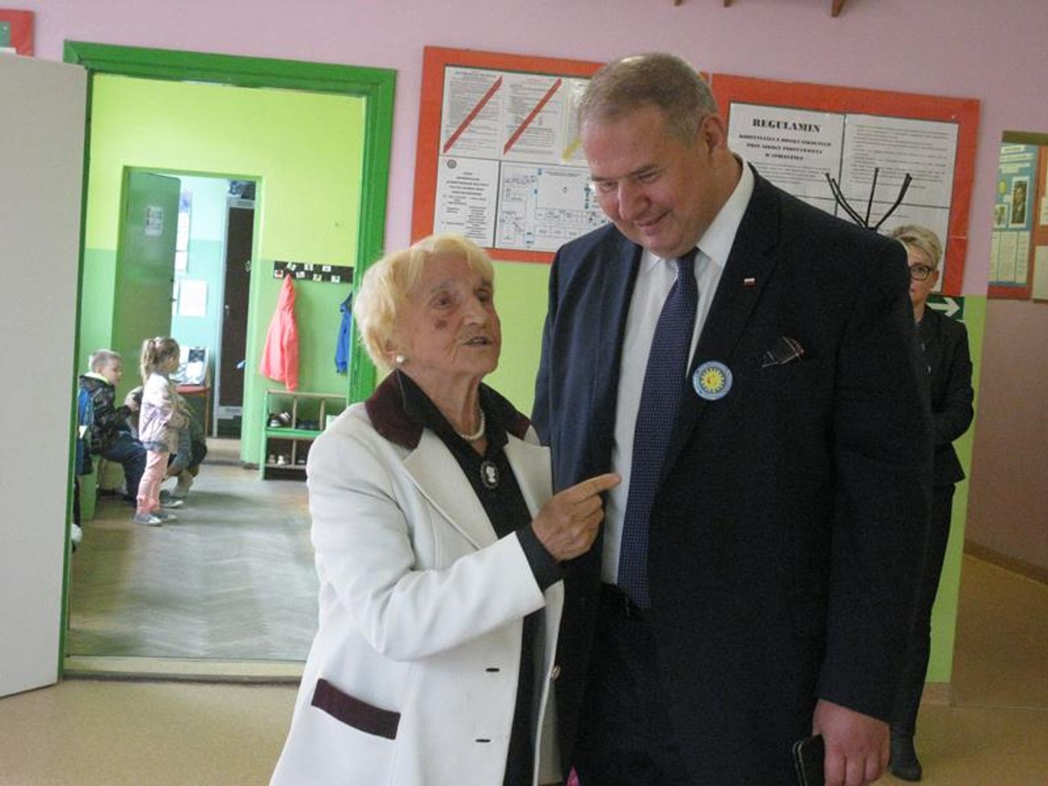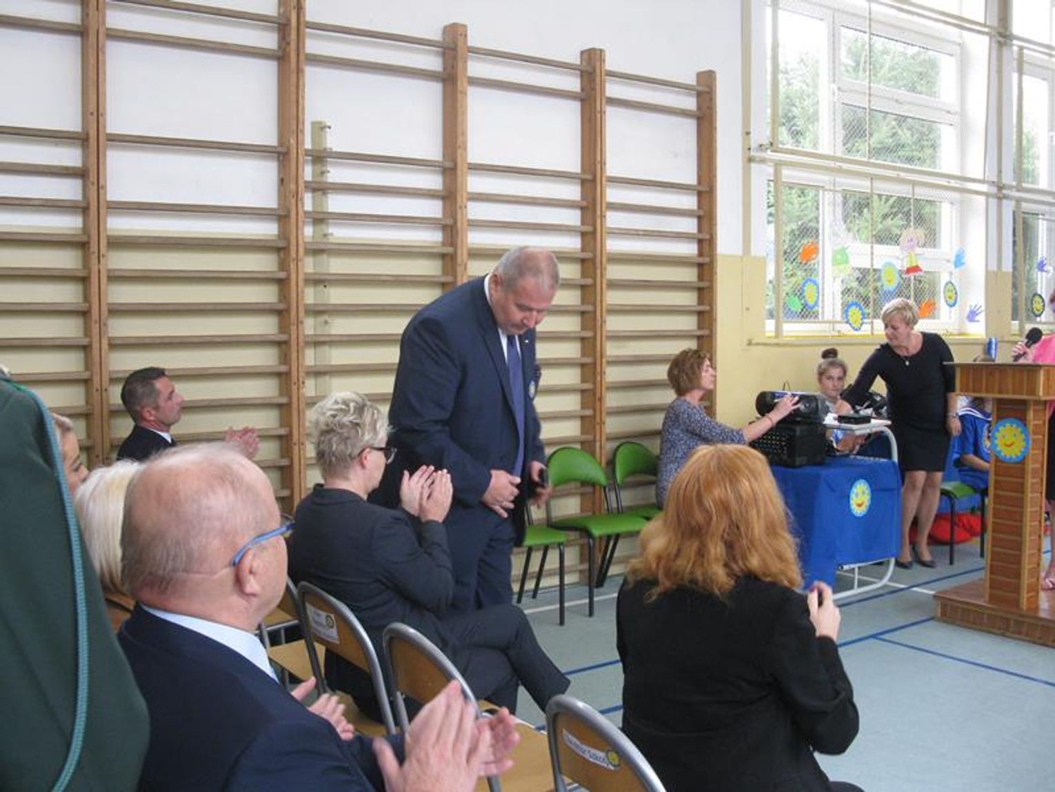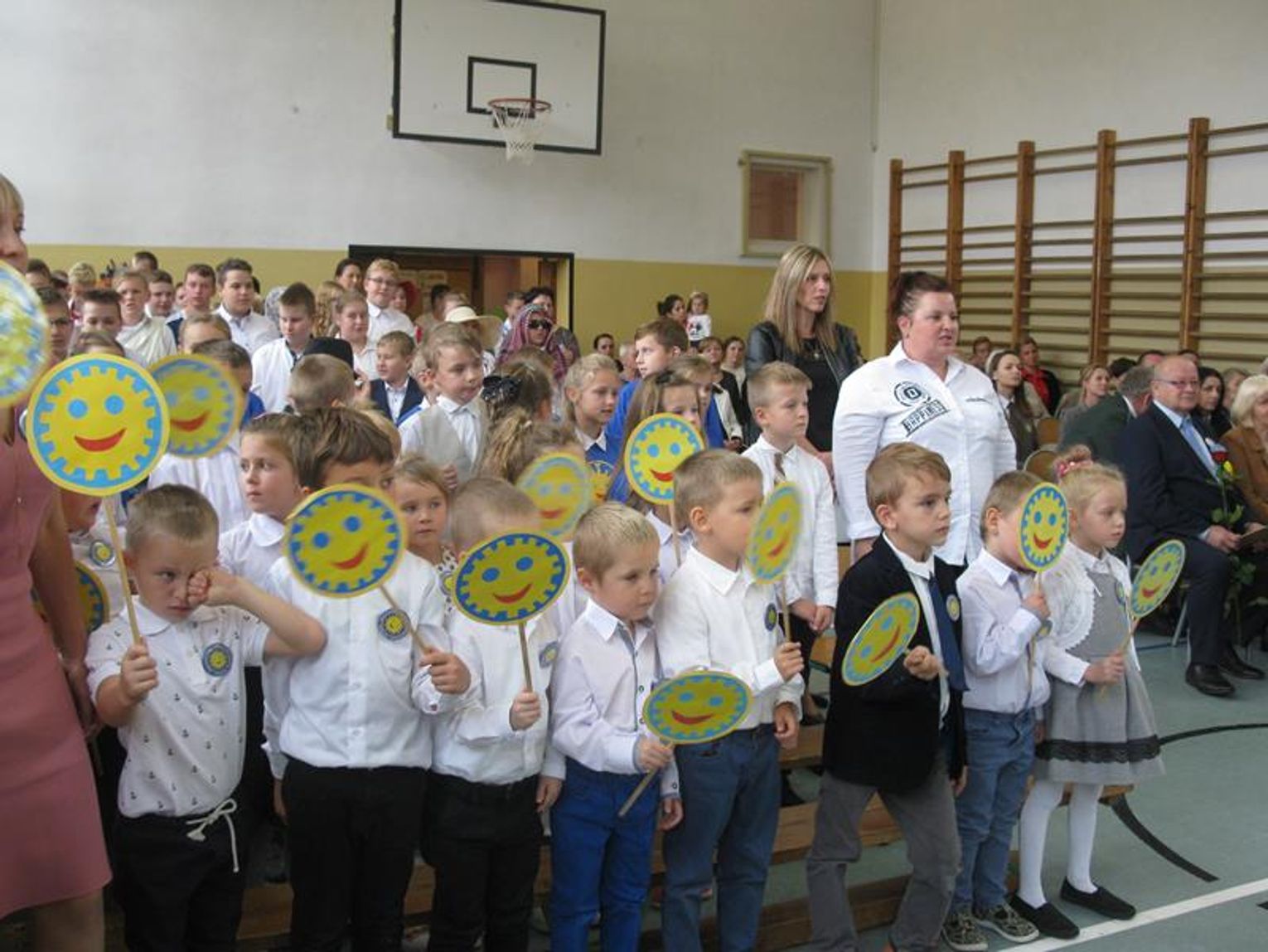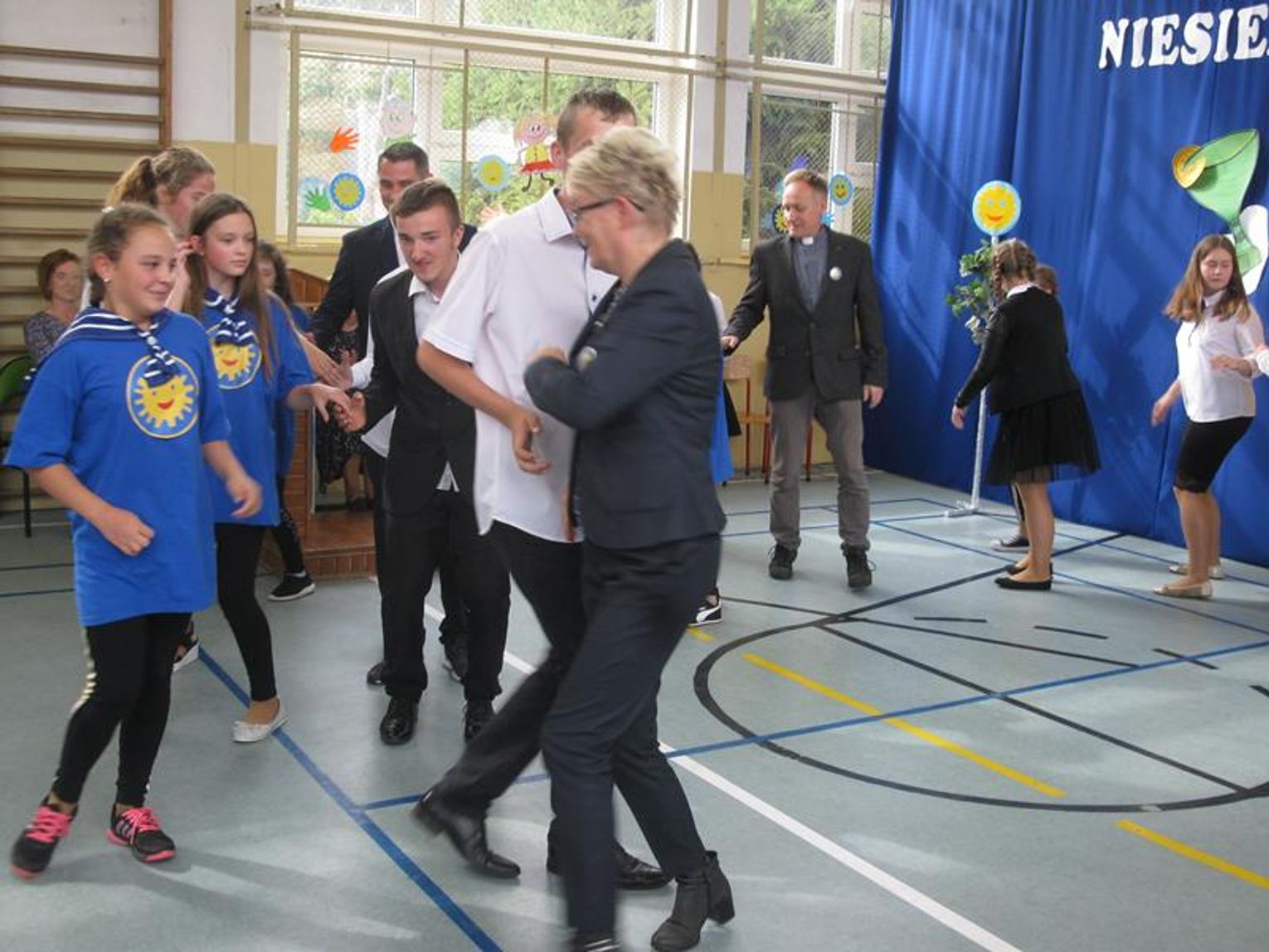 Na uroczystość przybyli Przyjaciele Szkoły, od lat współpracujący z naszą placówką. Do tego grona należą: Pani Krystyna Zioła, Pani Alicja Saja, Pani Alfreda Karmelita, Pani Emilia Więcławska, Pan Jan Bosek. Zaszczyceni zostaliśmy obecnością pokolenia Dzieci Wojny. Gościliśmy: Panią Ludwikę Powiadę, Panią Franciszkę Krakowską, Panią Irenę Fedczyszyn, Panią Antoninę Wodzińską, Panią Leokadię Lewandowską, Panią Danutę Nowak, Panią Helenę Krysztoforską oraz emerytowanych nauczycieli i pracowników szkoły, sponsorów, rodziców, dziadków, mieszkańców Stołecznej, Piaseczna, Babina i Wesołej. Wiele ciepłych słów z życzeniami i podziękowaniem za zaproszenie skierowała do nas Pani Halina Szymańska- Szefowa Kancelarii Prezydenta Rzeczypospolitej Polskiej, od której list odczytała Pani Wanda Angowska. Głos zabrała Pani Kurator podkreślając bardzo dobrą współpracę oraz obdarowała nas prezentami. Również Pan Leszek Dobrzyński przygotował dla wszystkich uczniów upominki. Społeczność szkolna zaśpiewała hymn szkoły w obecności pocztów sztandarowych - naszej szkoły oraz Klubu Kolekcjonera i Kultury Łowieckiej im. Włodzimierza Korsaka z Gorzowa. Następnie wysłuchaliśmy historii Orderu Uśmiechu o randze międzynarodowej.