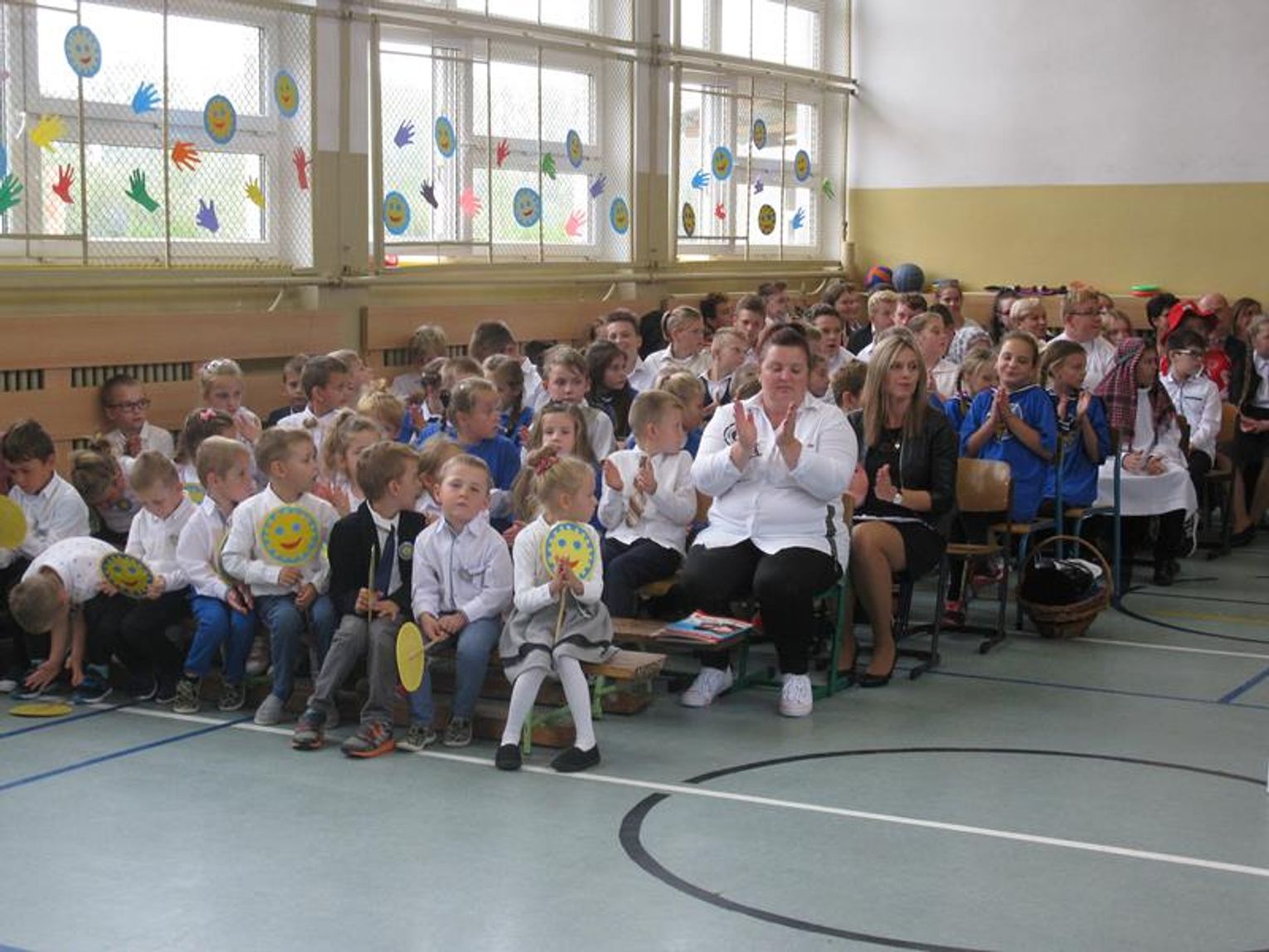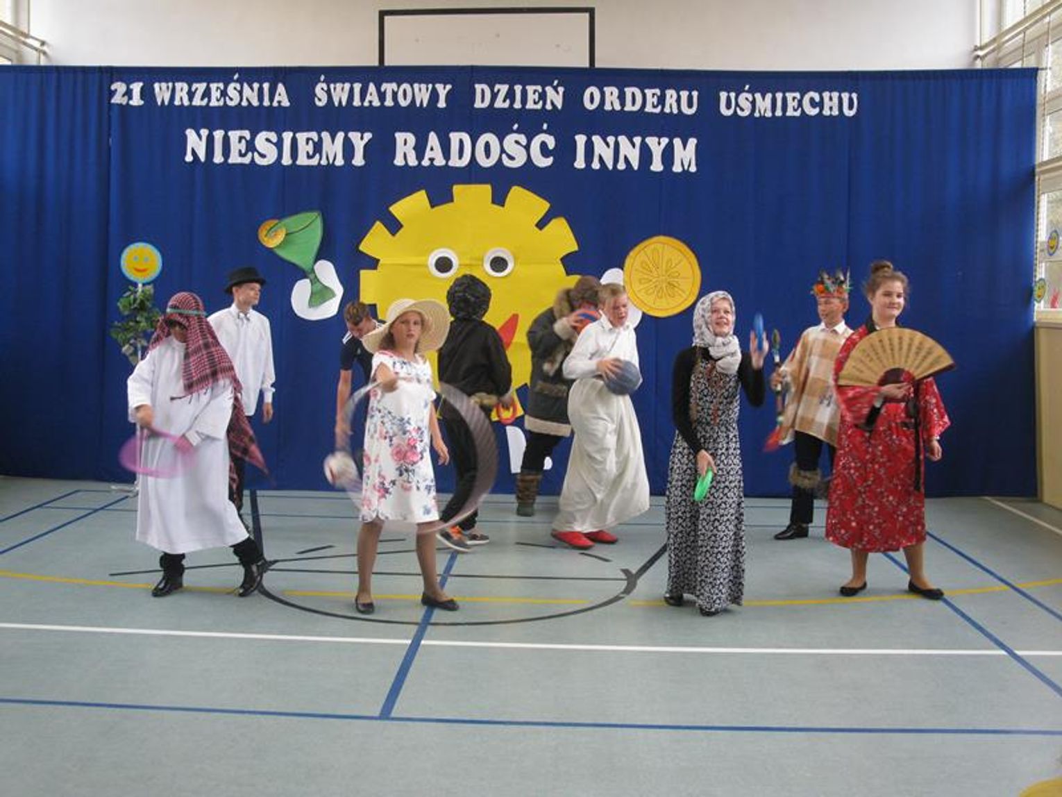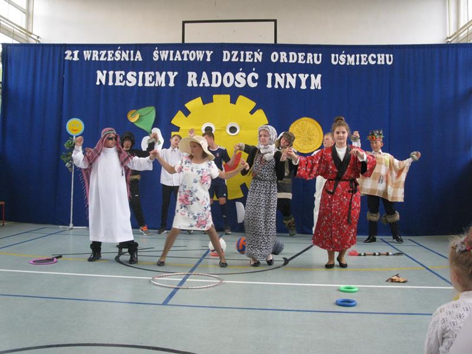 ,,Jak pięknie żyć” uczył Ryszard Rynkowski, który przybył z klasą III ,,pociągiem’’. Pierwszoklasiści natomiast zwrócili, uwagę na Panią Martę Bogdanowicz i jej ,,Metodę dobrego startu”, która ułatwia im przygodę z edukacją. Drugoklasiści przypomnieli wszystkim wrażliwość i talent poety Jana Twardowskiego. Uczniowie klasy siódmej postawili na sport prezentując wybitnych medalistów i ich osiągnięcia. W biało-czerwonych strojach przedstawili Mariana Woronina, Otylię Jędrzejczak, Jakuba Błaszczykowskiego oraz Marcina Gortata. Występy klas, solistów przeplatały się z tańcem i śpiewem młodszych dzieci oraz nastrojowym walczykiem w wykonaniu kl. VIII. Nie zapomnieliśmy o gościach, którzy nie mogli do nas przybyć na uroczystość.