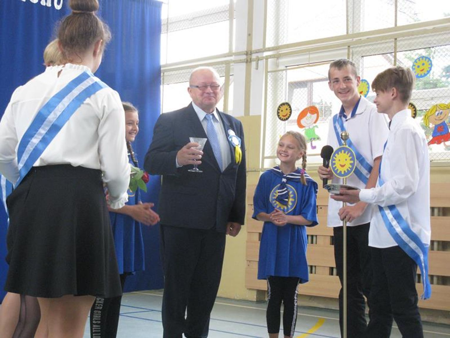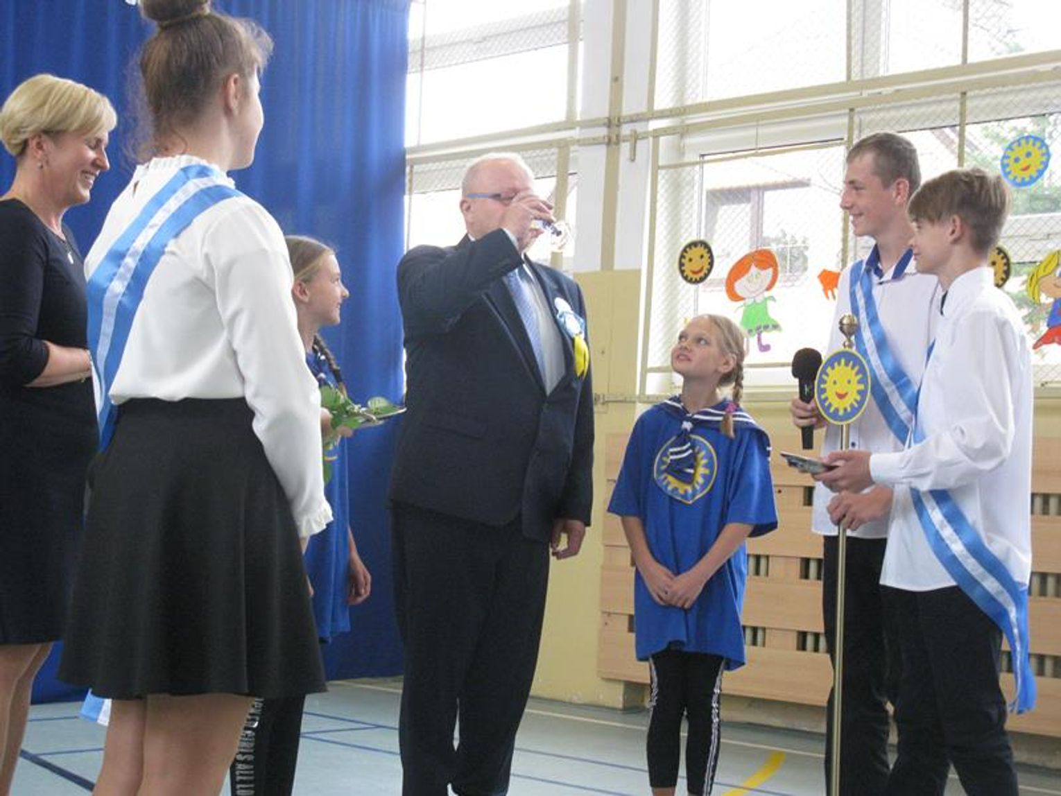 Niezwykle ważnym momentem było wręczenie Panu Janowi Kozakowi Orderu Dziecięcej Radości i tym samym przyjęcie go do grona ludzi, którzy ,,na przekór wiatrom i burzom są zawsze pogodni i dzieciom radość przynoszą”. Z uwagą śledziliśmy poczynania kandydata wypijającego z uśmiechem sok z cytryny, jak przystało na prawdziwego Kawalera Orderu Uśmiechu.