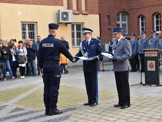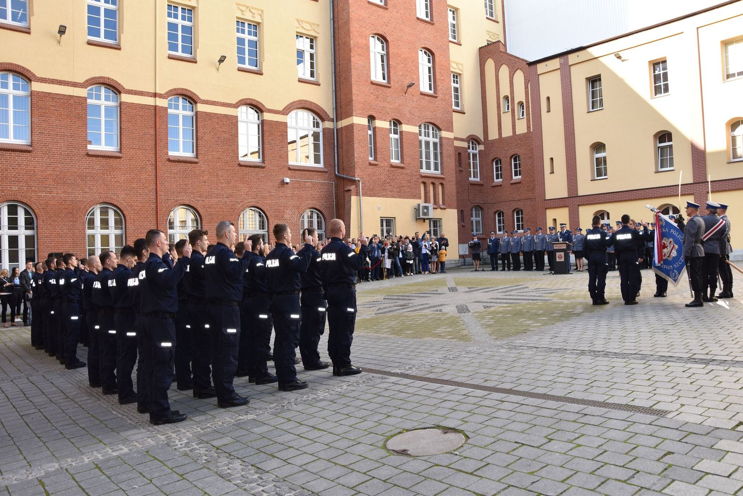 Na dziedzińcu Komendy Wojewódzkiej w Szczecinie odbyła się uroczysta zbiórka, podczas której ślubowali nowo przyjęci funkcjonariusze Policji.