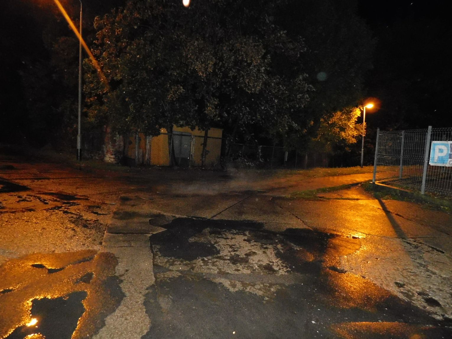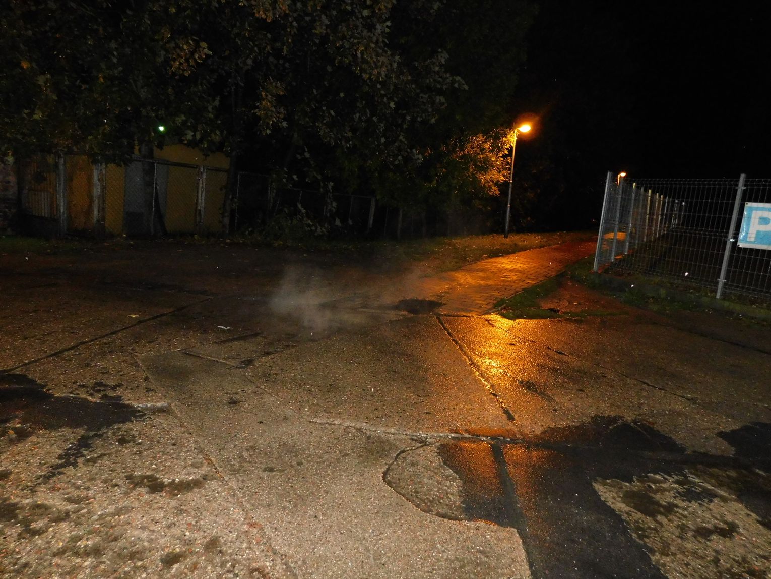 Od kilku dni tuż za sklepem Biedronka w Gryfinie, niedaleko bramy parkingu przy Intermedzie bucha z ziemi para. Spod betonowych płyt wycieka gorąca woda.