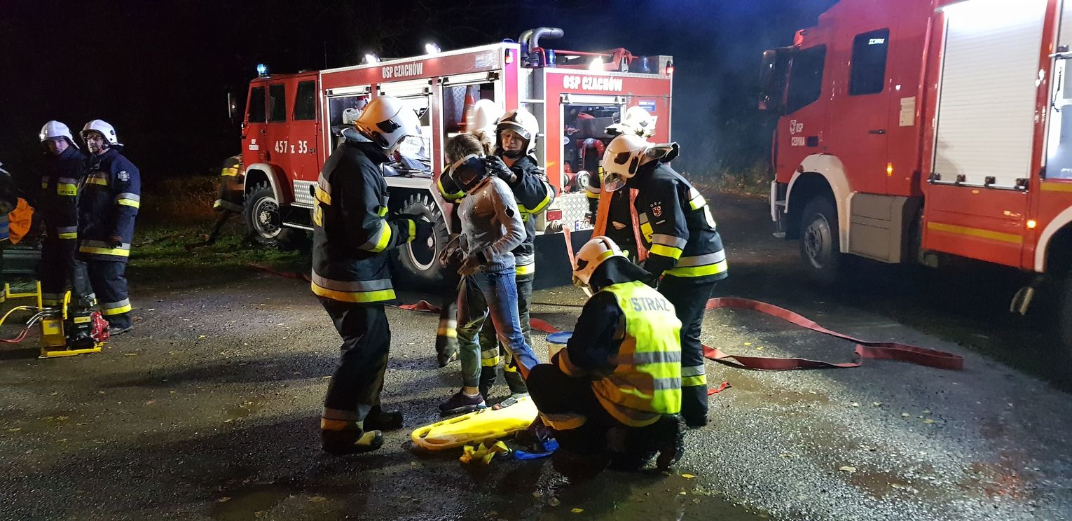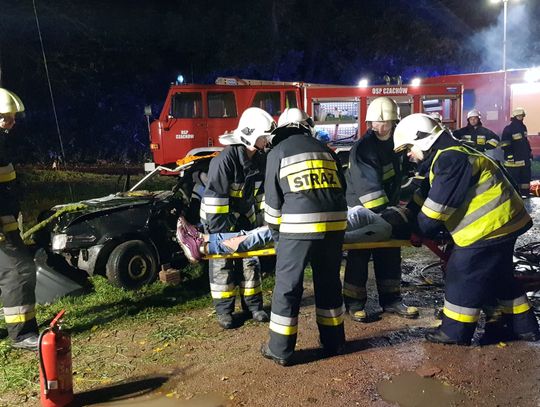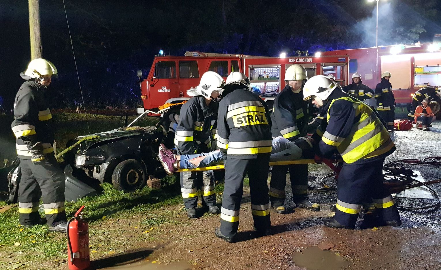 Specjalnymi nożycami rozcięto karoserię. Ostroźnie wyciągnięto poszkodowaną kobietę, wcześniej zabezpieczając górny odcinek jej kręgosłupa. Na noszach przetransportowano w bezpieczne miejsce.