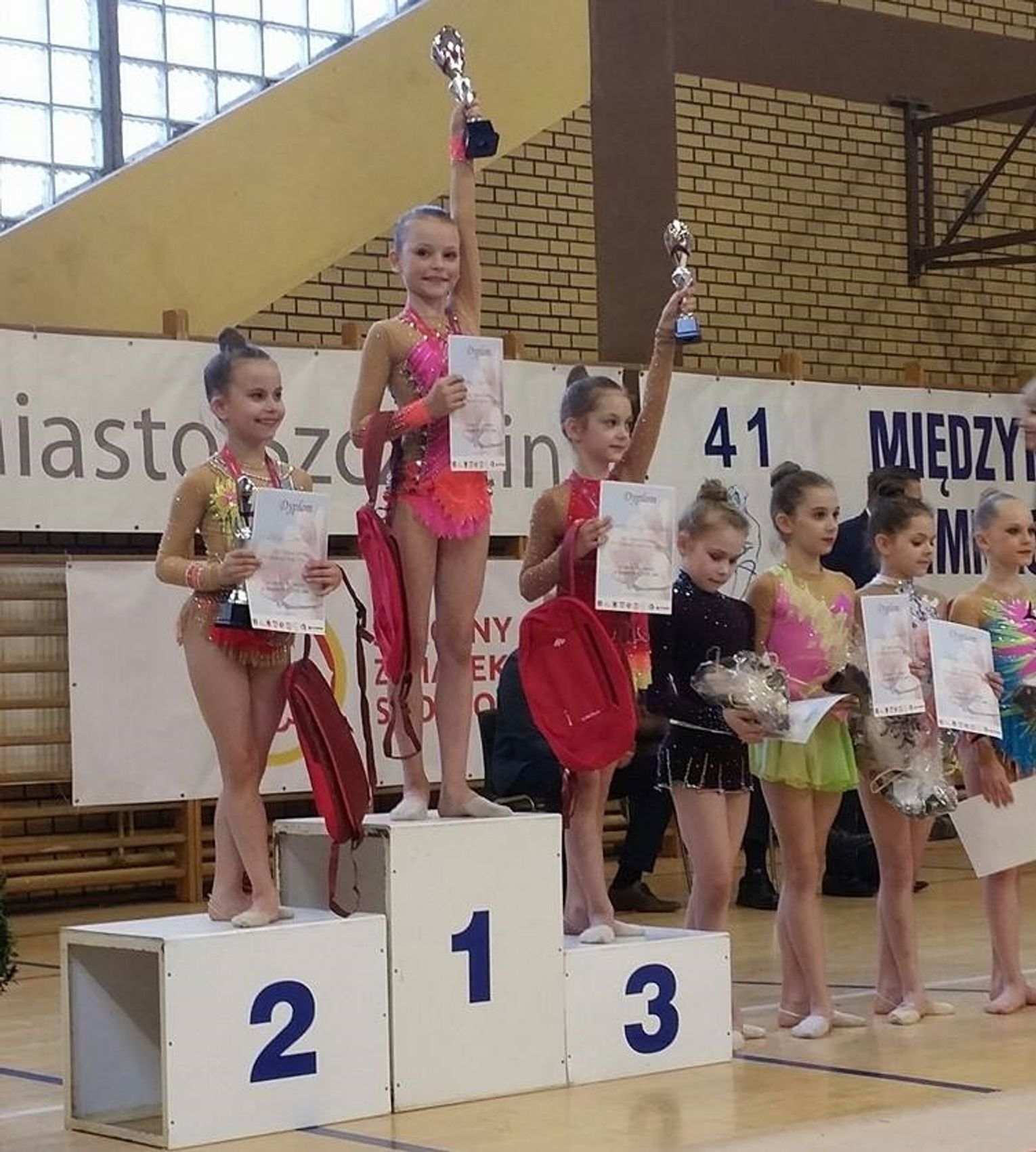 Starsze koleżanki w rywalizacji również wypadły bardzo dobrze. Kamila Kosudzińska startując ze skakanką i obręczą zajęła 9 miejsce, natomiast Julia Wiczkowska uplasowała się na 13 pozycji występując z piłka i obręczą. Gorąco gratulujemy zawodniczkom i p. trener Gabrieli Kaczmarek. Aby rok startowy który dopiero się zaczął przyniósł naszym gimnastyczkom same sukcesy. Hermes Gryfino