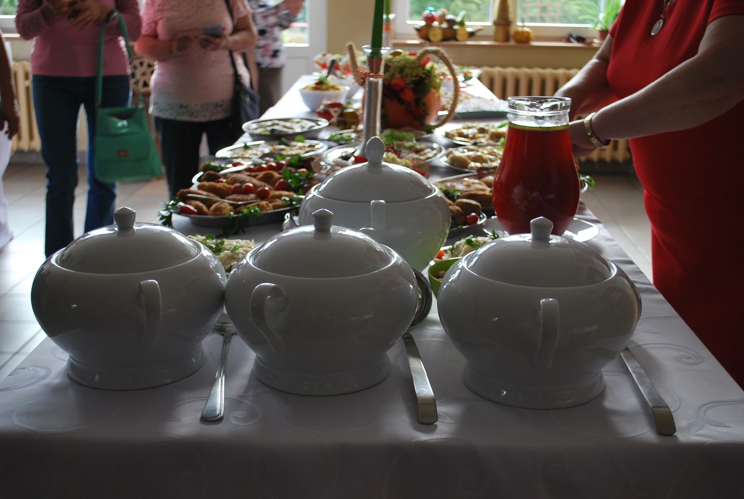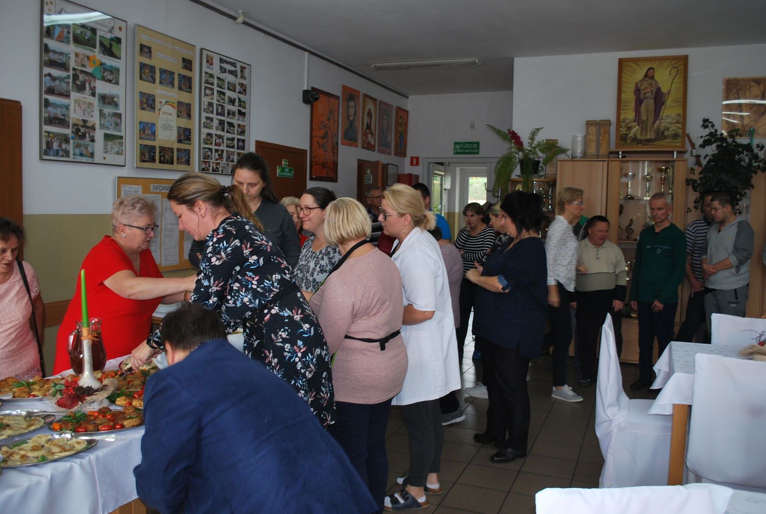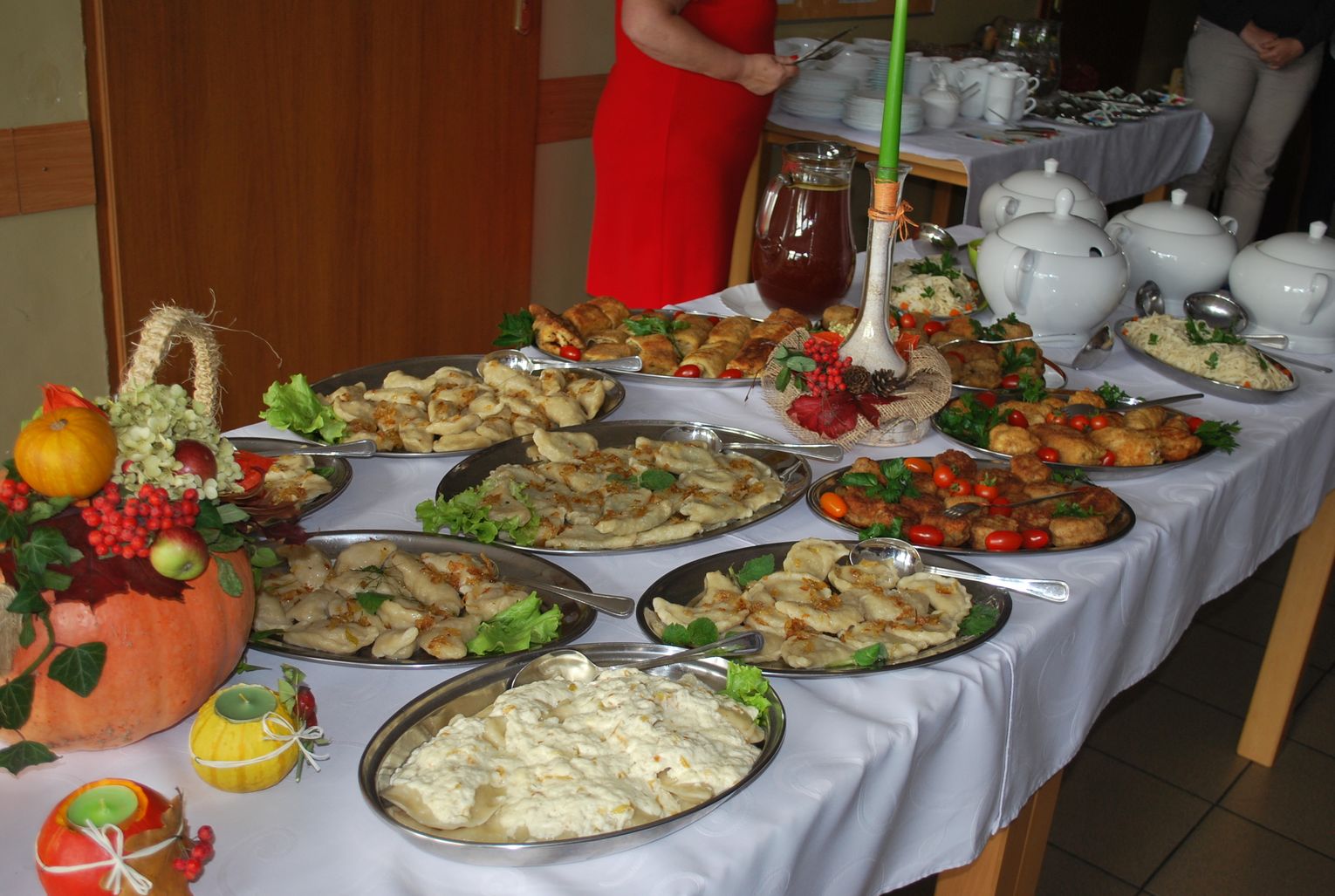 W trakcie gdy jedna grupa uczestników projektu tworzyła przepiękne prace inna grupa z pasją przygotowywała kulinarne smakołyki. Panie z Kół Gospodyń Wiejskich ochoczo przystąpiły do pracy, aby następnie wszyscy uczestnicy mogli skosztować przygotowanych specjałów. I tak powstała przepyszna jesienna zupa krem z dyni, rosół z makaronem własnej roboty, dania mięsne w tym pieczeń w sosie własnym, kotlet devolay, pieczarka faszerowana, różnego rodzaju pierogi, sałatki, surówki oraz ciasta i desery.