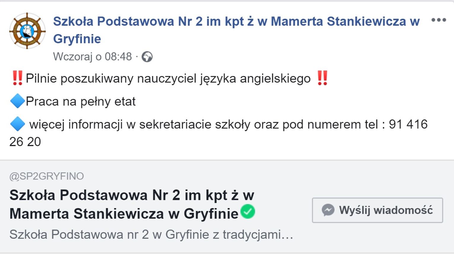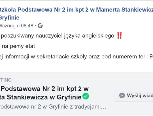 Do burmistrza Gryfina wysyłamy zatem zapytanie w sprawie poruszonej przez rodziców uczniów.
