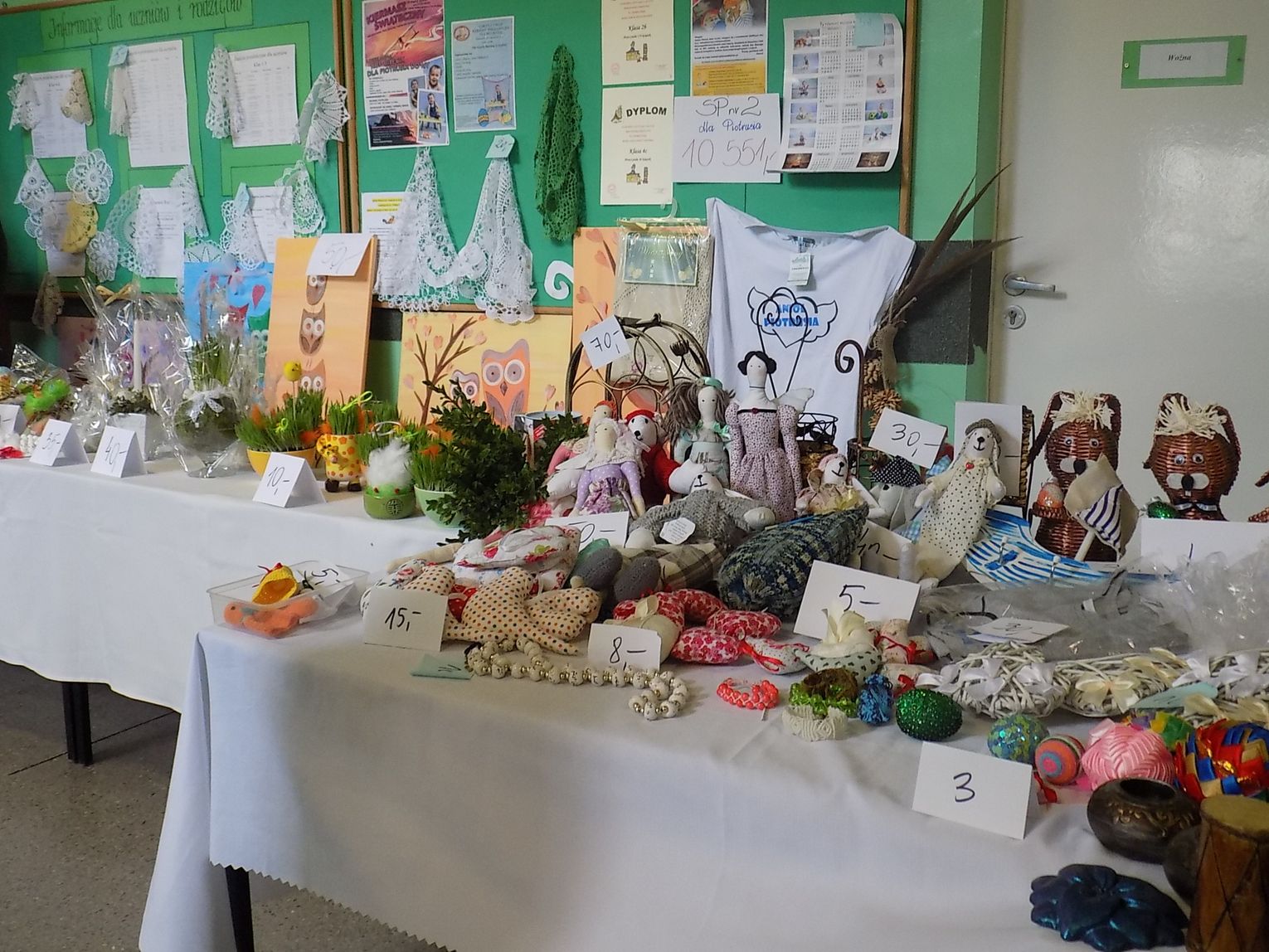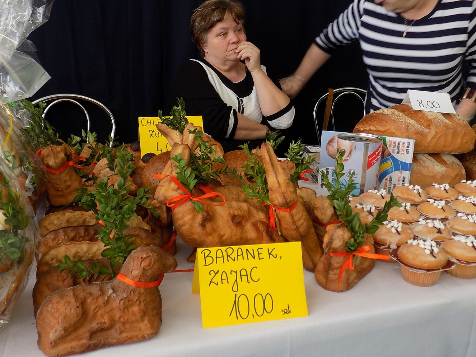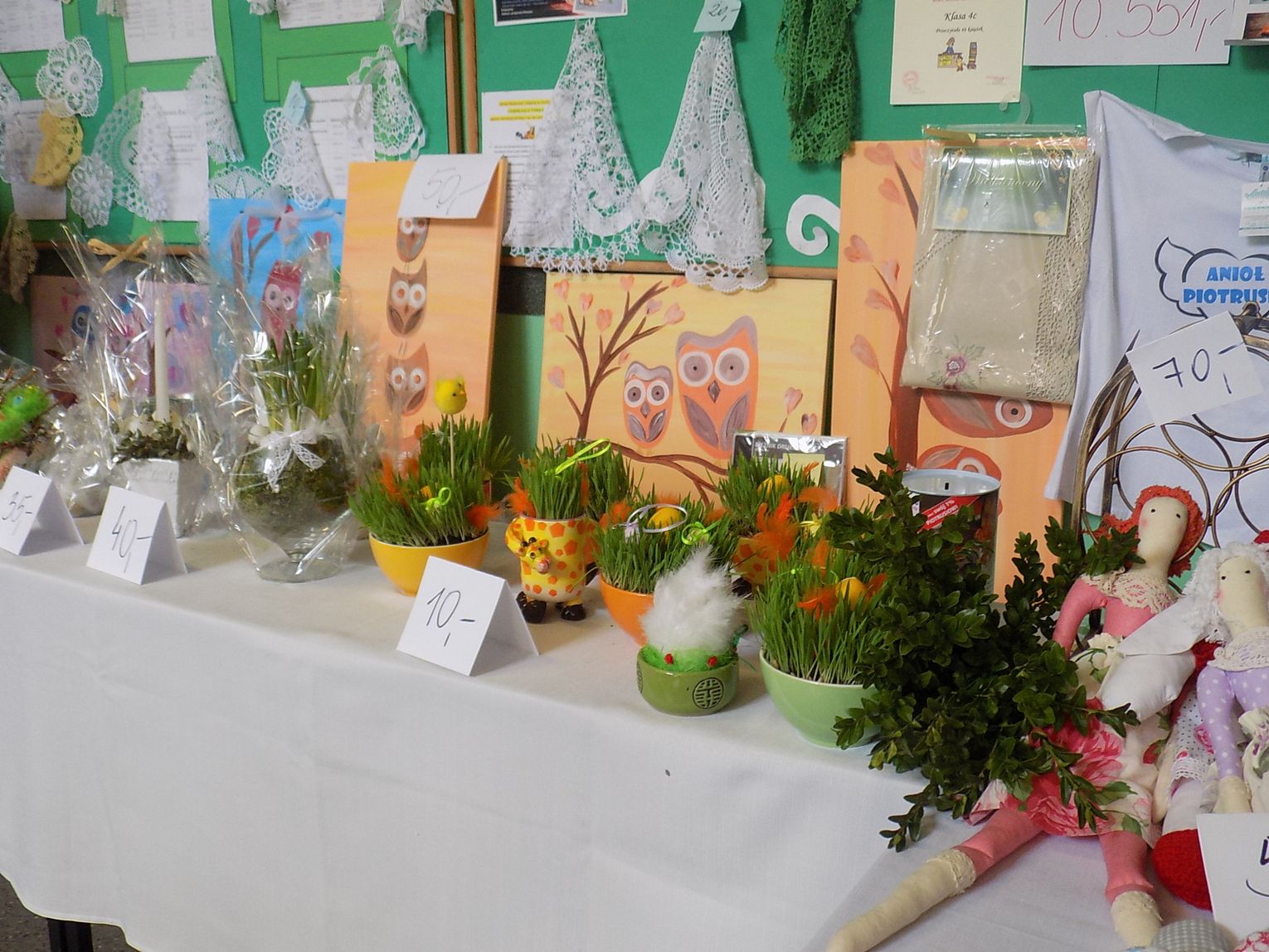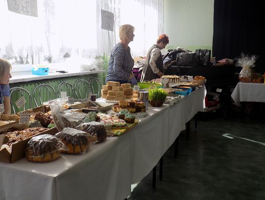 Na straganach pachniał chleb, ciasta jakie tylko dusza zapragnie. Były też piękne obrazy wyszywane krzyżykiem. Przed Wielkanocą nie mogło zabraknąć jajek i gałązek. Oferowano też fanty do wygrania i książki po dwa złote. Kiermasz zaplanowano 18 marca do godz. 18.