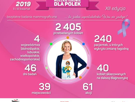 W ostatnim półroczu w Gryfinie odbyły się dwie akcje w ramach kampanii „Muszkieterowie dla Polek” prowadzone przed sklepami sieci Intermarché i Bricomarché. W dniach 29 kwietnia i 31 maja 2019 r. wzięło w nich udział łącznie 34 Pań, u 5 z nich zdiagnozowano łagodną zmianę.
