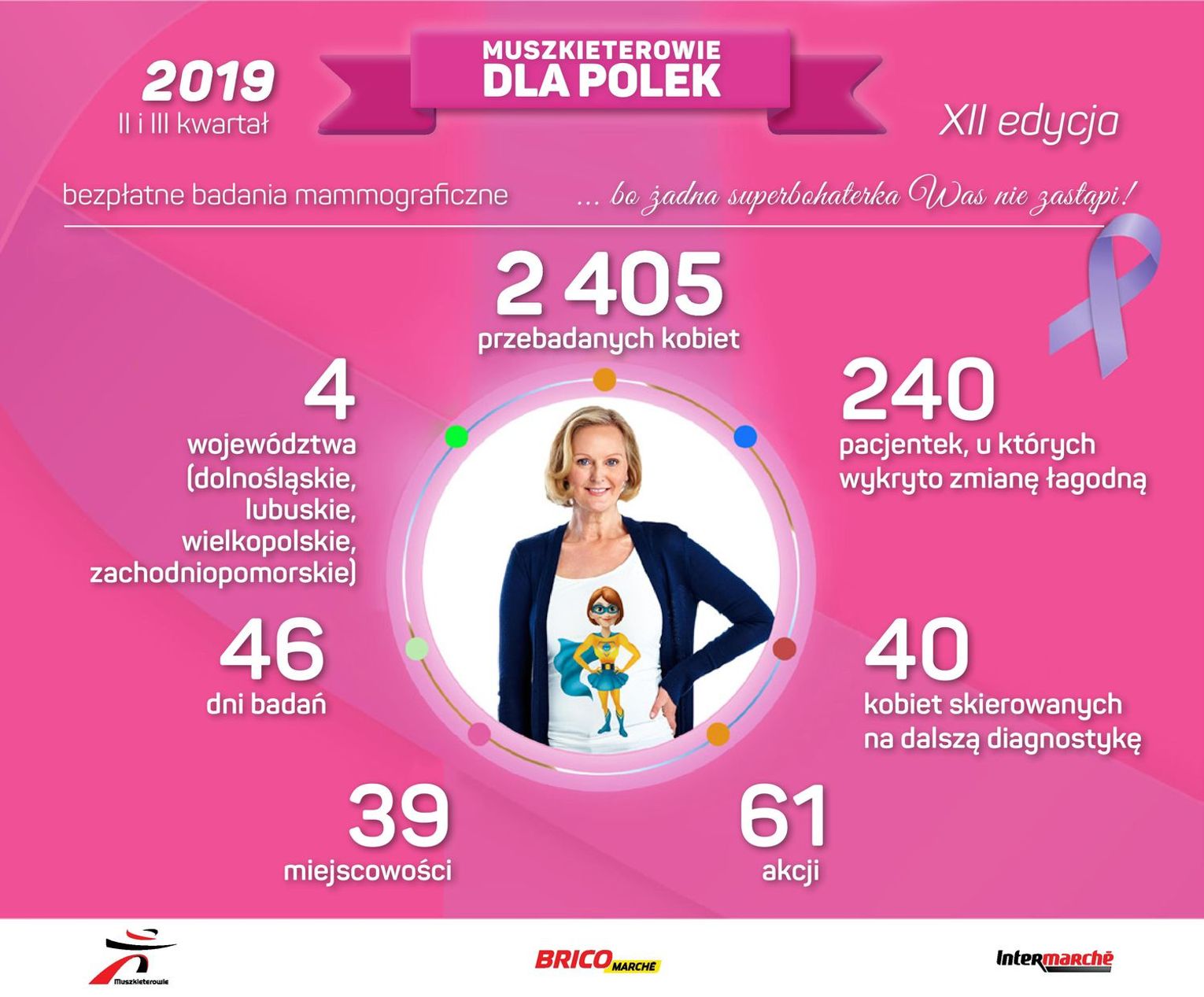 Grupa Muszkieterów od 12 lat aktywnie działa w obszarze promocji profilaktyki raka piersi poprzez organizację kampanii „Muszkieterowie dla Polek”. Badania przeprowadzają specjaliści w mammobusach zaparkowanych przed wybranymi sklepami sieci Intermarché i Bricomarché. Od początku roku przebadanych zostało aż 4 280 kobiet. Natomiast w ciągu ostatnich sześciu miesięcy diagnozie poddało się 2 405 Pań, u 240 z nich wykryto zmianę łagodną, a 40 skierowano na dalsze badania.