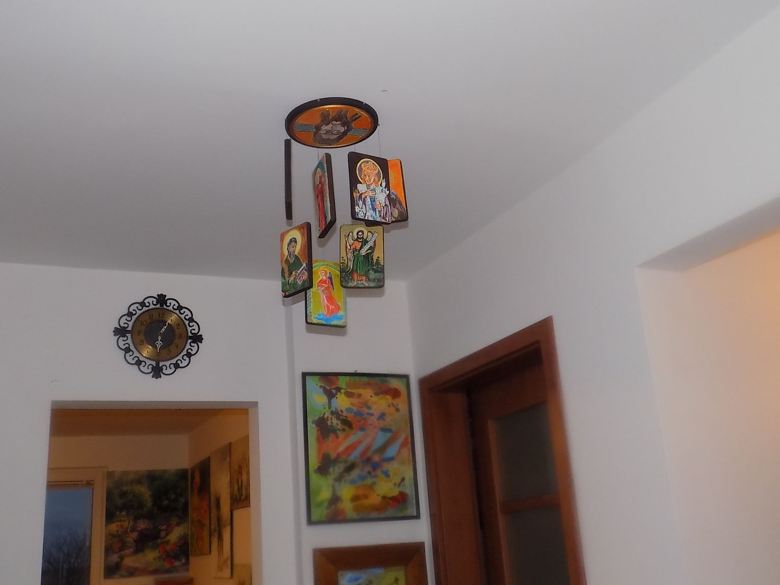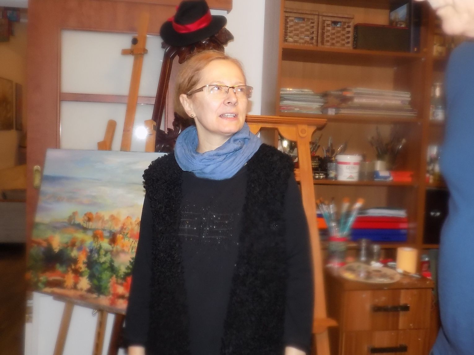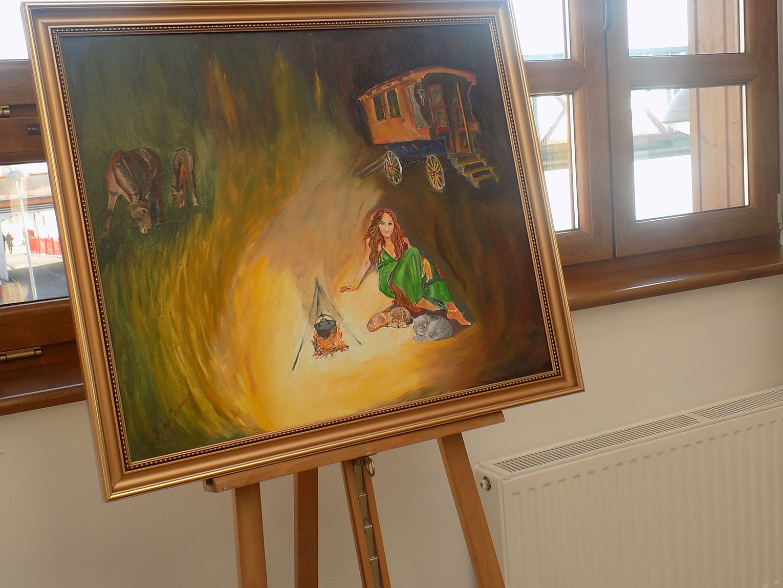 Mieszkanie malarki Marii Diakowskiej i jubilera-artysty Henryka Szymanowskiego znajduje się na czwartym piętrze. Jest bliżej nieba. Księżyc tu okrąglejszy i gwiazdy większe. Szerokie okno bez zasłon, bez firan, ale za tą szybą roztacza się widok jak z pocztówki. Krajobraz przed rzeką i daleko za rzeką. W pokoju przestrzeń. Jest kącik z pędzlami, farbami, dłutami. Na ścianach zaklęte w obrazach skrawki z życia. Samotny wilk, przepiękne irysy zdające się rozsiewać zapachy, kobiety w szpilkach. I ta trochę nierzeczywista atmosfera oraz przyjemna cisza i ostrożne stąpanie kocich łapek, istniejących tylko na obrazach pani Marii.