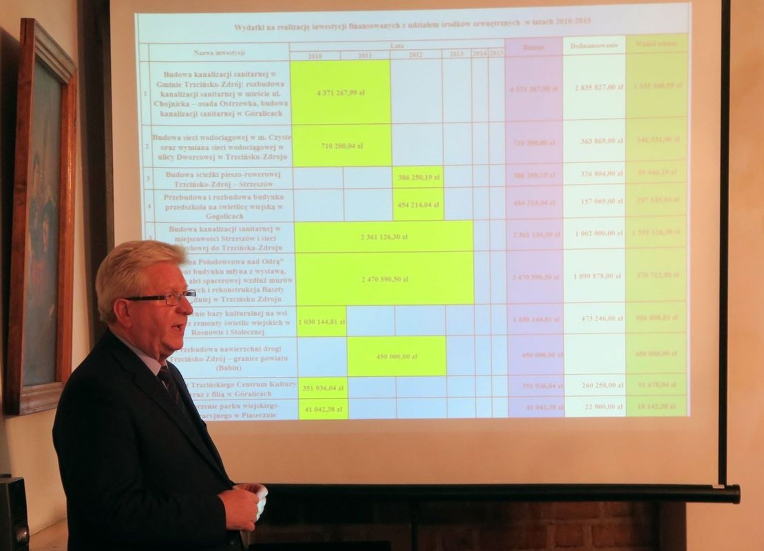 Burmistrz wymienił na co poszły kredyty. W latach 2010-2015 zrobiono w gminie inwestycje za 21 mln zł. Dofinansowanie wyniosło 11,5 mln zł.