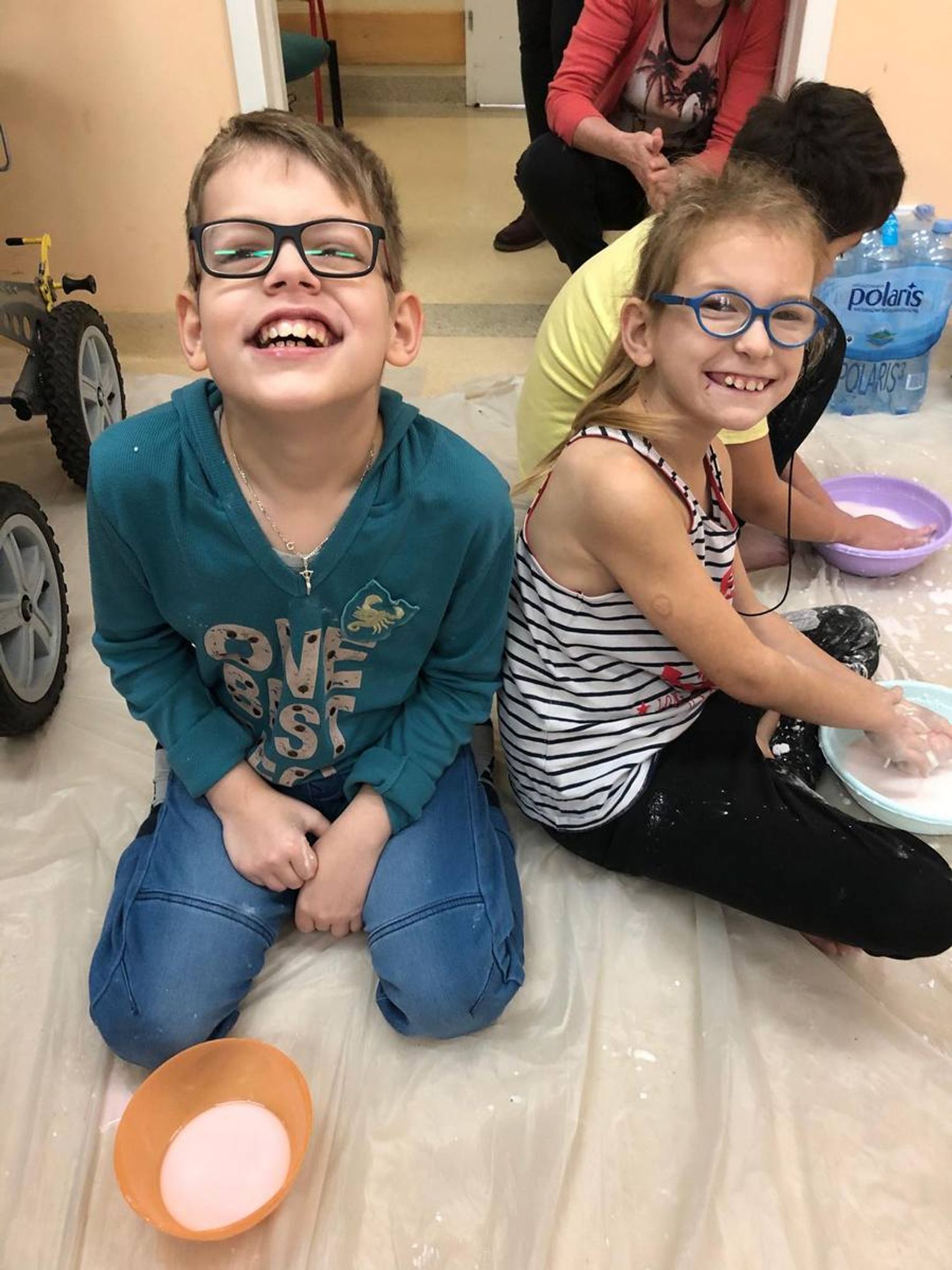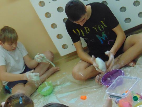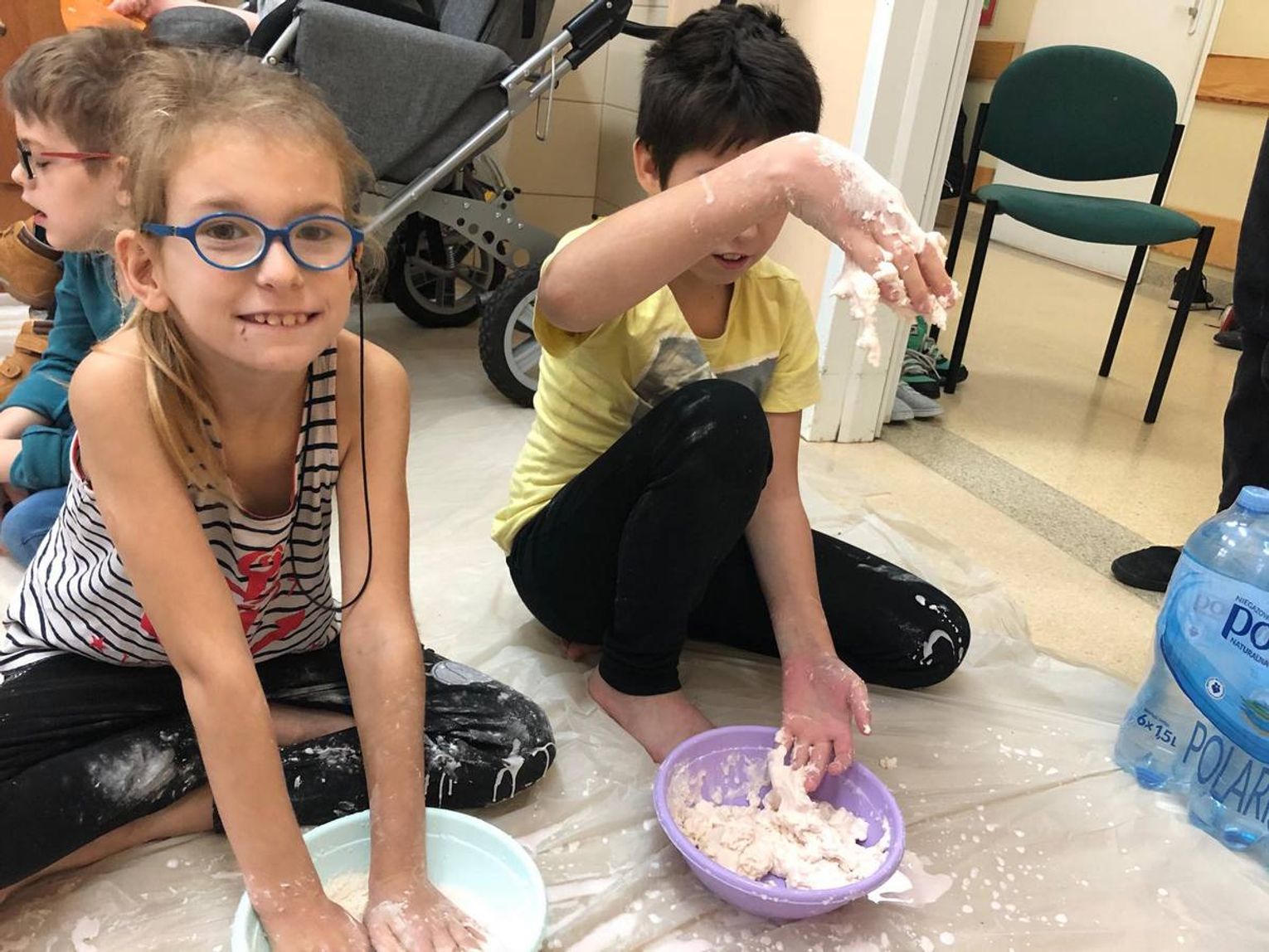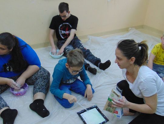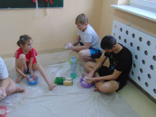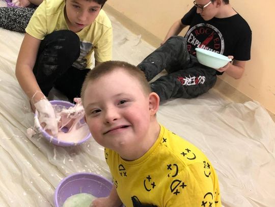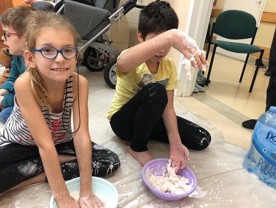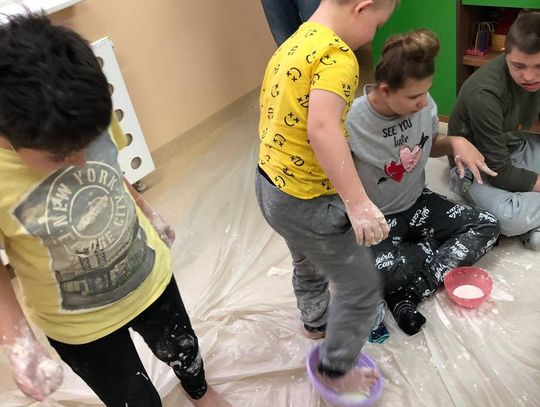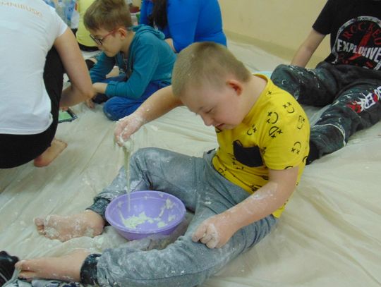 Jednocześnie odbyły się także zajęcia z sensoplastyki przygotowane przez Fundację ,,OMNIBUS” ze Szczecina, przeprowadzone przez Panią Martę Jarosińską. Uczniowie z dużym zaangażowaniem wzięli udział w dzisiejszych warsztatach a radości było przy tym co niemiara.