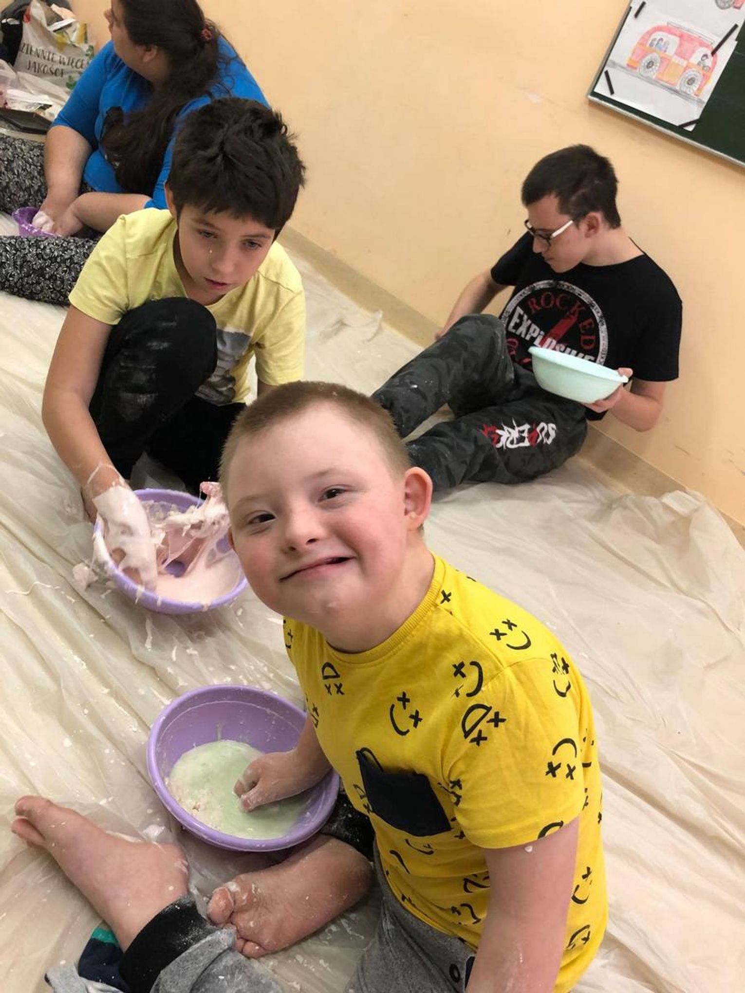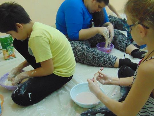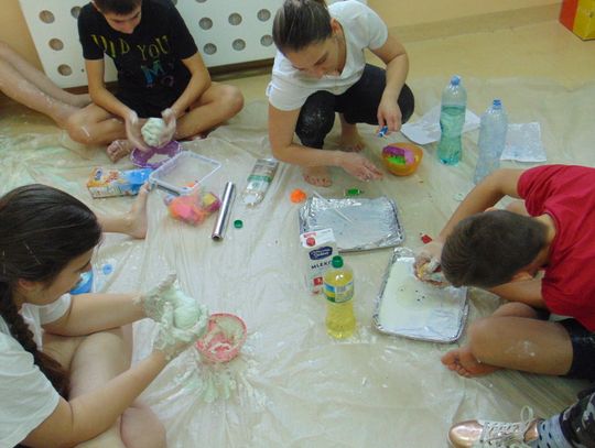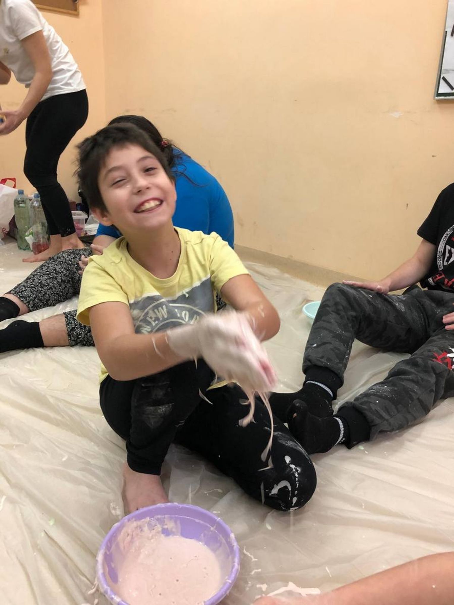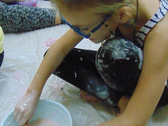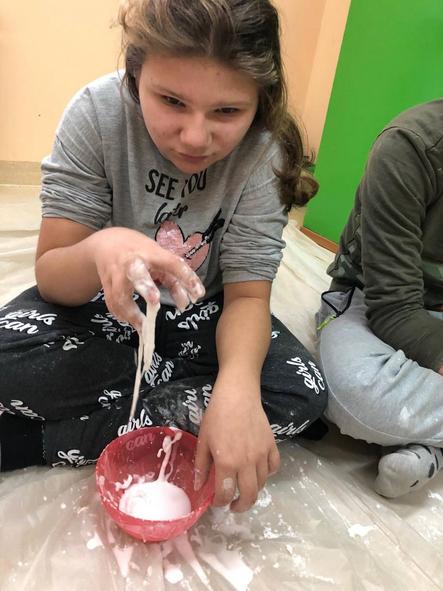 Jednocześnie odbyły się także zajęcia z sensoplastyki przygotowane przez Fundację ,,OMNIBUS” ze Szczecina, przeprowadzone przez Panią Martę Jarosińską. Uczniowie z dużym zaangażowaniem wzięli udział w dzisiejszych warsztatach a radości było przy tym co niemiara.