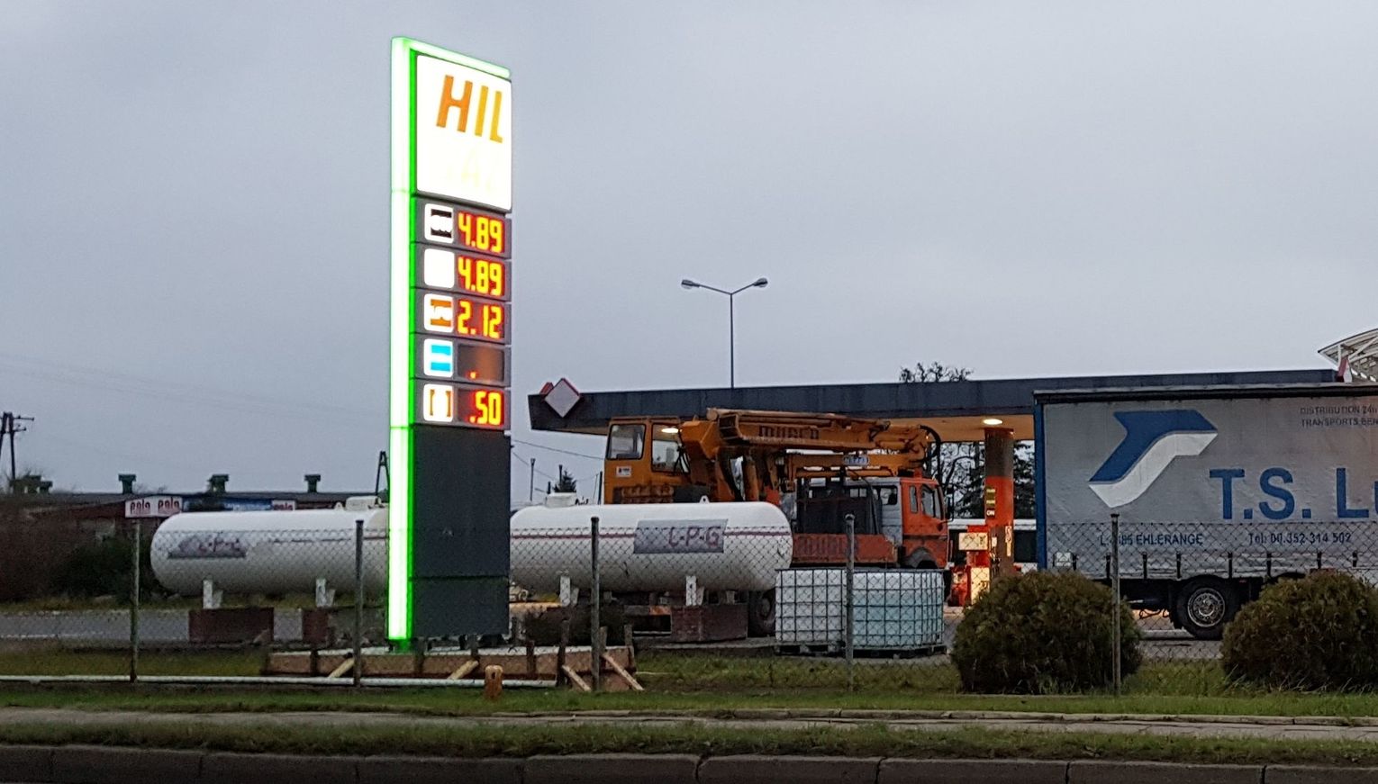 Ten nowy pylon widoczny na zdjęciu należy do stacji Hill-Gaz. Wreszcie, bo poprzedni niezbyt wyraźnie wyświetlał ofertę cenową paliw.
