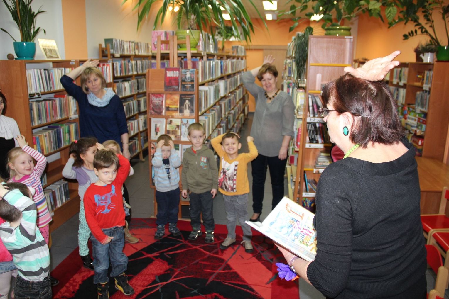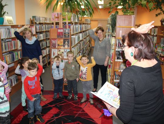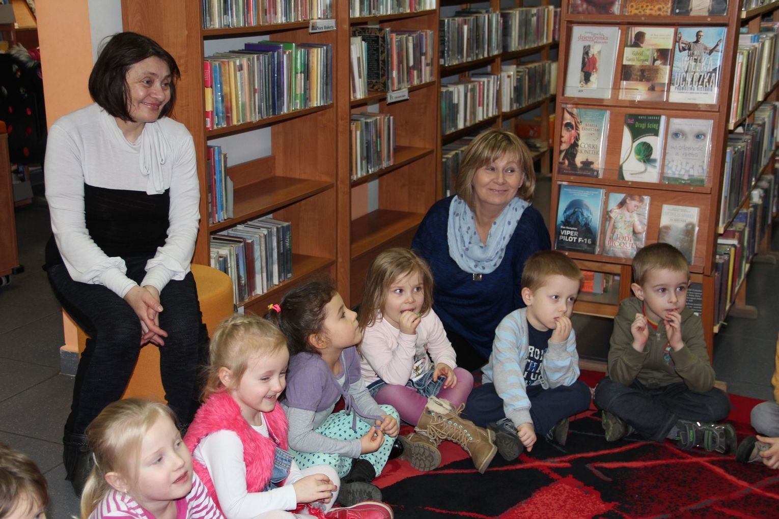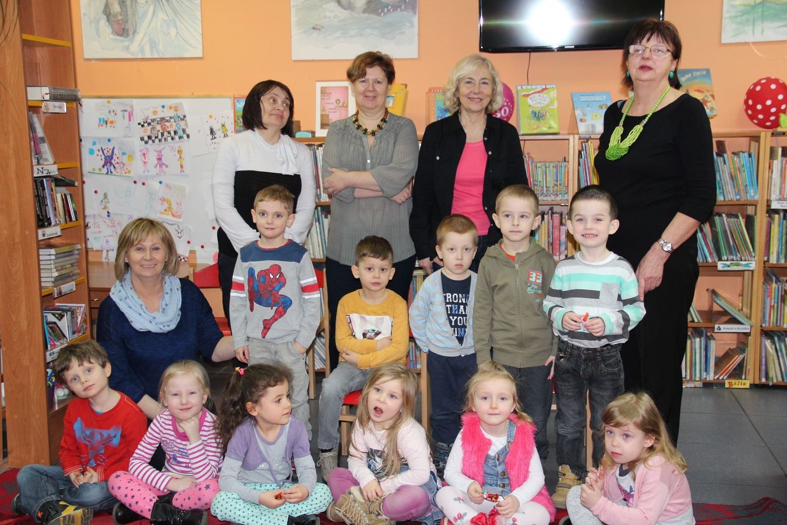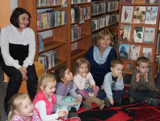 Dzieci przeżyły emocjonującą przygodę z aktorkami gryfińskiego teatru „Eliksir”. Przedszkolaki wysłuchały „głośnego czytania” bajki „O rybaku i złotej rybce”, ponieważ ważnym elementem spotkania było rozbudzenie zaciekawienia książką. Bajka ta skłania do namysłu nad tym, co słuszne a co nie, co dobre, a co złe. Aktorki – Wiesława Glińska i Józefa Łodykowska wykonały to pomysłowo i z ogromnym poczuciem humoru.