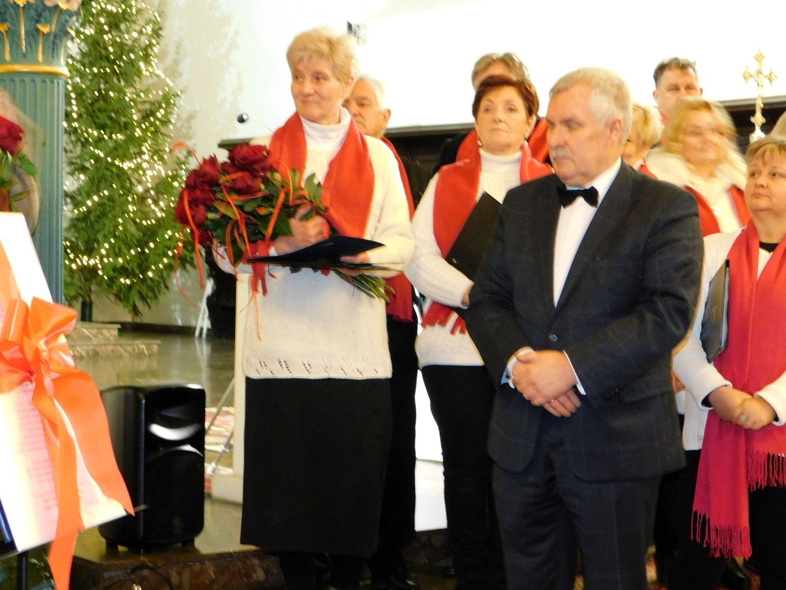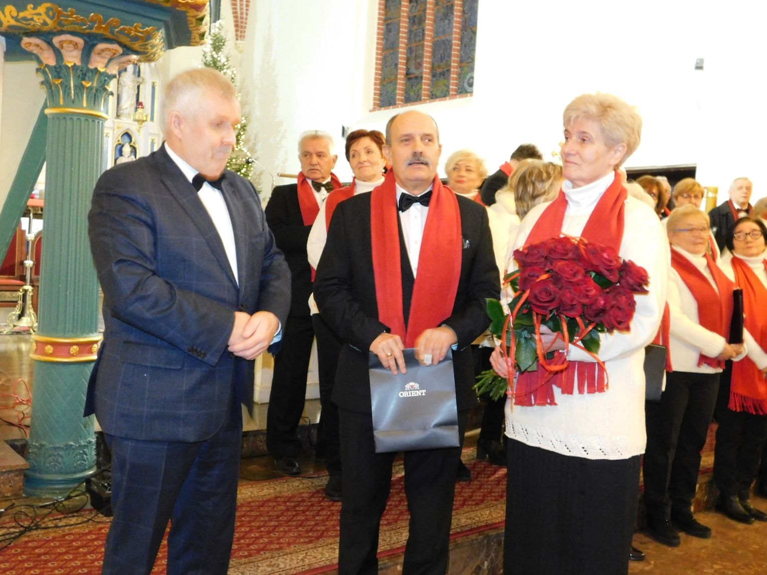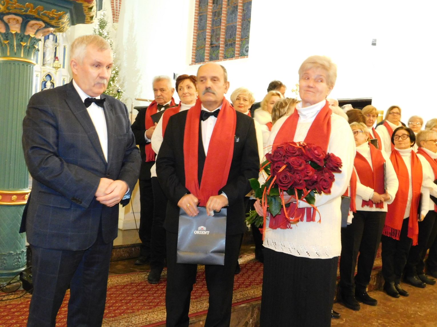 Urszula Mróz w imieniu chóru śpiewająco dziękowała ulubionemu dyrygentowi za te minione lata. Do podziękowań z bukietem czerwonych róż włączyły się władze miasta – radna Jolanta Witowska, przewodniczący Rady Miejskiej Rafał Guga i wiceburmistrz Paweł Nikitiński.