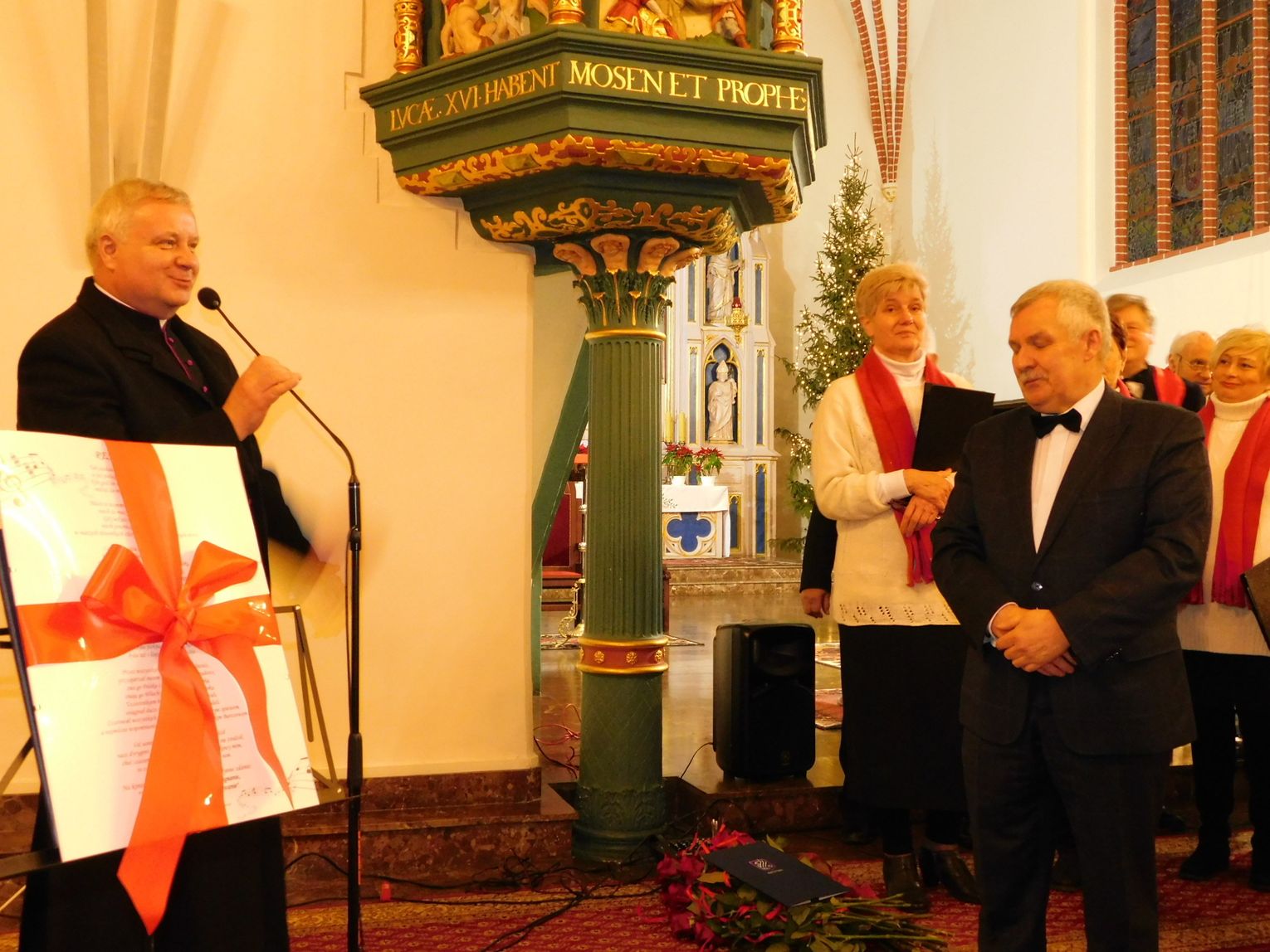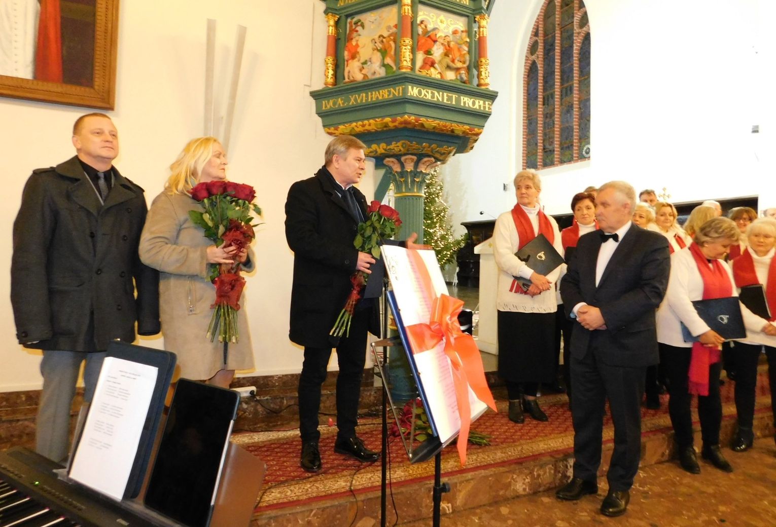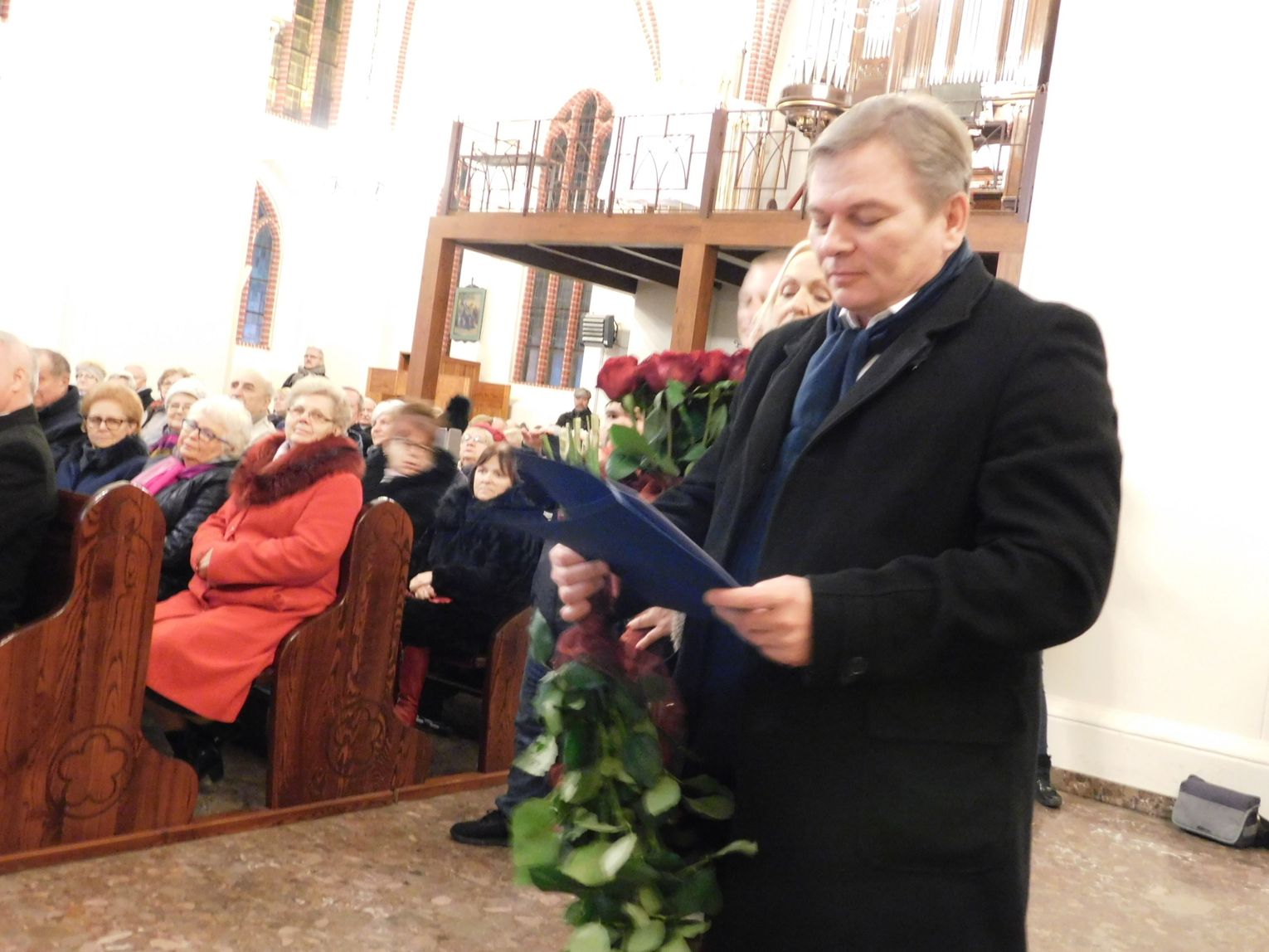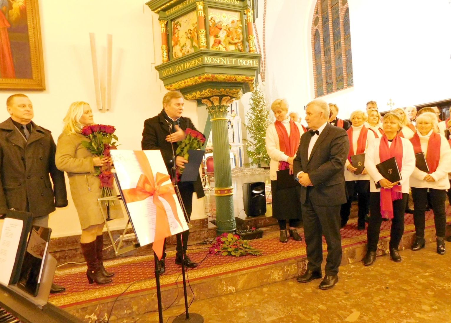 Urszula Mróz w imieniu chóru śpiewająco dziękowała ulubionemu dyrygentowi za te minione lata. Do podziękowań z bukietem czerwonych róż włączyły się władze miasta – radna Jolanta Witowska, przewodniczący Rady Miejskiej Rafał Guga i wiceburmistrz Paweł Nikitiński.