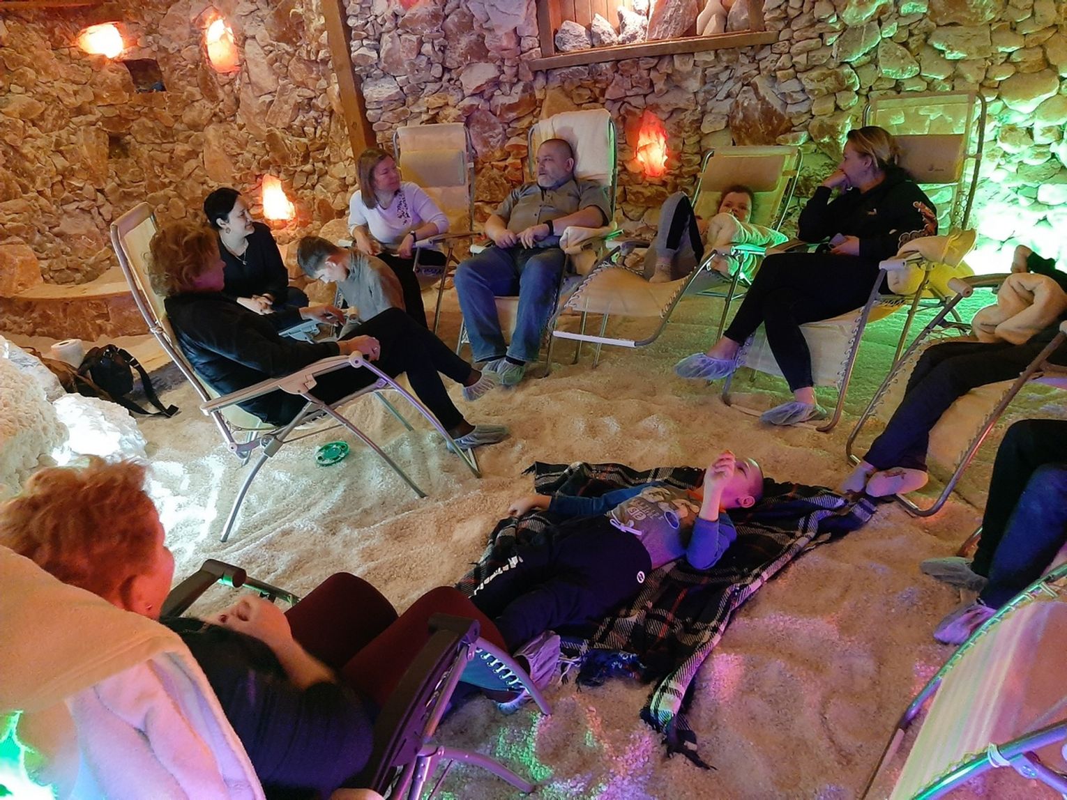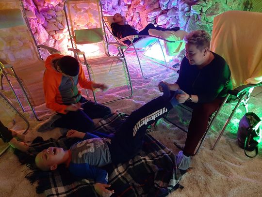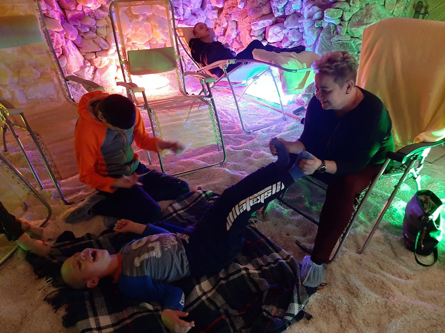 Dzisiejszego popołudnia tj. 4 marca 2020 r. grupa uczestników zajęć rewalidacyjno- wychowawczych Zespołu Szkół w Nowym Czarnowie kolejny raz odwiedziła Komnatę Solną klimatyczno- inhalacyjną „Solbella” w Gryfinie.
