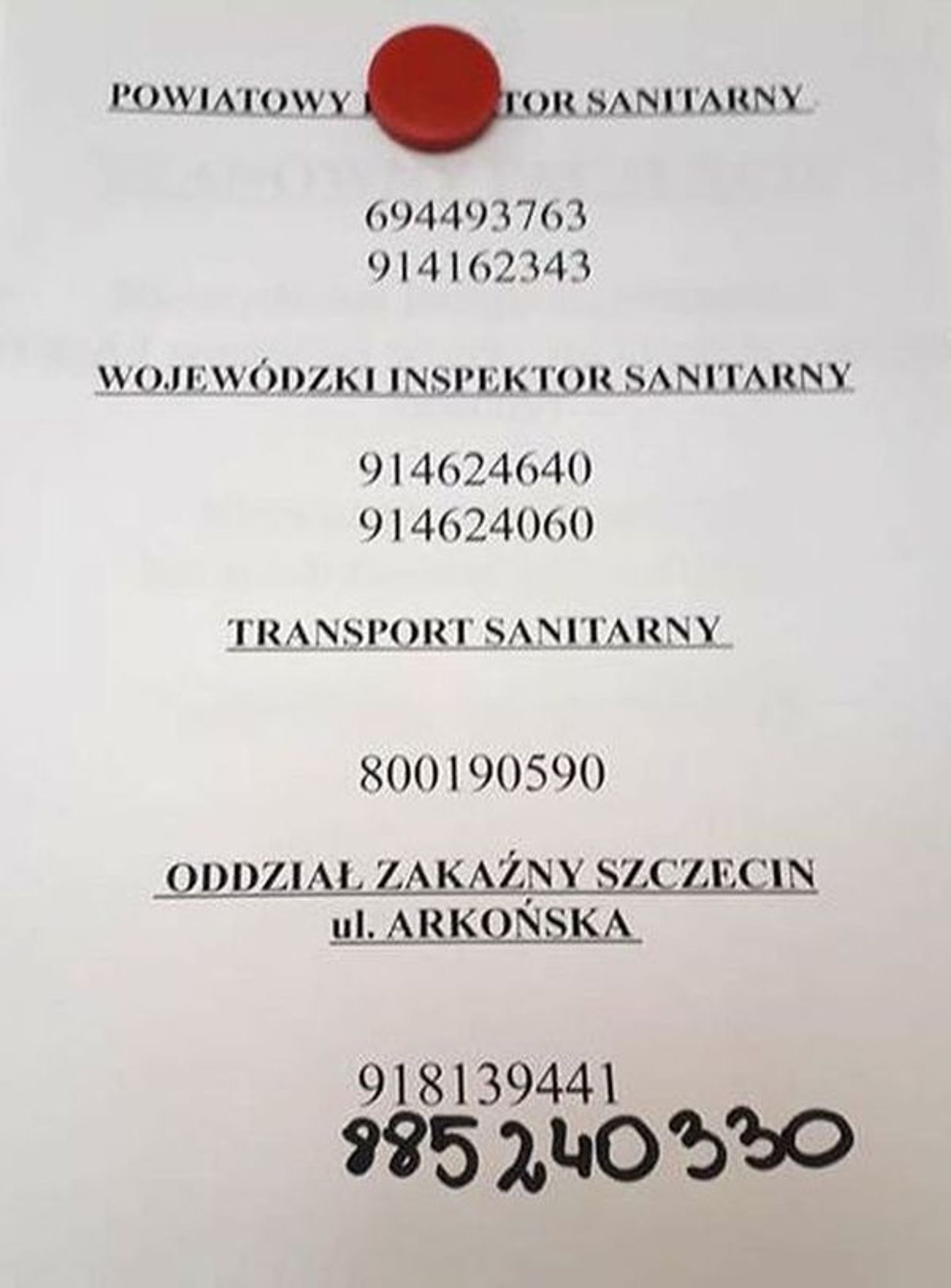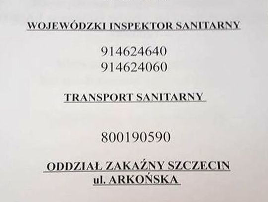 Apelujemy: jeśli ktoś zaobserwował u siebie objawy, takie jak: gorączka, kaszel, duszność i problemy z oddychaniem to powinien bezzwłocznie, telefonicznie powiadomić stację sanitarno-epidemiologiczną lub zgłosić się bezpośrednio do oddziału zakaźnego lub oddziału obserwacyjno-zakaźnego, gdzie określony zostanie dalszy tryb postępowania medycznego.