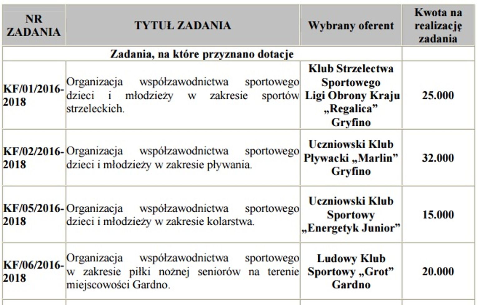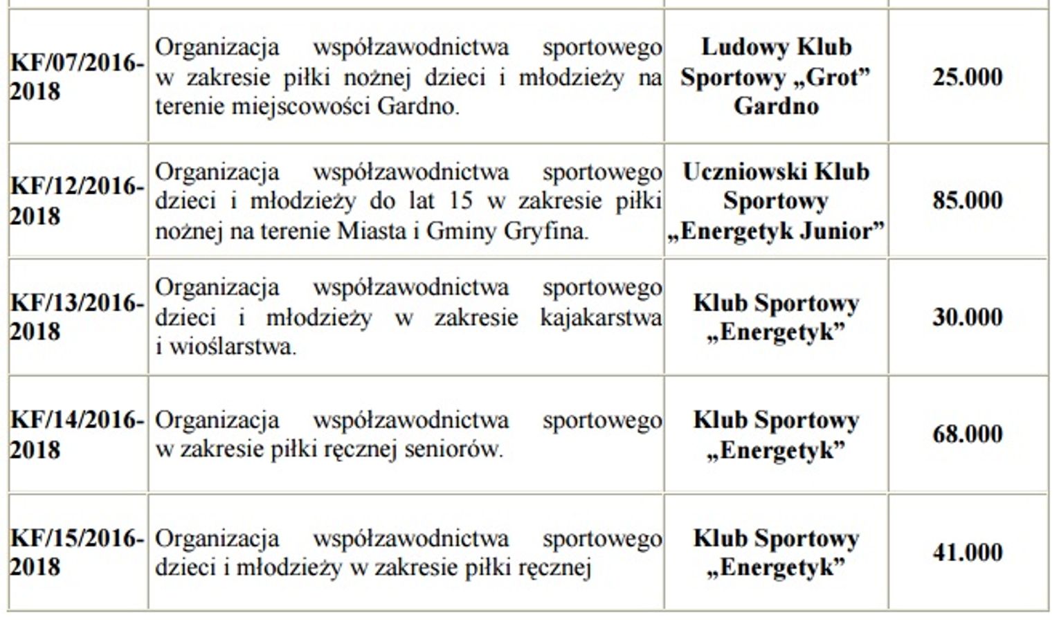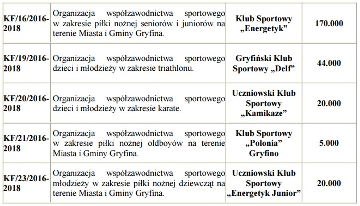 W uzasadnieniu zarządzenia z 11 lutego 2016 r. czytamy: Niniejsze zarządzenie rozstrzyga w części ogłoszony konkurs ofert na realizację zadań publicznych w drodze zlecenia, w zakresie kultury fizycznej, ogłoszony Zarządzeniem Burmistrza Miasta i Gminy Gryfino Nr 0050.173.2015 z dnia 31 grudnia 2015 roku.