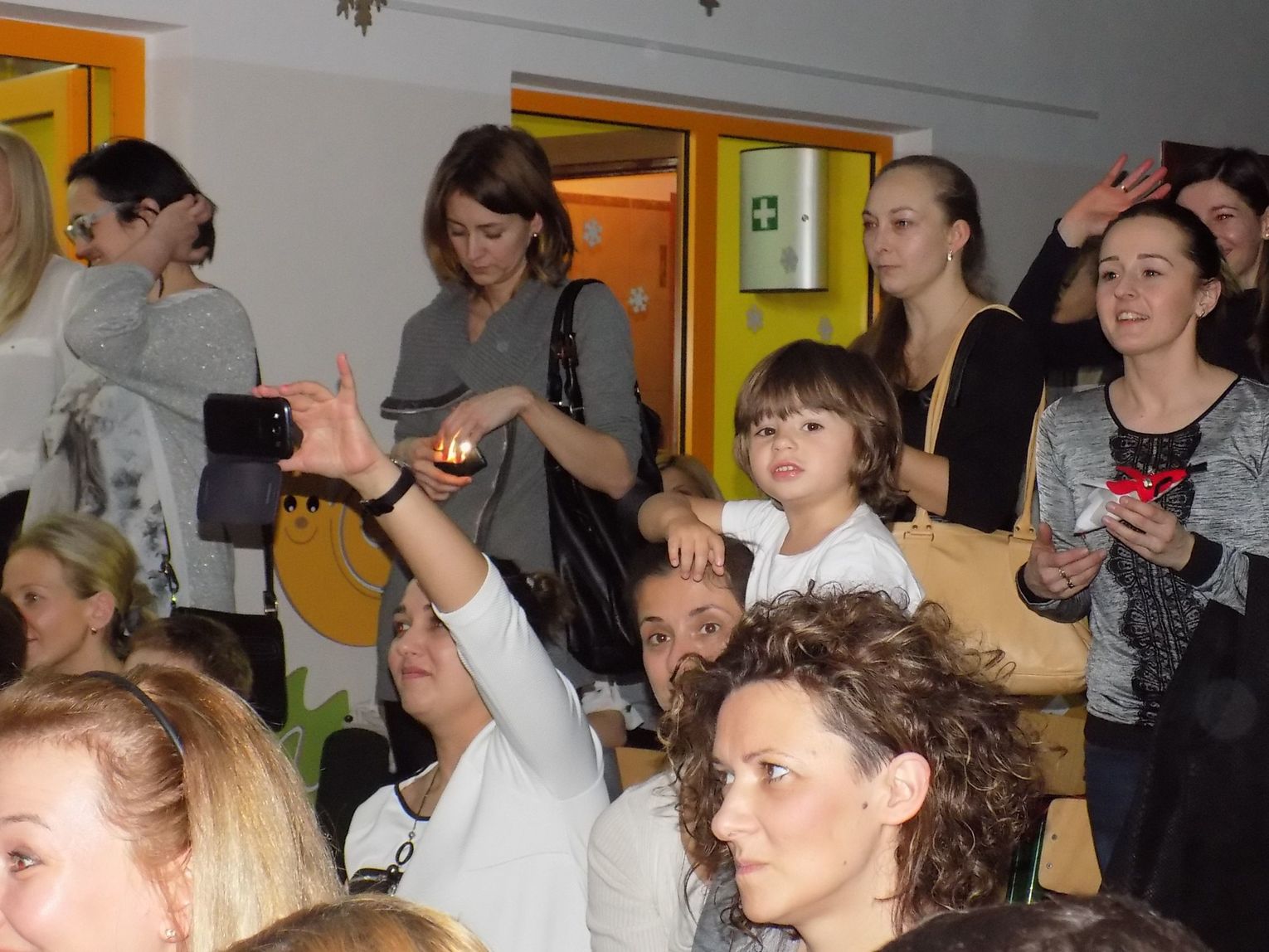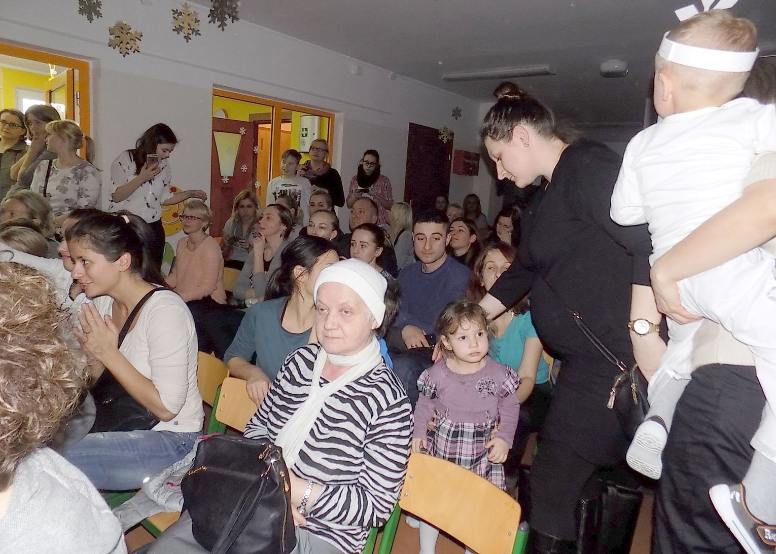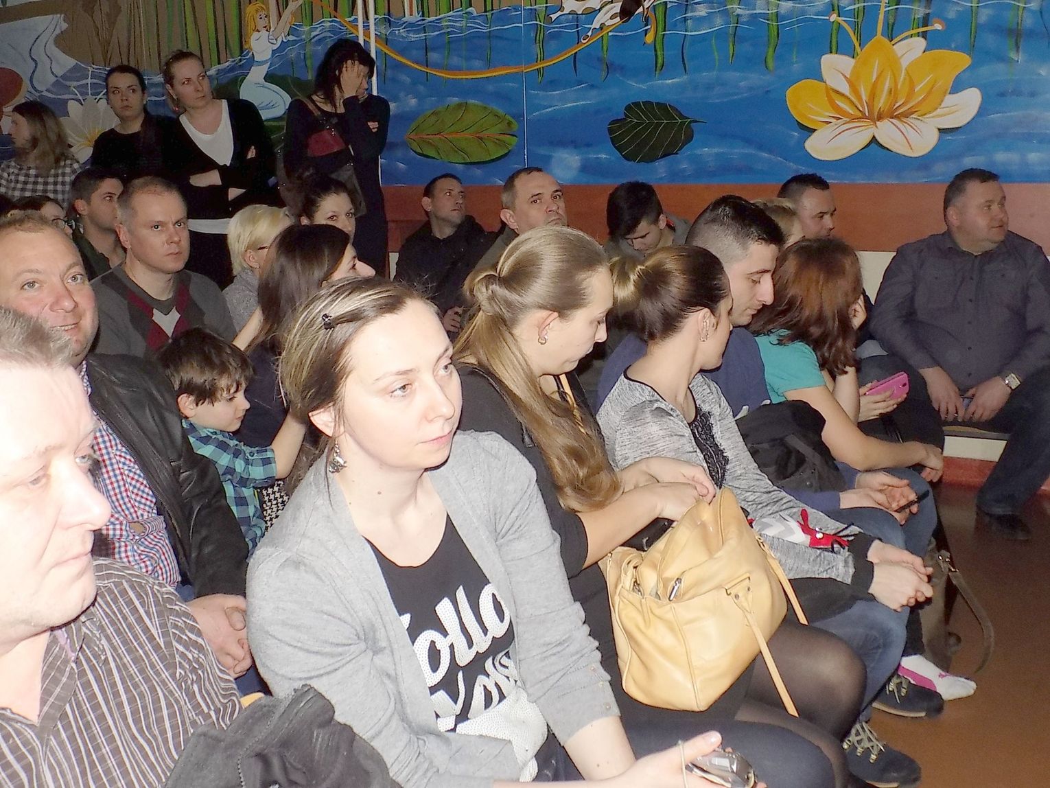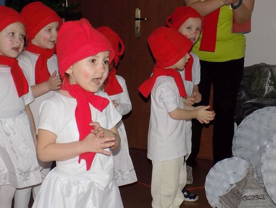 Przedszkolna sala „widowiskowa” w środę, 24 lutego wypełniła się aż po same brzegi zachwyconymi rodzicami i zaproszonymi gośćmi. Gromkimi oklaskami witani byli artyści : „Misiaczki”, „Żabki”, „Motylki”, „Biedronki” i „Krasnale”. Z szeroko otwieranych buź aż pod samo niebo płynęły piosenki, jak prośby o zdrowie dla Piotrusia.
