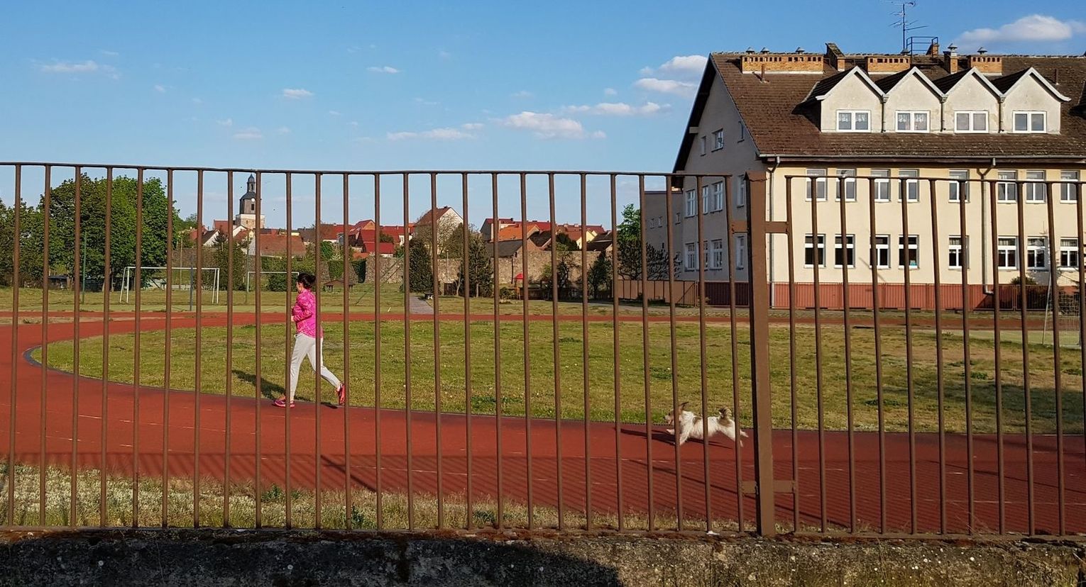 Wokół zieleni dużo, więc ludzie bez tłoku korzystają ze świeżego powietrza, przesiąkniętego o tej porze zapachem kwitnącego rzepaku.
