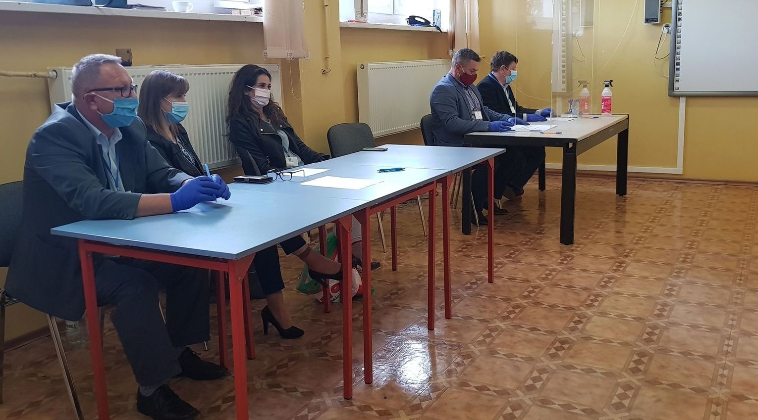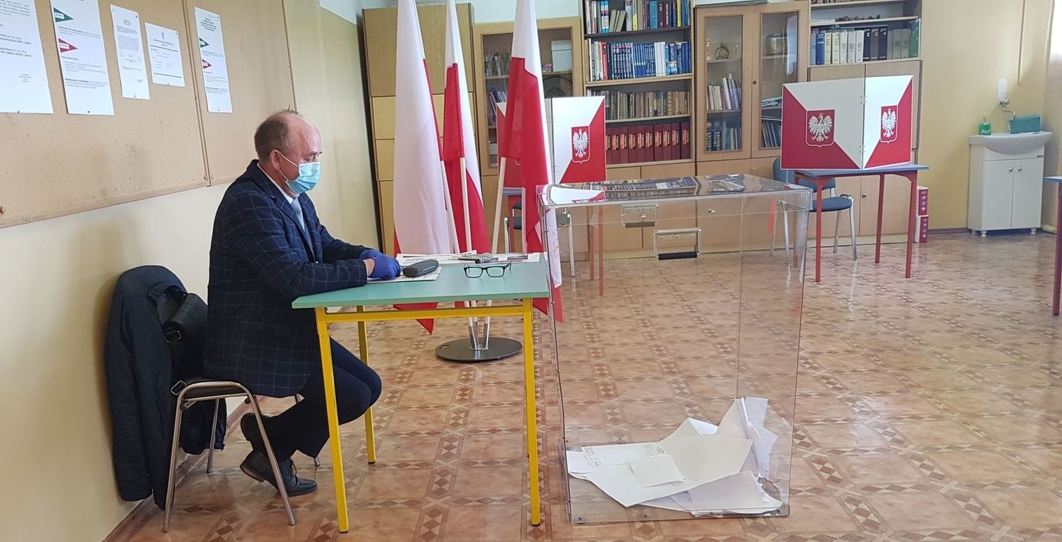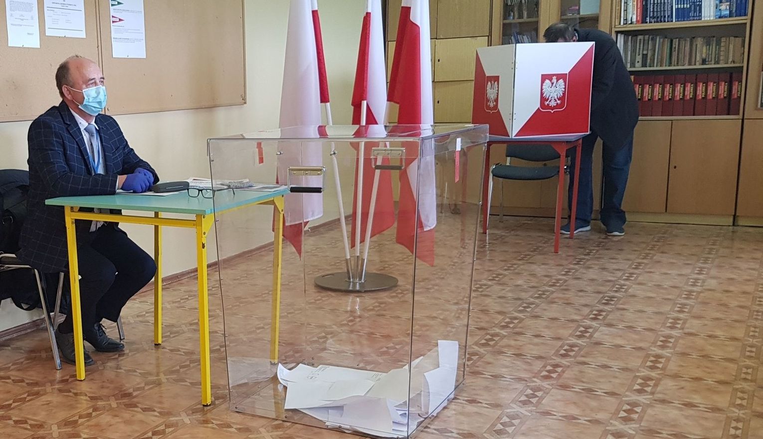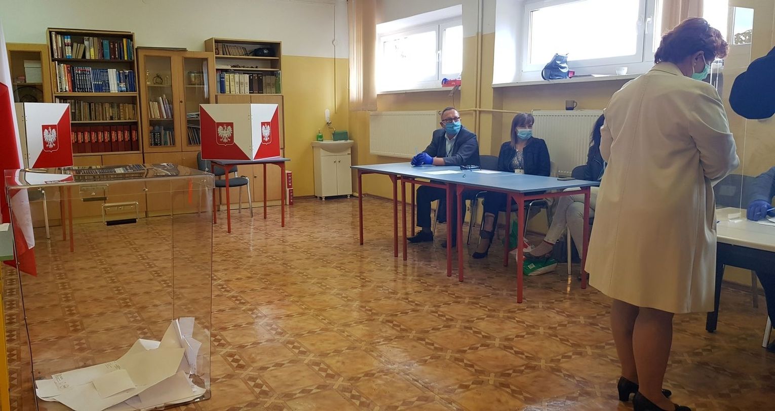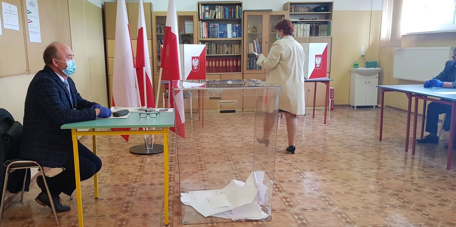 Przed pobraniem karty do głosowania, trzeba się odpowiednio przygotować - mieć maseczkę na twarzy, zdezynfekować ręce płynem przygotowanym w lokalu wyborczym, założyć jednorazowe rękawiczki, które następnie także należy zdezynfekować. Wyborców od komisji oddziela przezroczysty ekran z pleksi. W tym miejscu okazywany jest dowód osobisty głosującego.