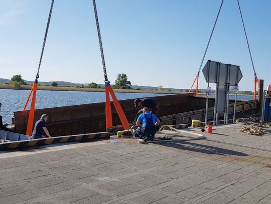 Barka została pocięta na kilka części. Właśnie pierwsza część wyciągana jest z wody. Potem zostanie umieszczona na specjalnie przygotowanej platformie.