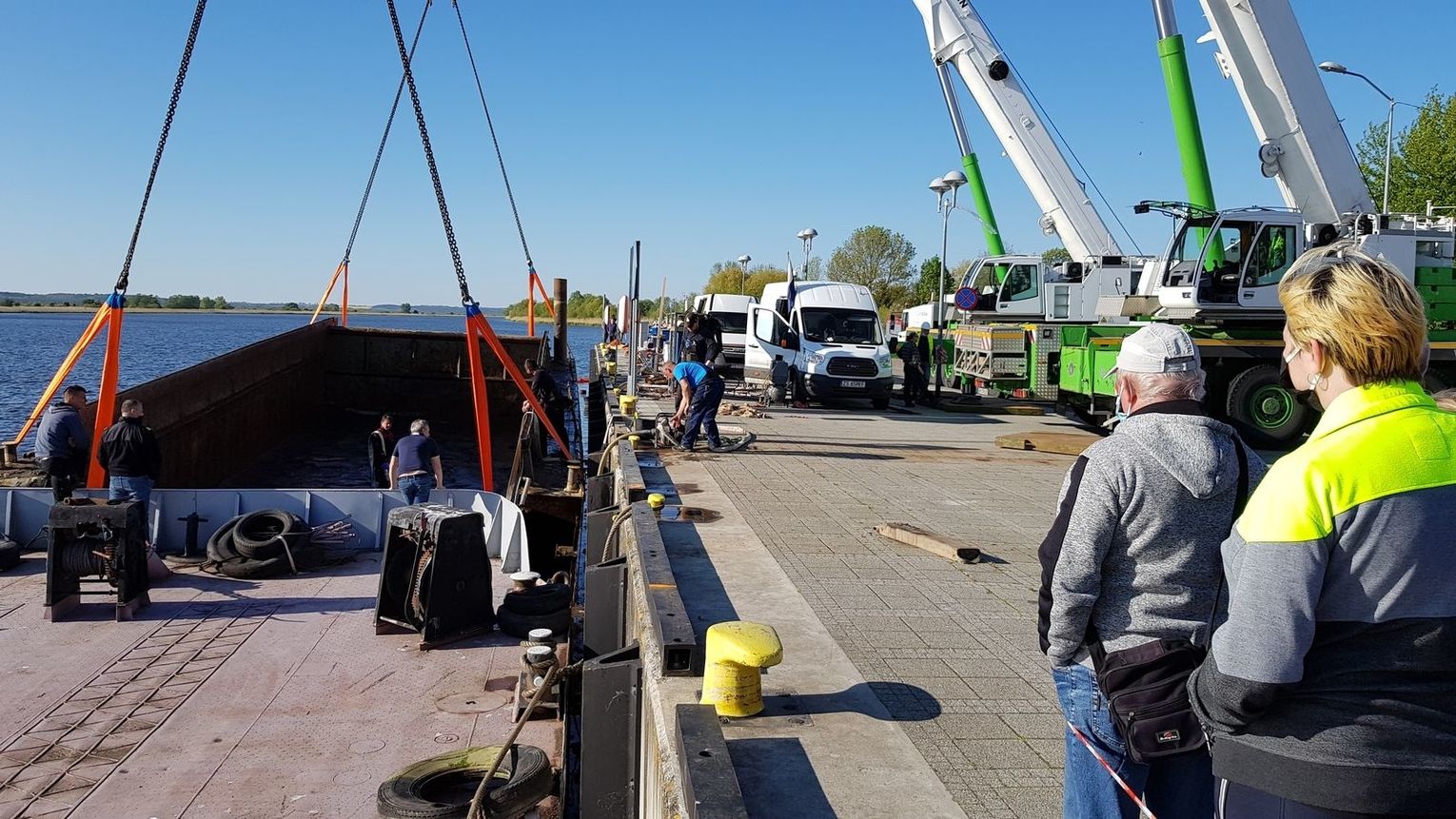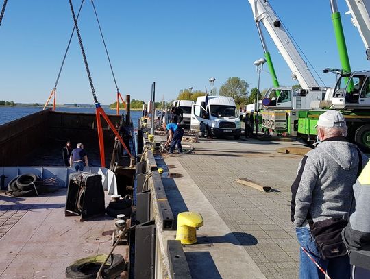 Na nabrzeże przychodzi coraz więcej mieszkańców zobaczyć, jak po 4 miesiącach tzw. gryfiński Titanic wydobywany jest na powierzchnię.