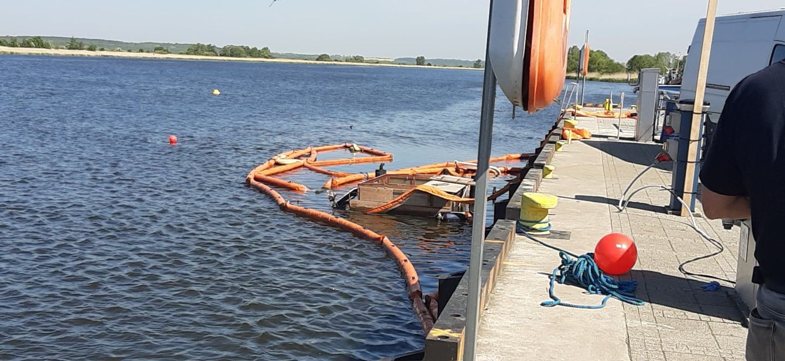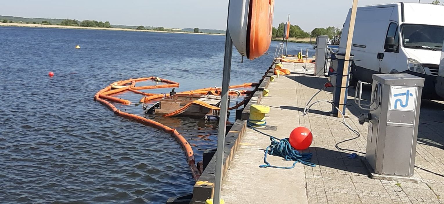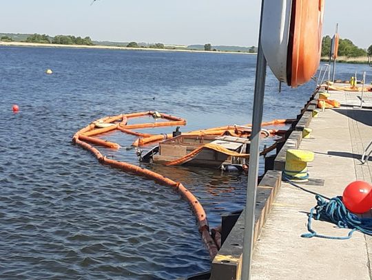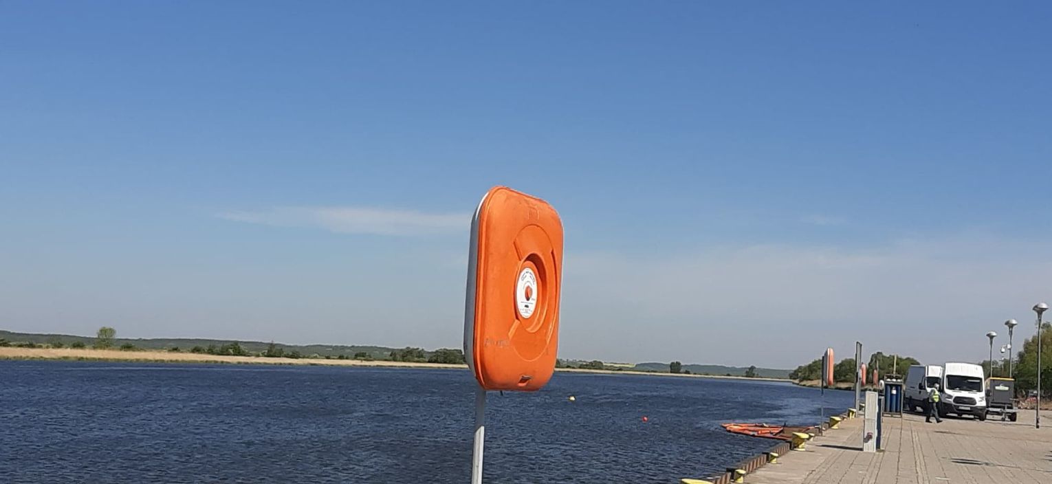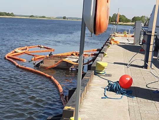 Trzeba bardzo uważać przy nabrzeżu, oglądając resztki niewydobytej jeszcze barki. Wychylenie się poza krawędzie z gumy (widoczne na zdjęciu) powoduje, że przenosi się środek ciężkości i łatwo wpaść do rzeki. Tak podobno było w ostatni poniedziałek. Wtedy utopił się tam człowiek.