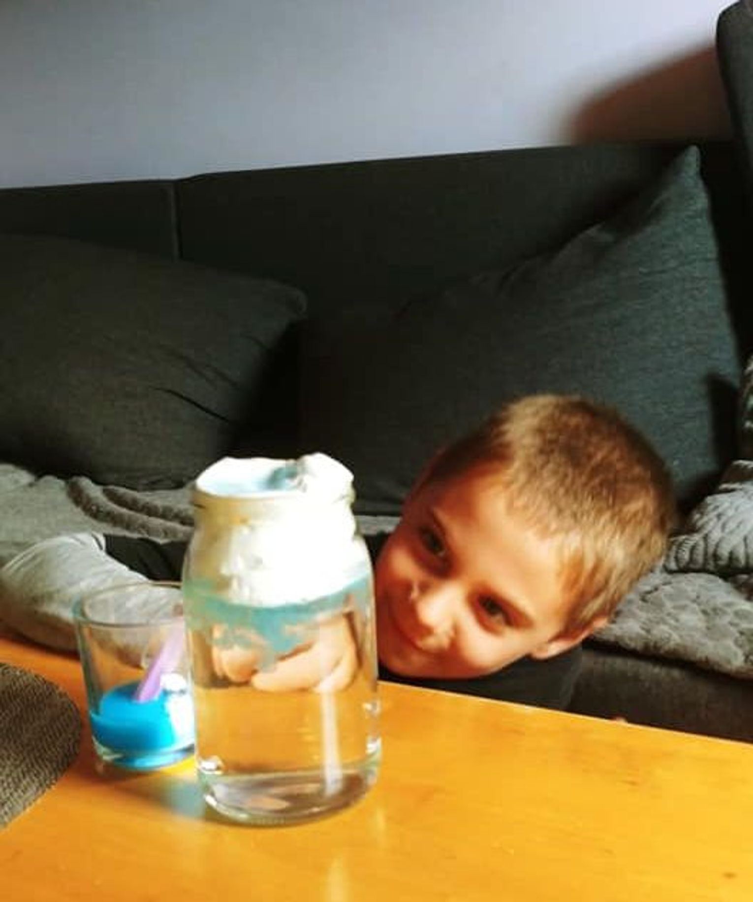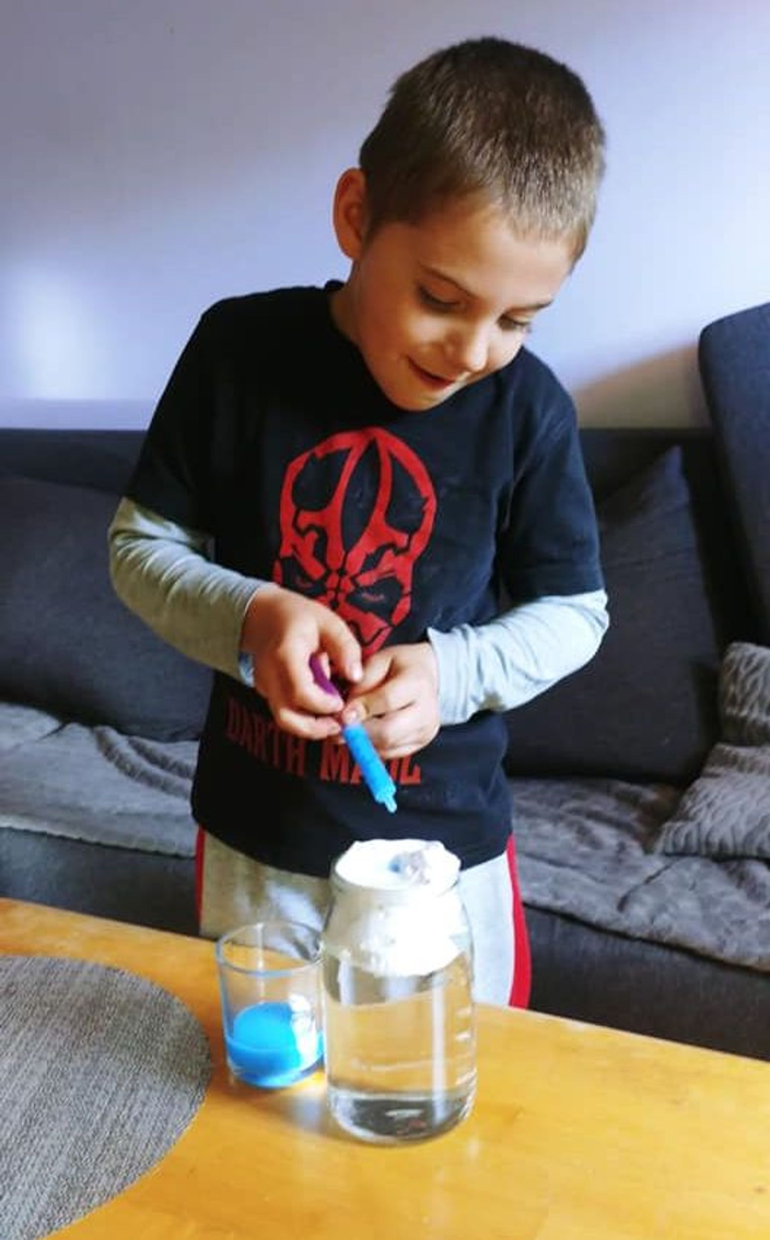 Ponadto bawiliśmy się w domowym laboratorium, tworząc deszcz w słoiku, piankolinę.