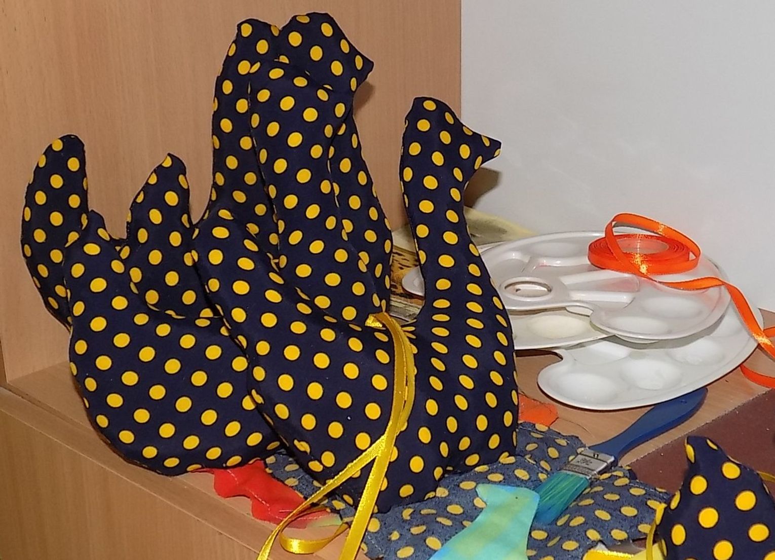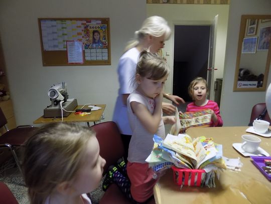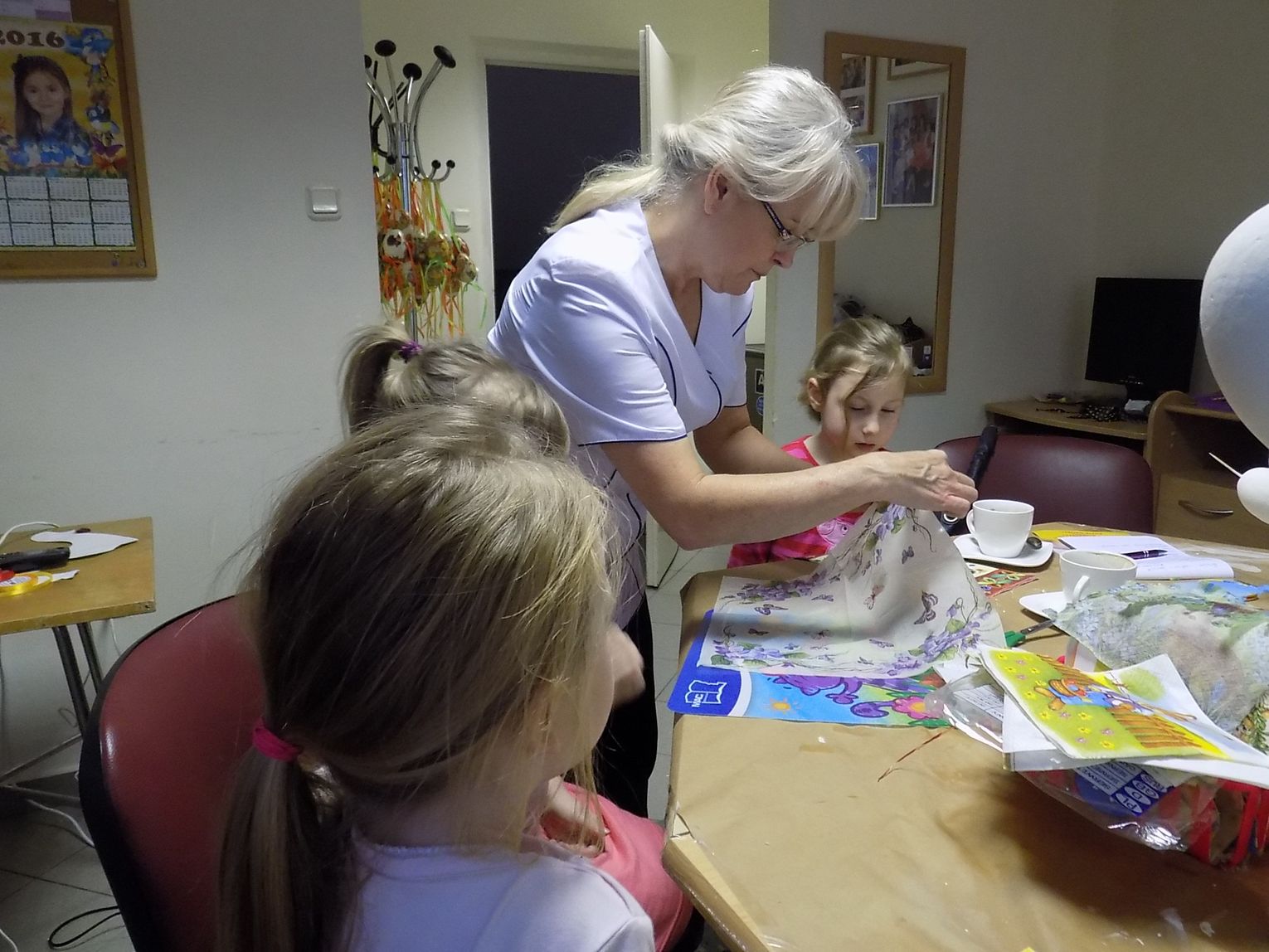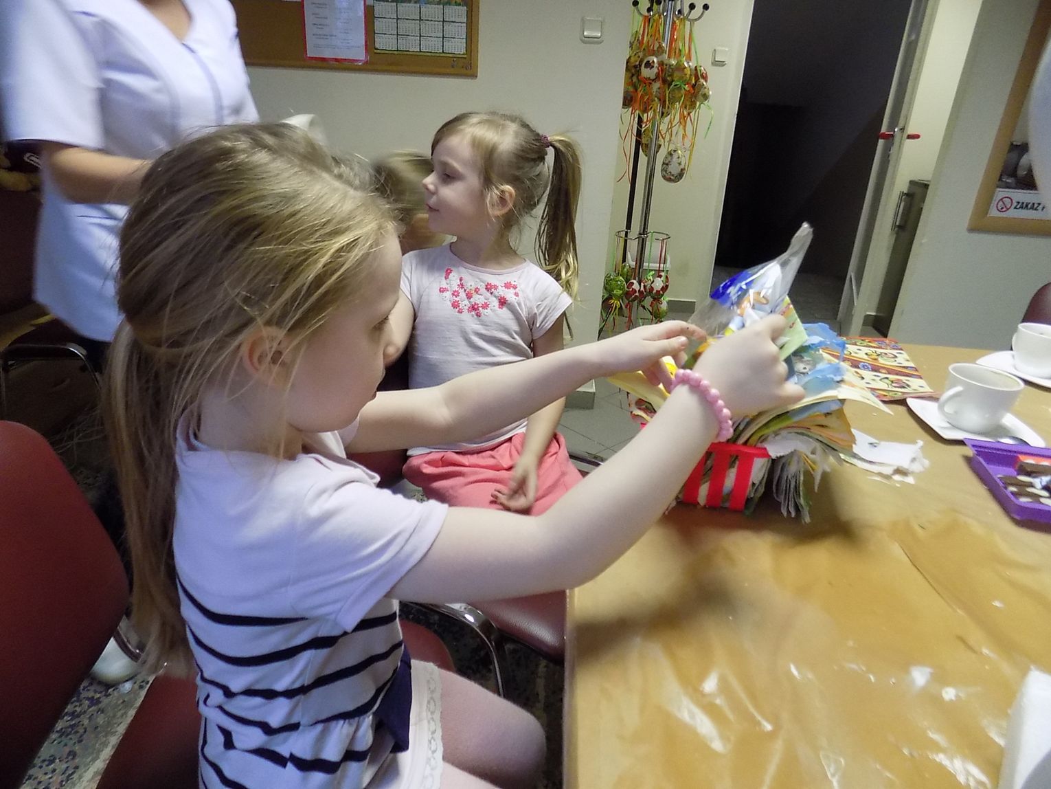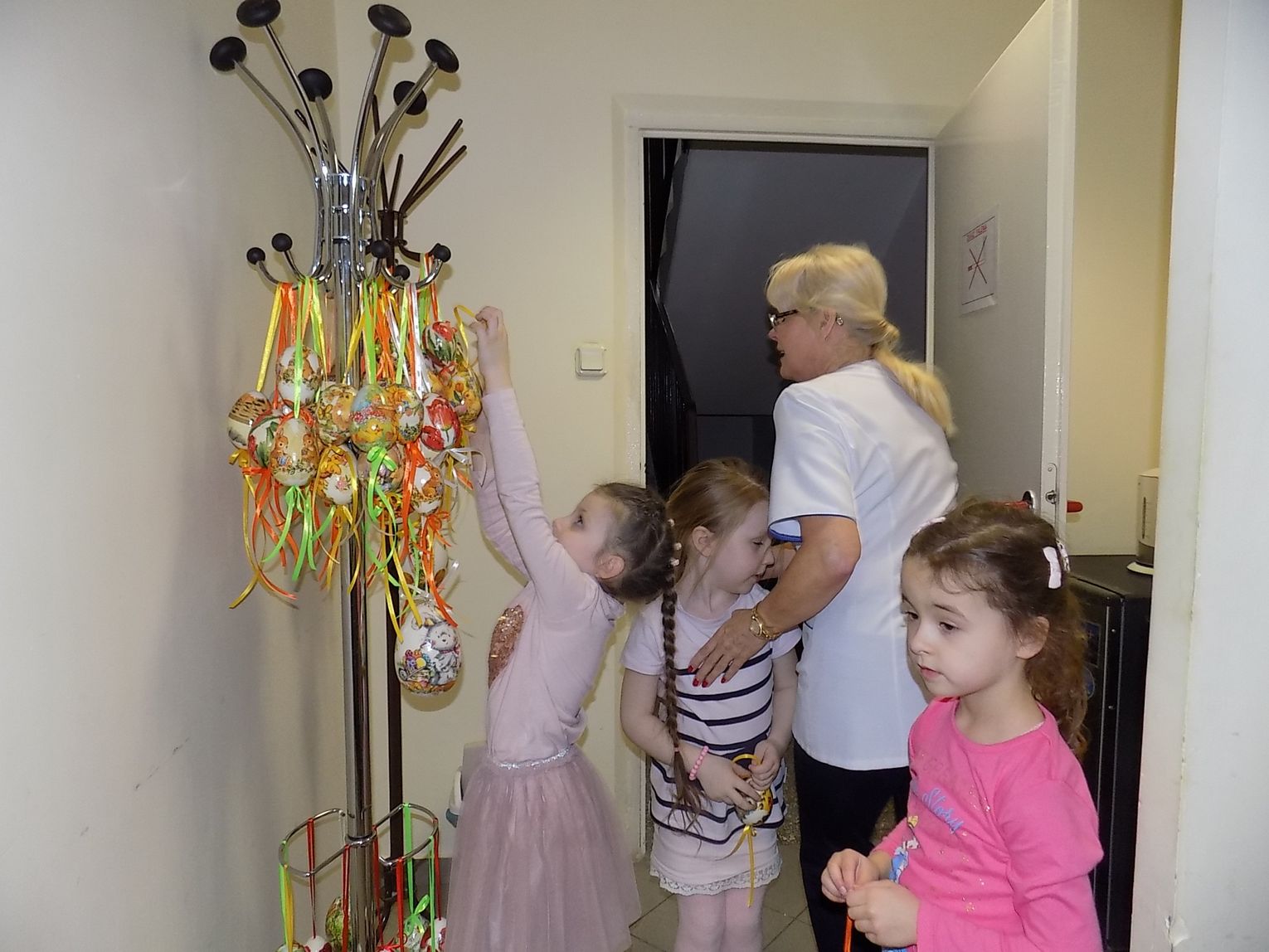 W jednej z sal poczuć się można jak w prawdziwym zakładzie produkcyjnym. Przy maszynie pani Basia szyje ubranka dla kur. Pani Teresa Staszak - oprócz czuwania nad dobrym samopoczuciem maluchów - razem z dziećmi wybiera i rozdziela kolorowe serwetki, którymi następnie oklejane są duże jajka, zamieniane w śliczne kolorowe pisanki.