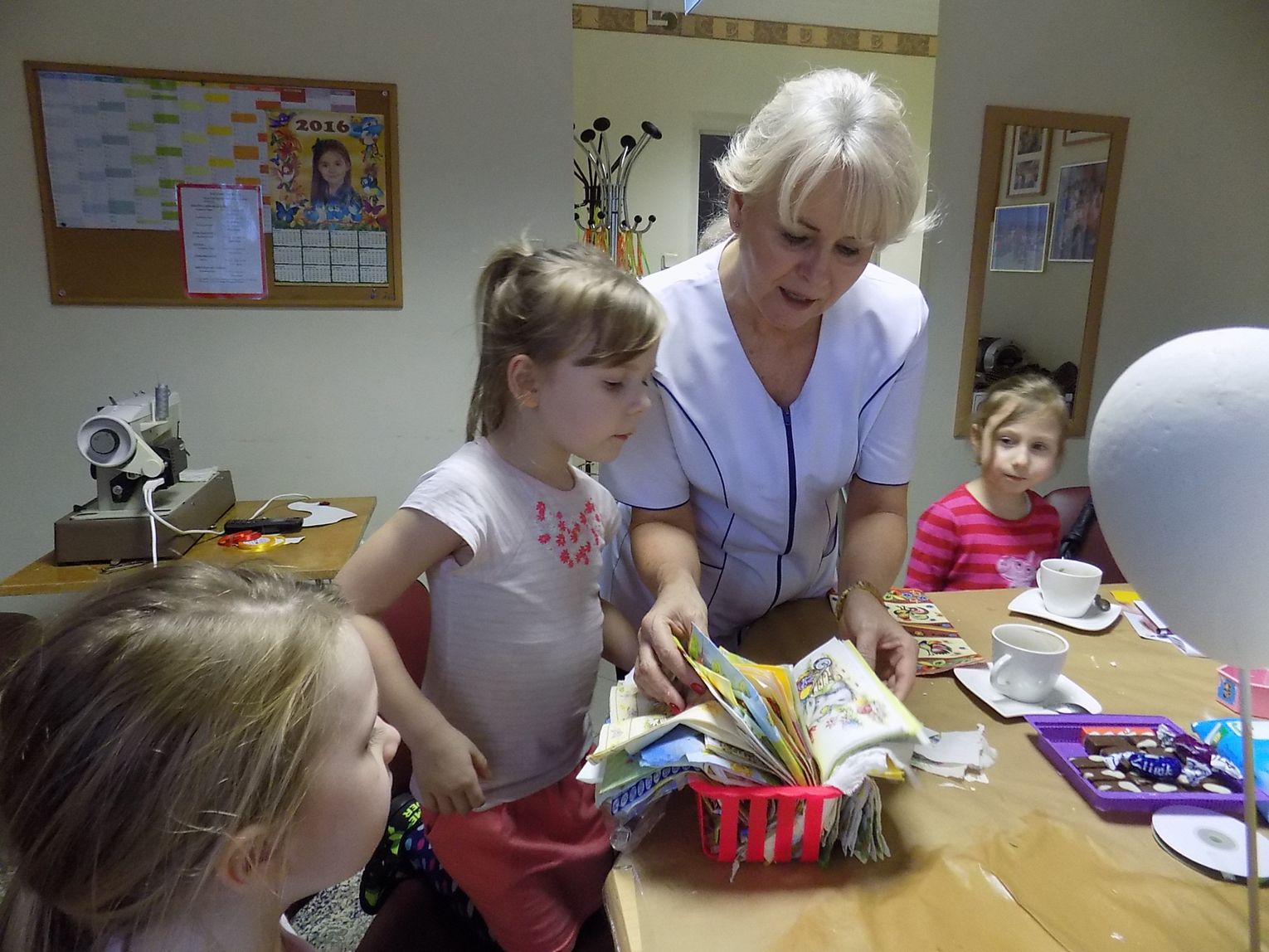 Przedszkolaki z przejęciem wykonują powierzone im zadania. Praca wre. Jest wesoło i wszyscy się cieszą, że zarobione w ten sposób pieniążki powędrują na koto chorego Piotrusia Wróbla. Akcja „Piotruś” trwa na całego.